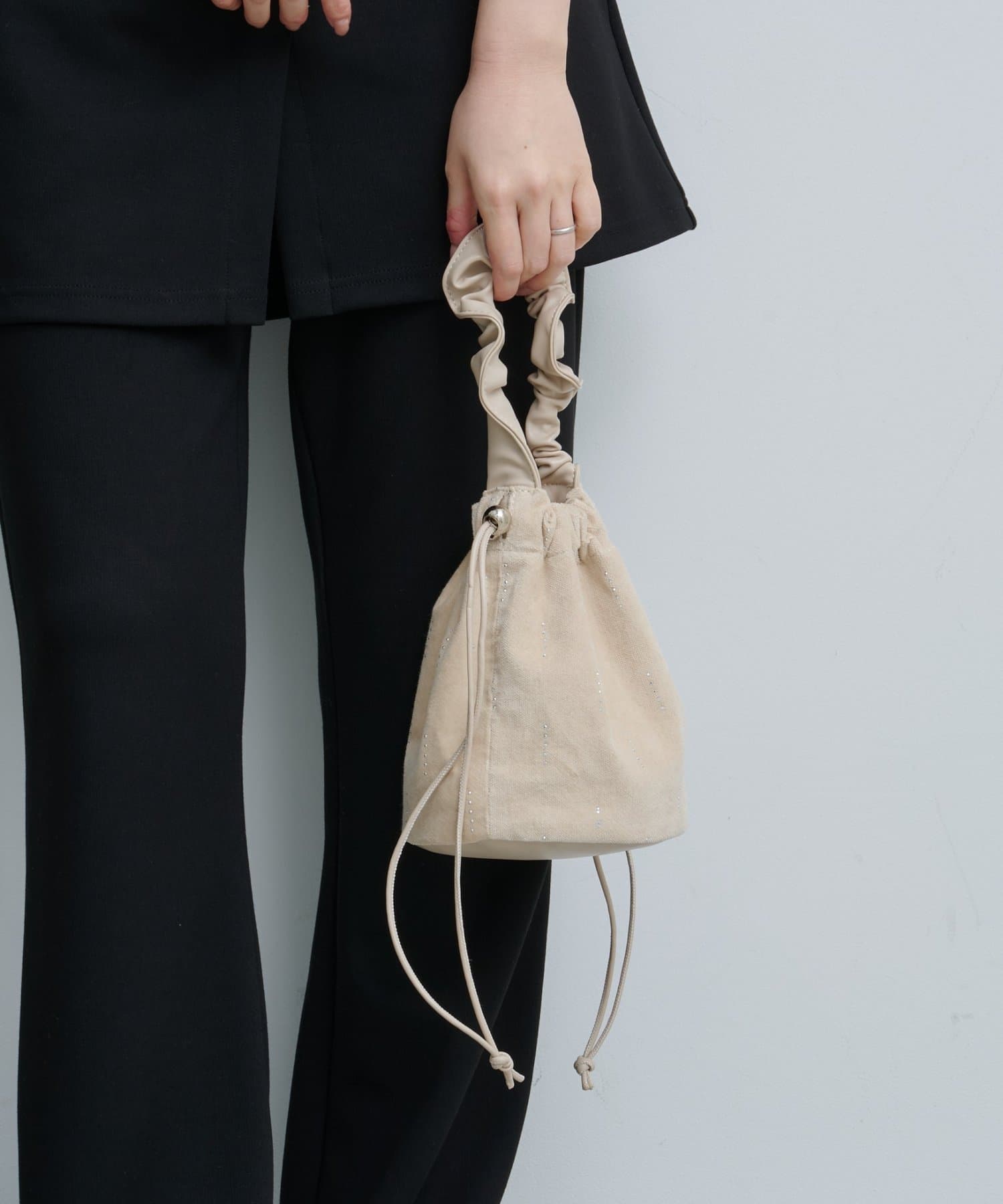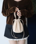 巾着ならではのカジュアルな雰囲気に、ドット状のさりげないカットデザインがアクセントをプラス。