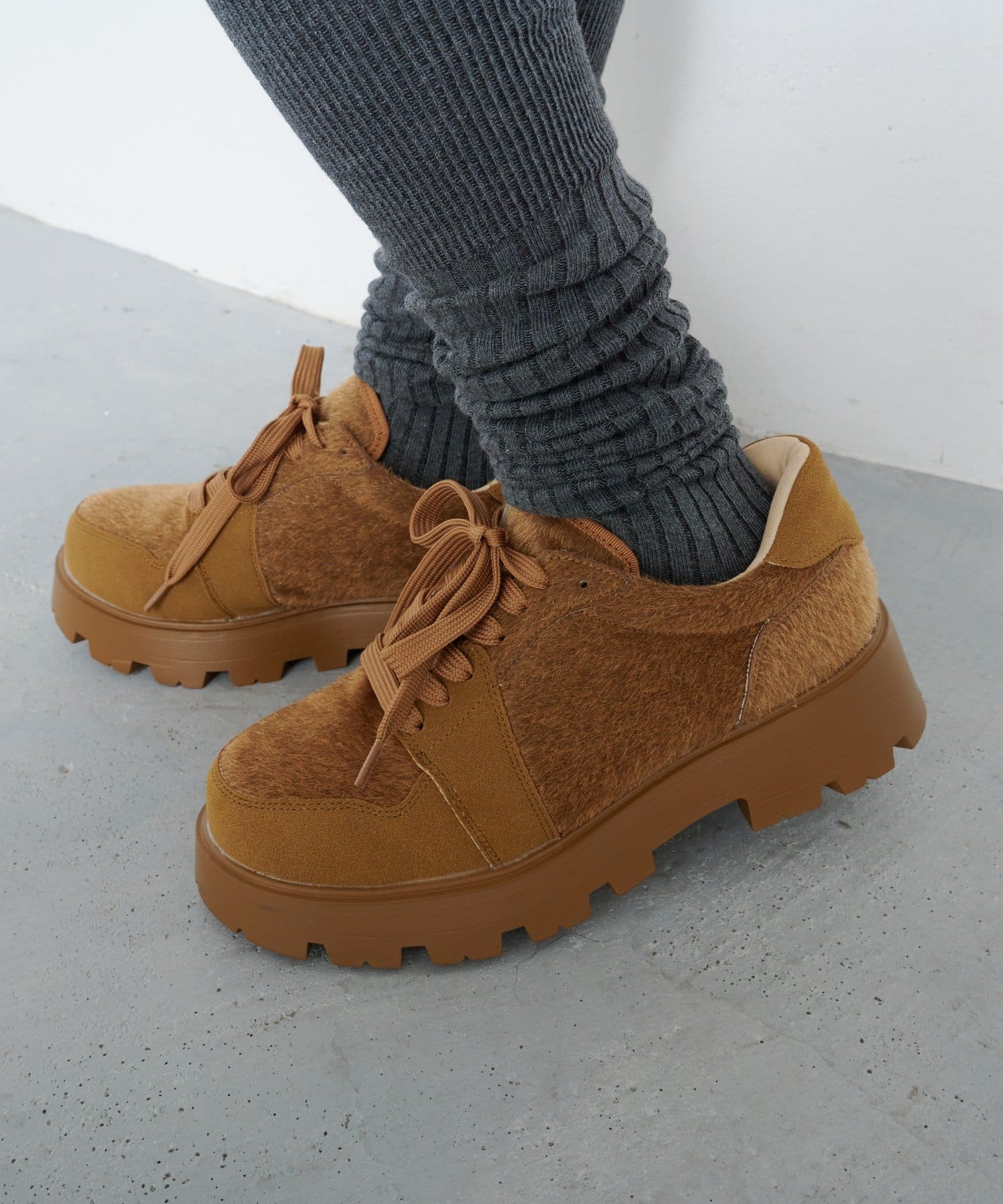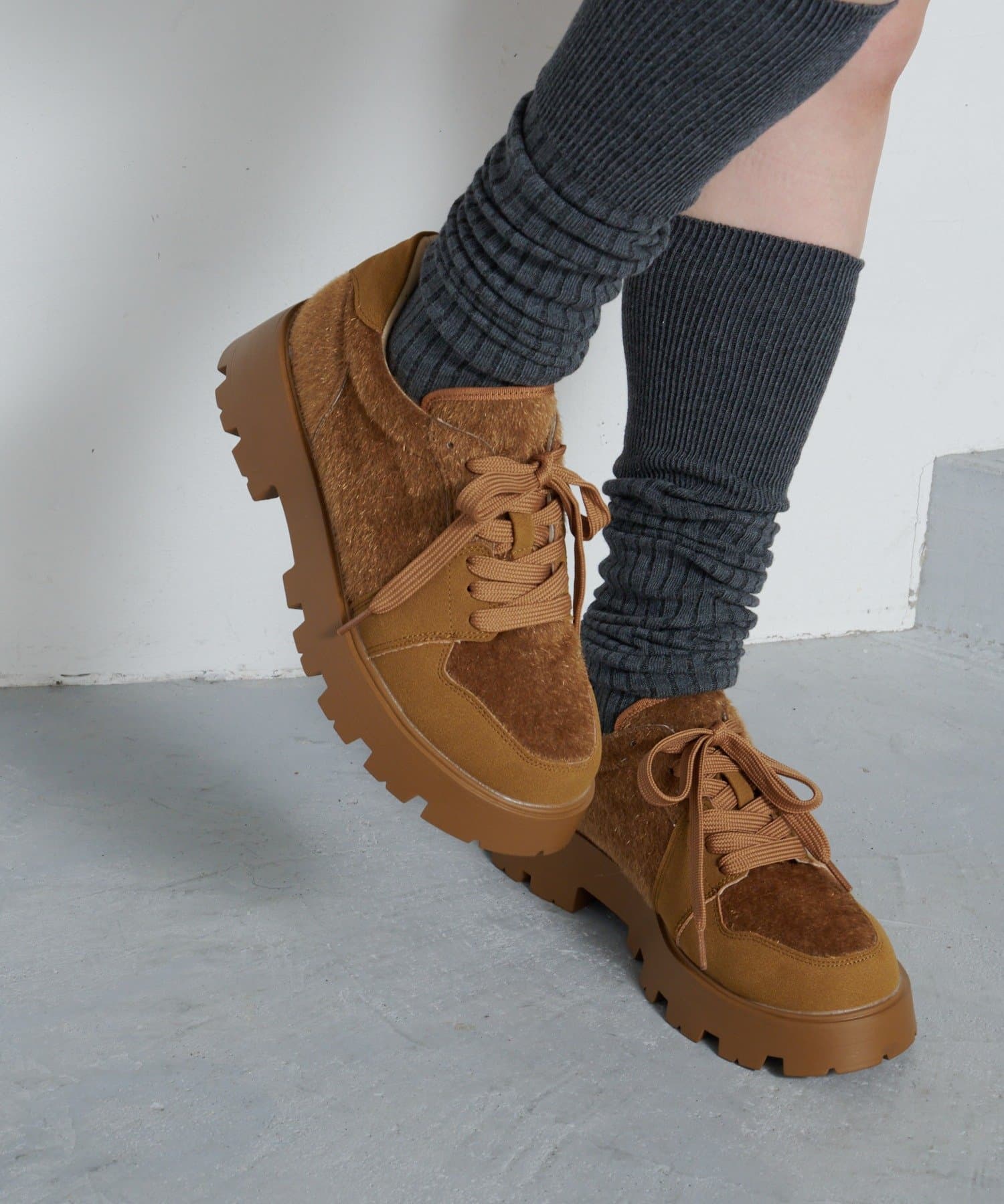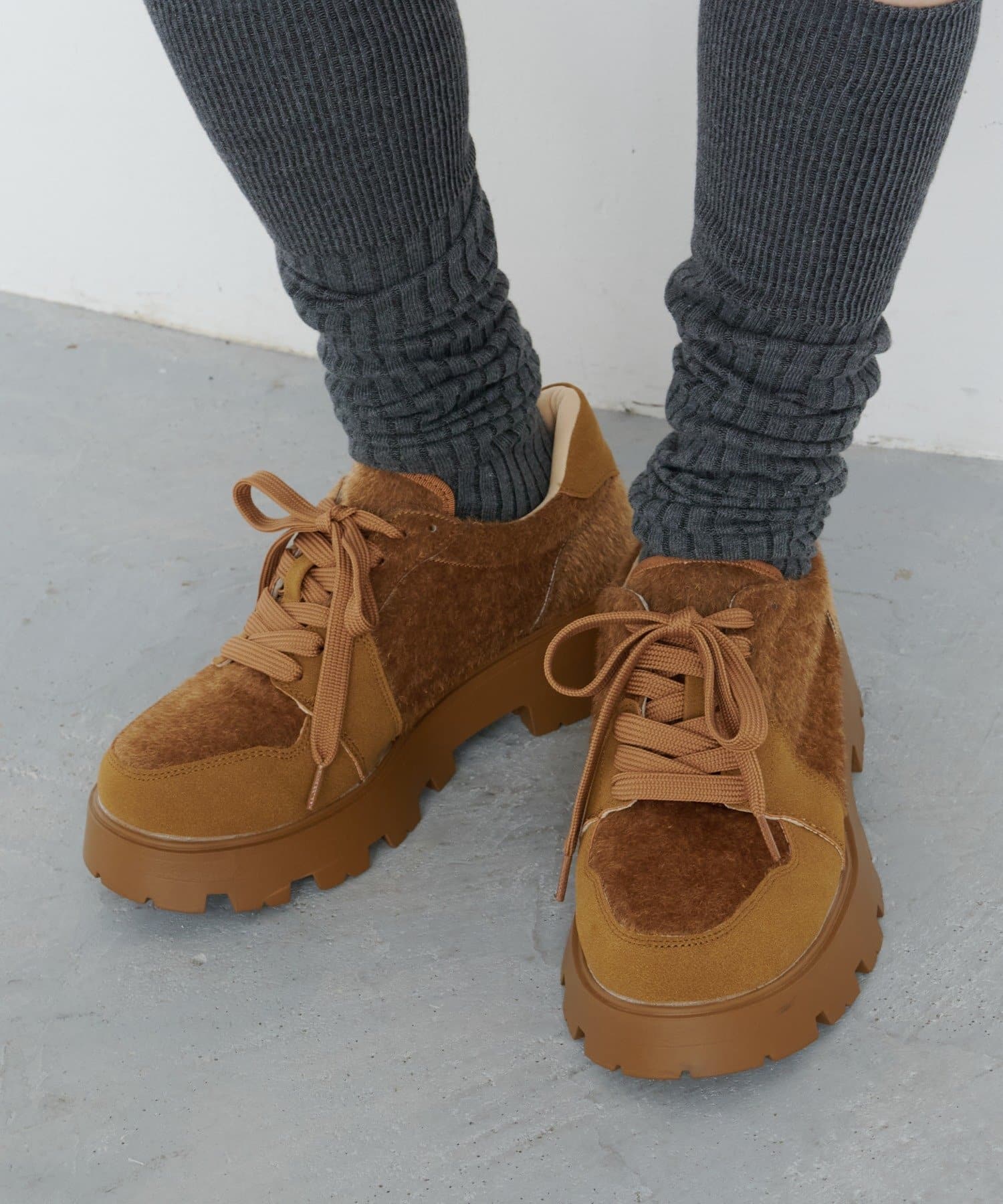 トレンド感のあるボリュームソールは見た目のインパクトはもちろん、脚をとにかく綺麗に見せてくれます。