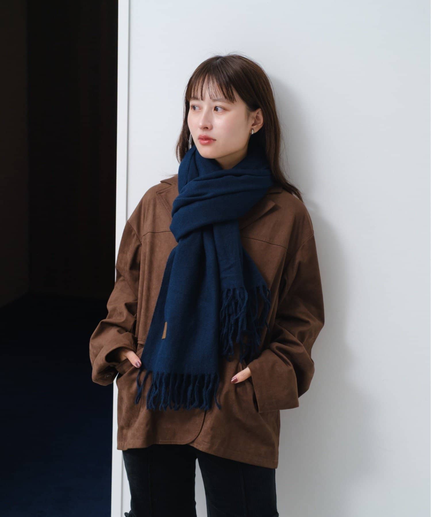 どんなコーディネートにも合わせやすい無地のマフラー。