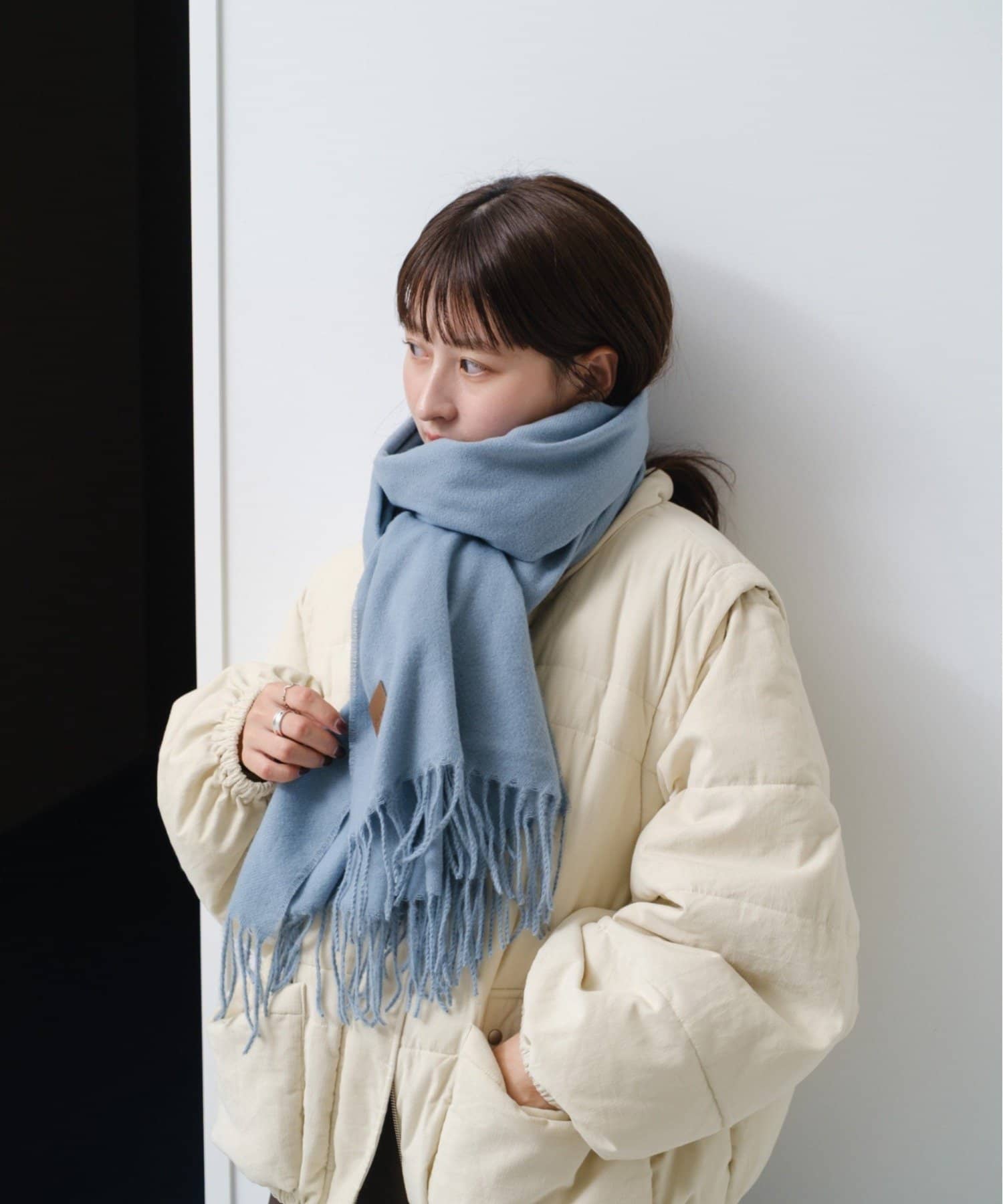 厚すぎない生地感なので、ボリュームが出過ぎずに巻いていただけます。