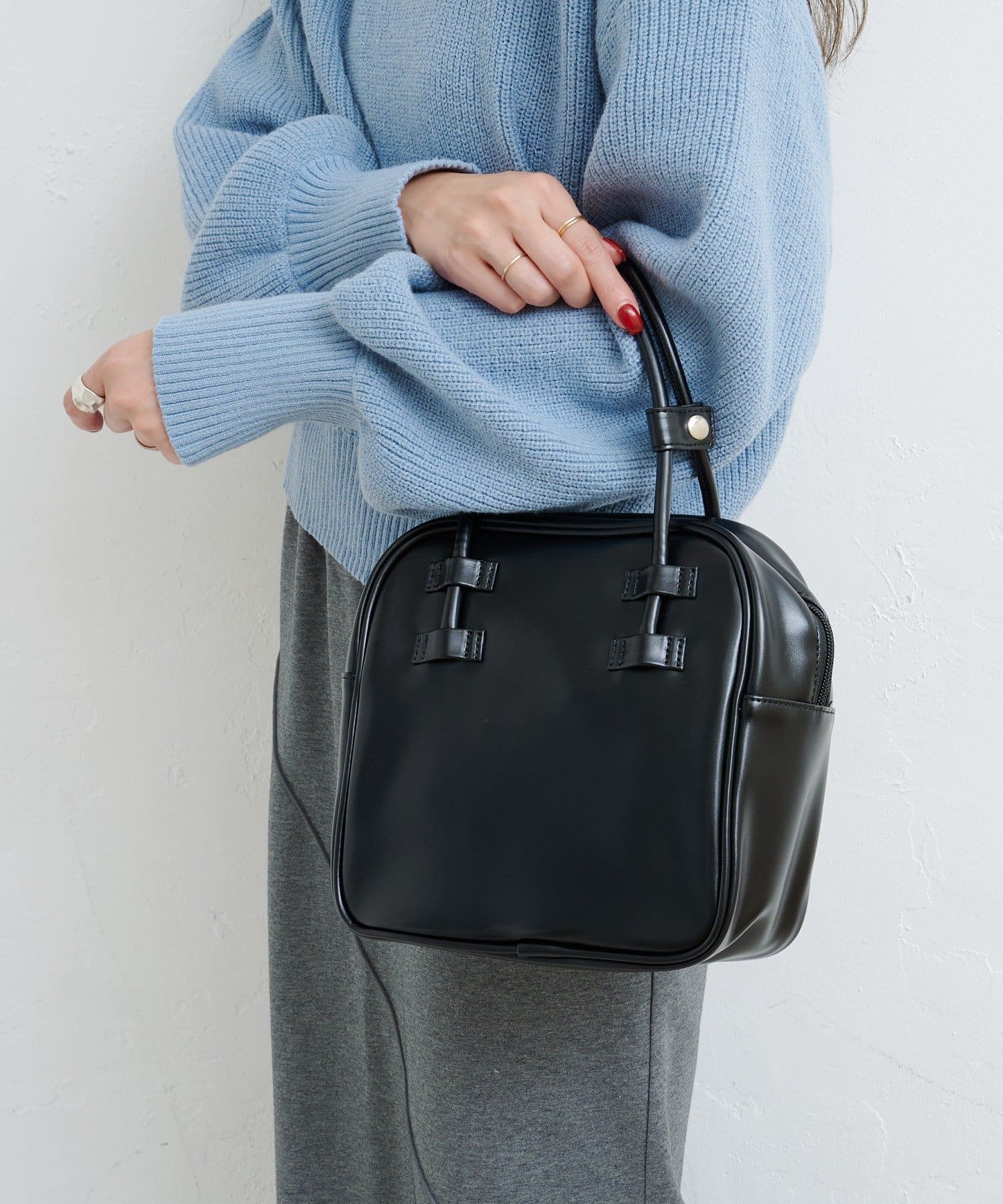 すっきりとしたスクエアフォルムが上品な印象のベーシックバッグ。