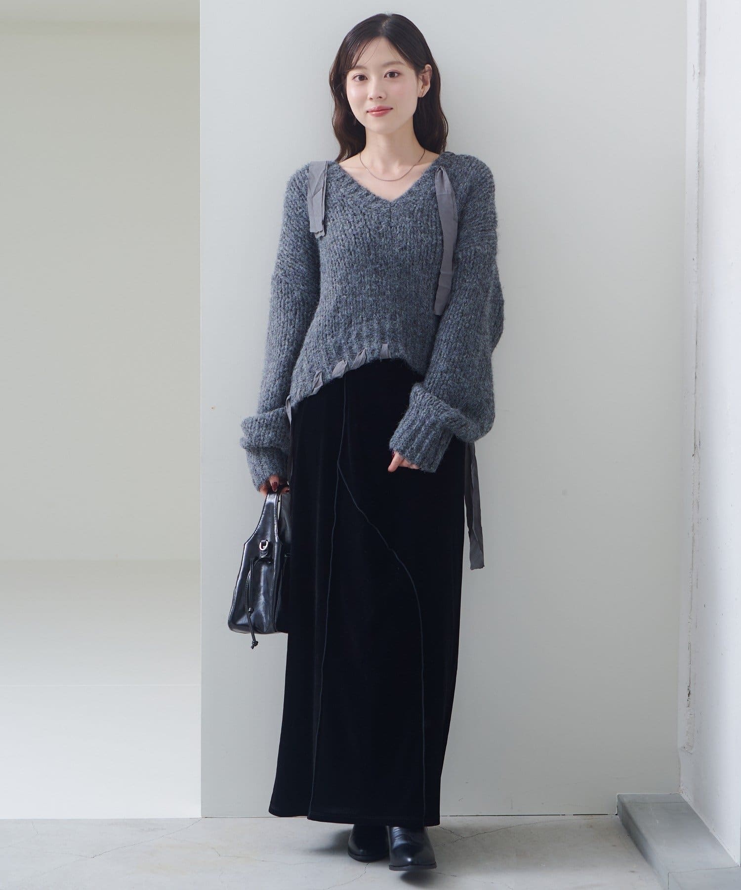 【11.13(木)〜SETFAIR KNITSET対象/2サイズ展開/低身長サイズ】ベロアメロウスカート