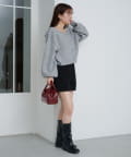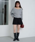 ゆるめのニットカーディガンと合わせれば、抜け感と女性らしさをプラスしたカジュアルミックススタイルに。
