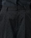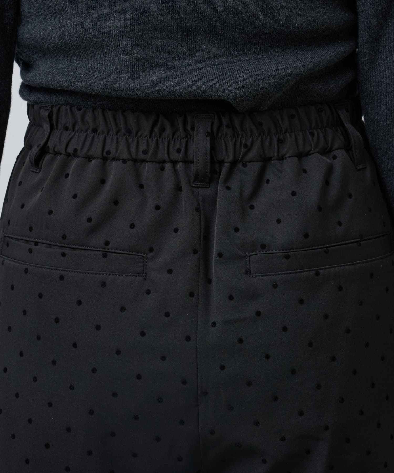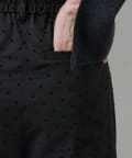 光沢のあるサテン素材に小さなドット柄をあしらった、上品で華やかな印象のショートパンツ。