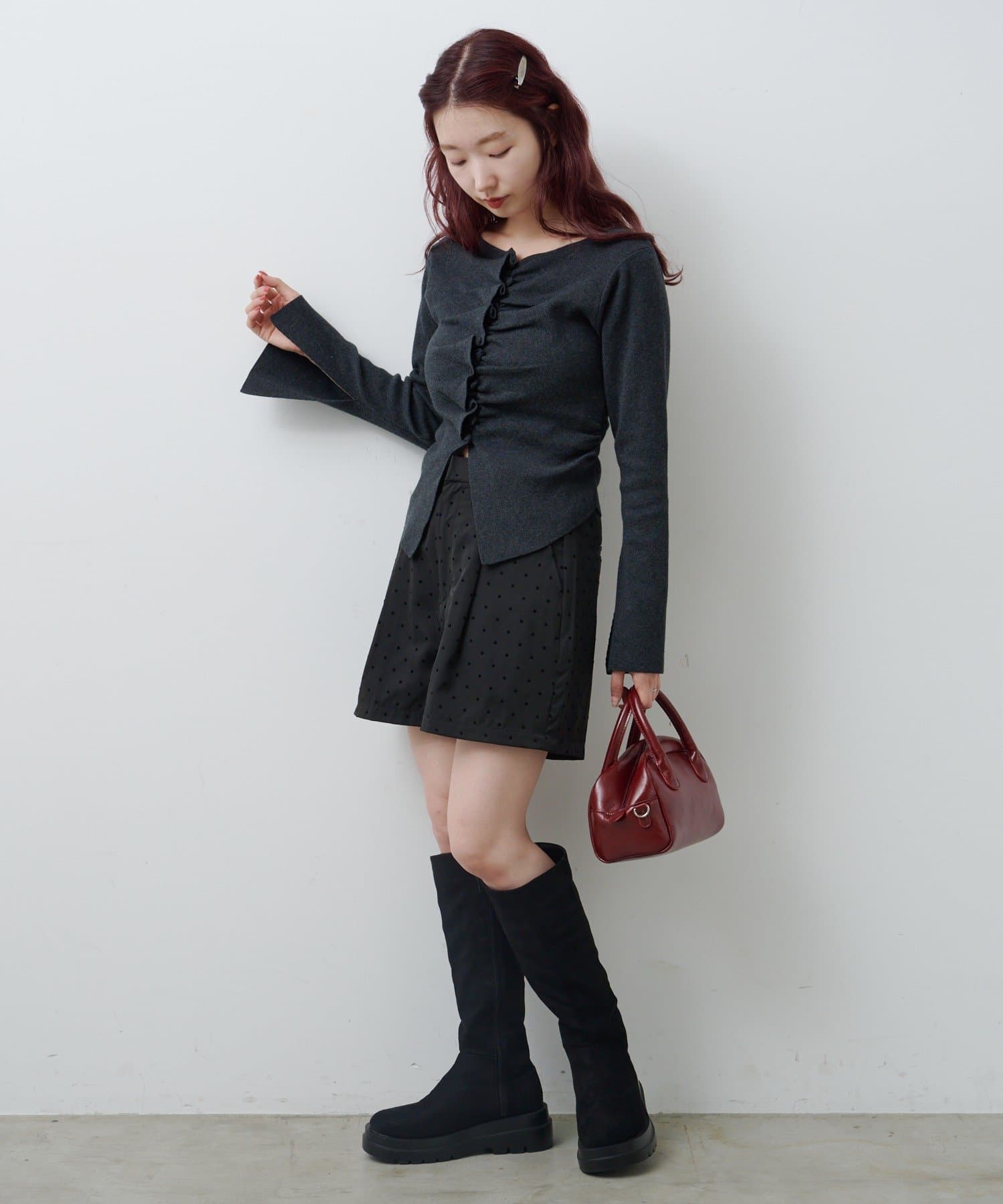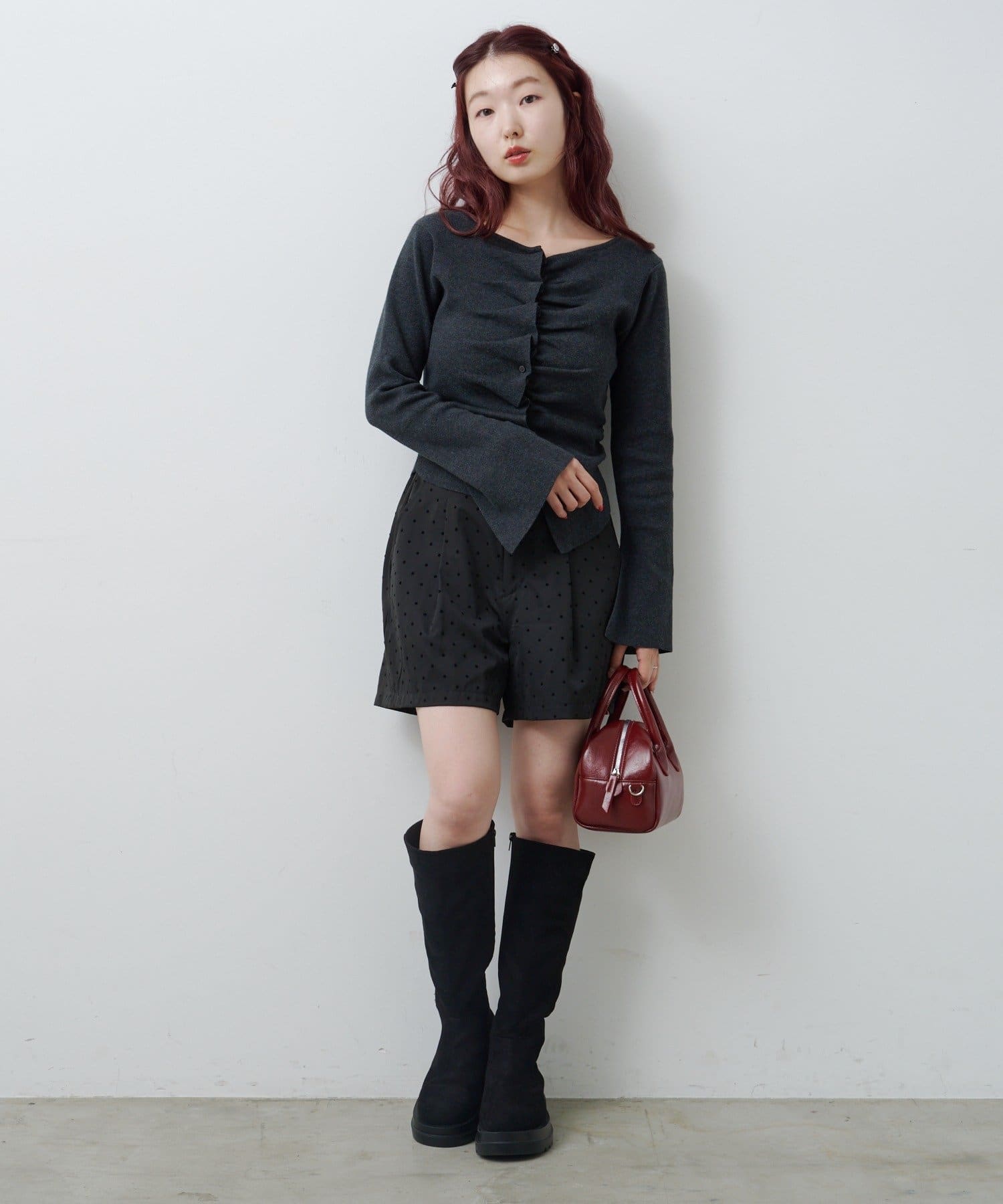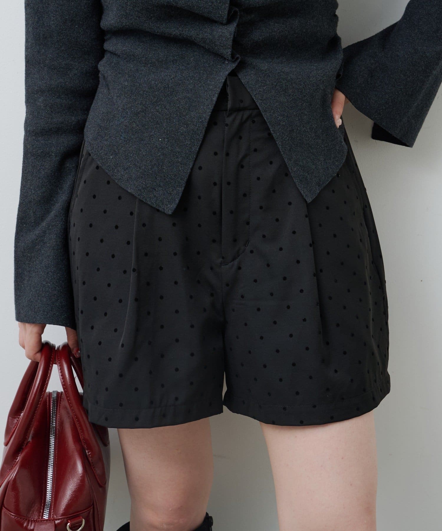 生地の質感とドット柄で個性を添える、シーズンレスに使える大人ショートパンツ