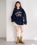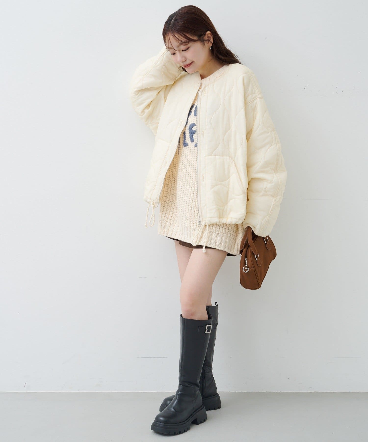 大きめシルエットなので、ミニ丈ボトムが今年らしいスタイリングに。