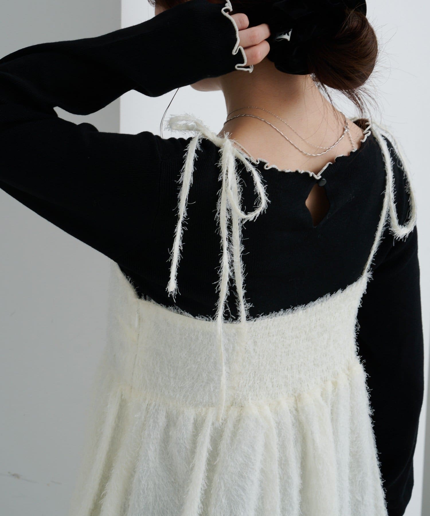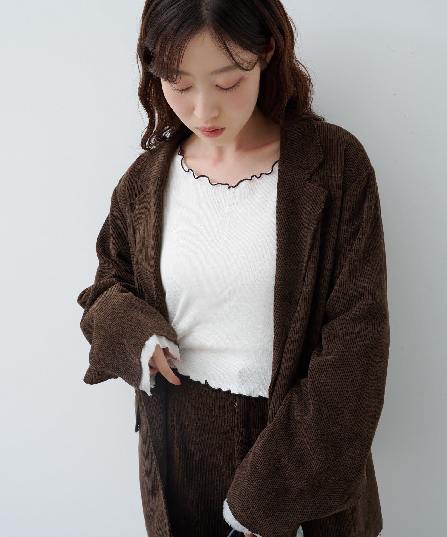 インナーにレースキャミを重ねてネックラインから覗かせるのもおすすめです。