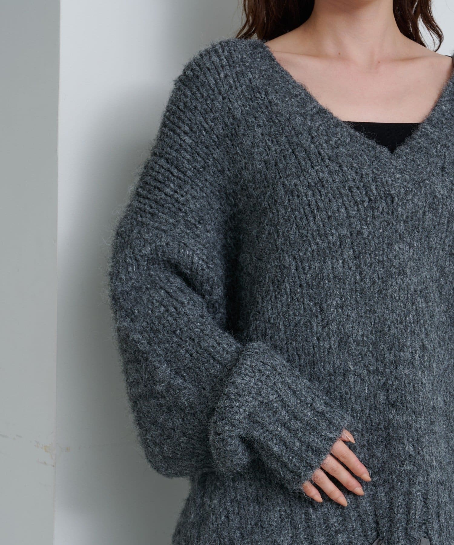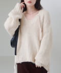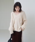 ふんわりとした柔らかなローゲージ素材。ボリューム感がありながらも軽く、暖かみのある着心地。