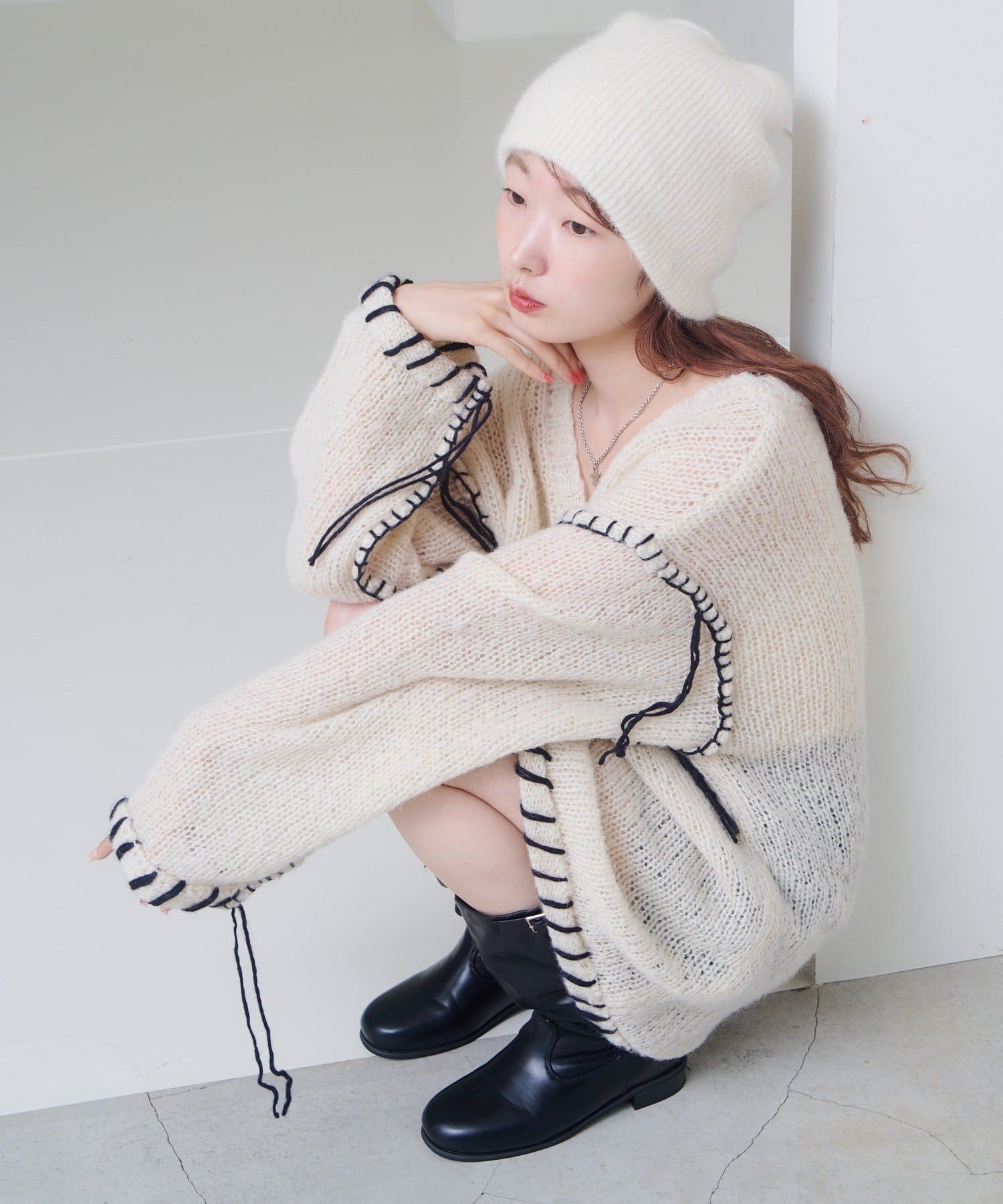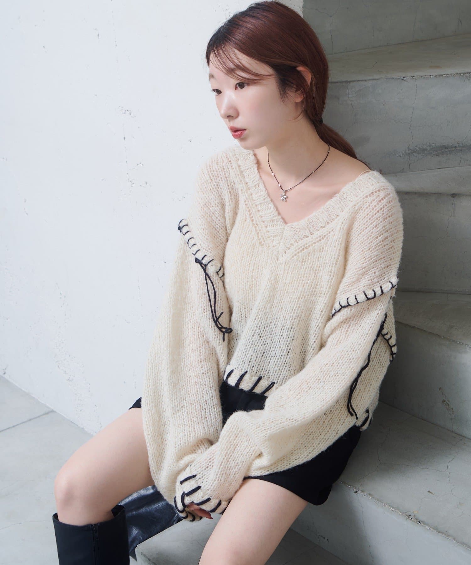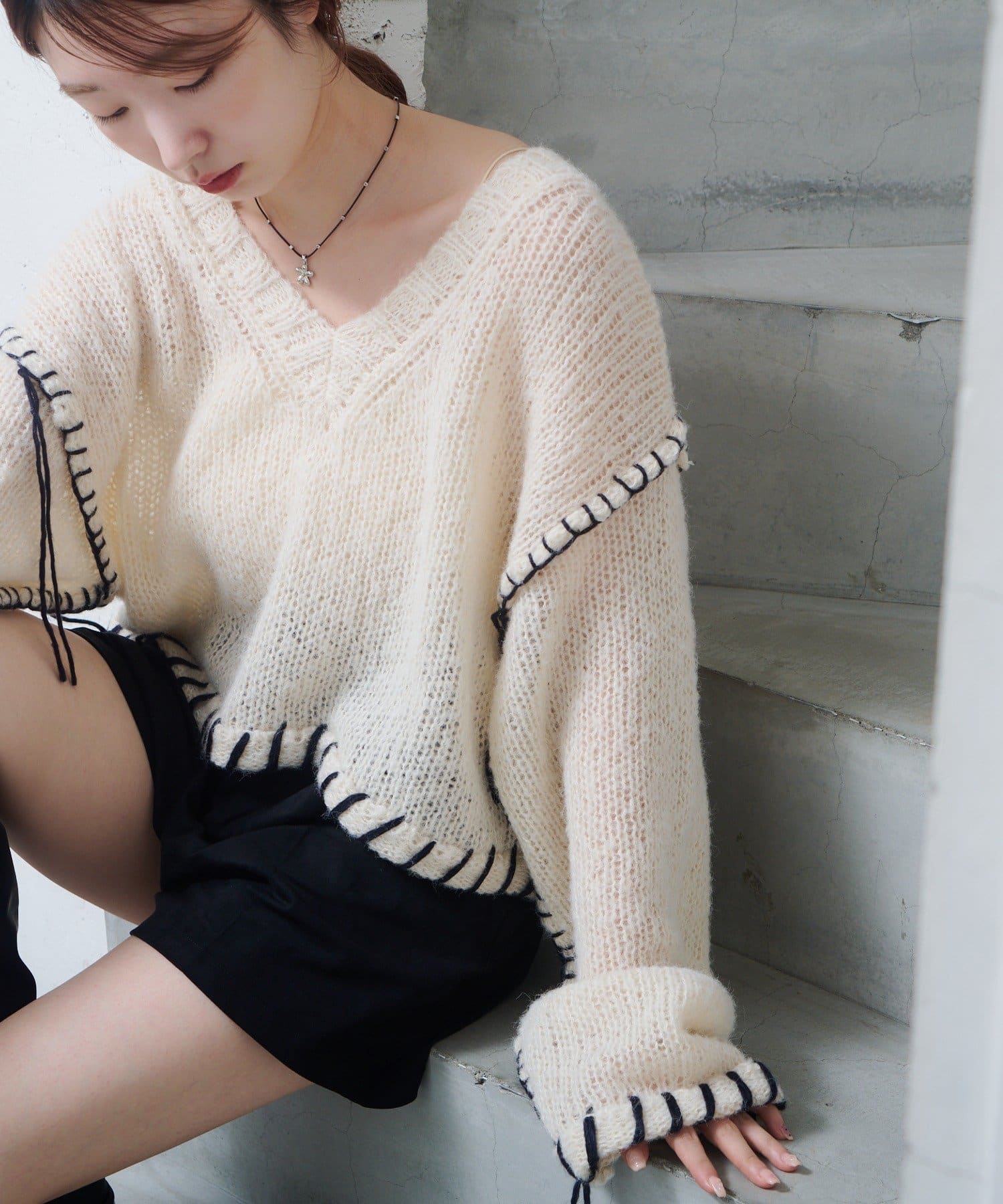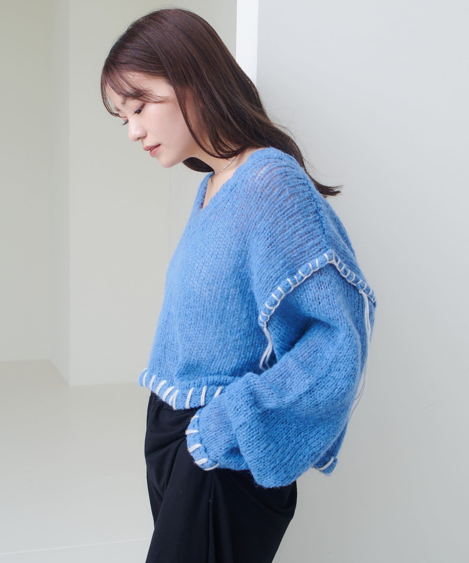 【10.25(土)12:00発売/S.Mサイズ展開/WEB先行】ブラインドステッチニット