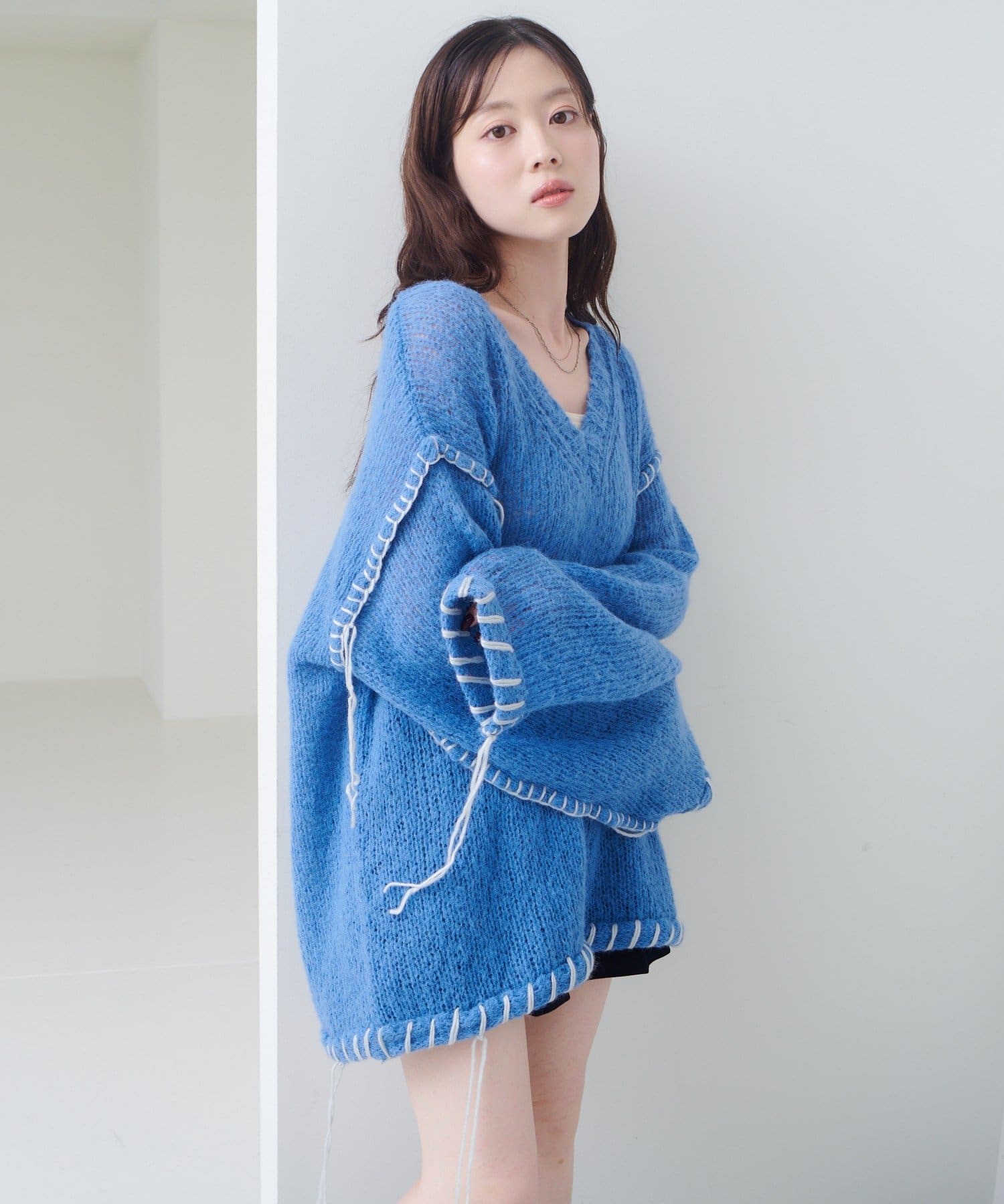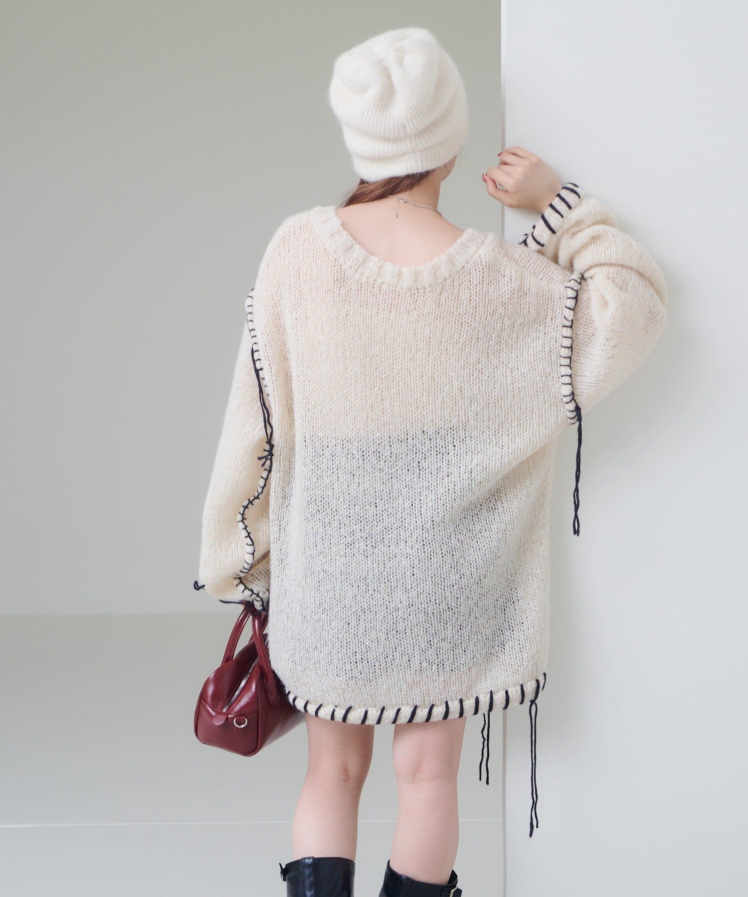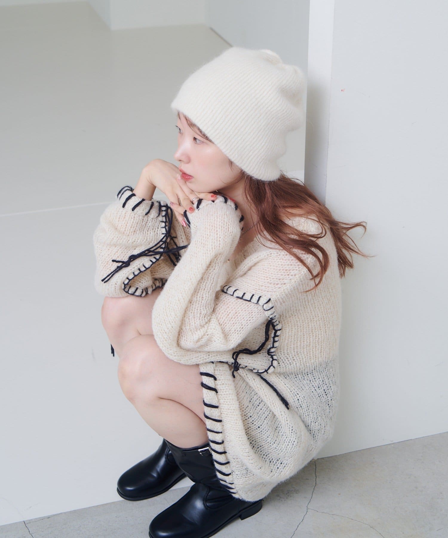 【10.25(土)12:00発売/S.Mサイズ展開/WEB先行】ブラインドステッチニット
