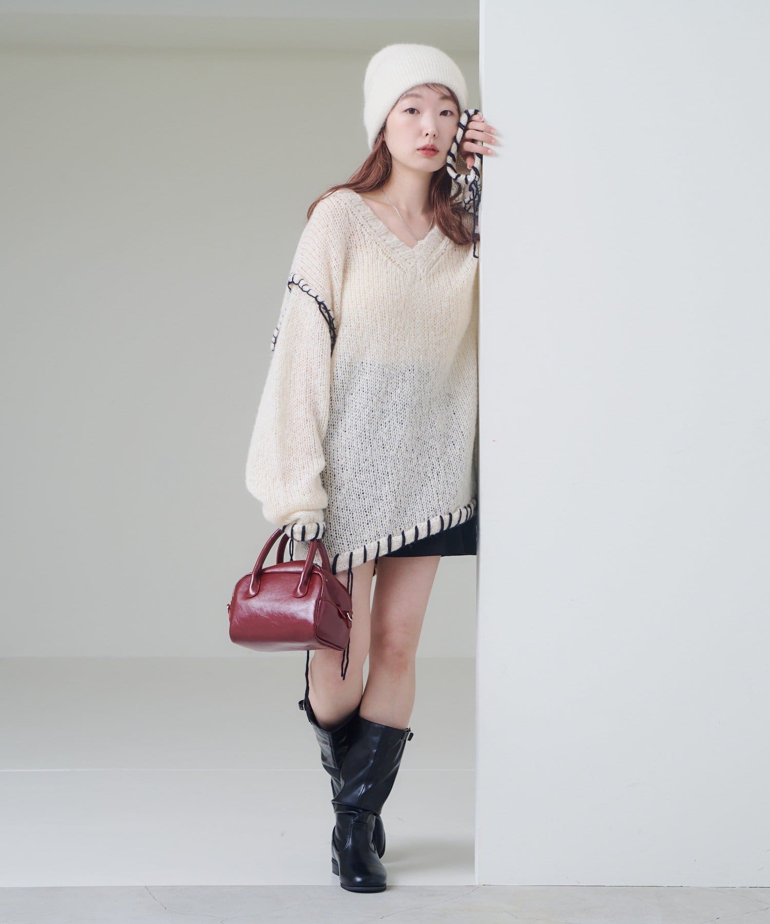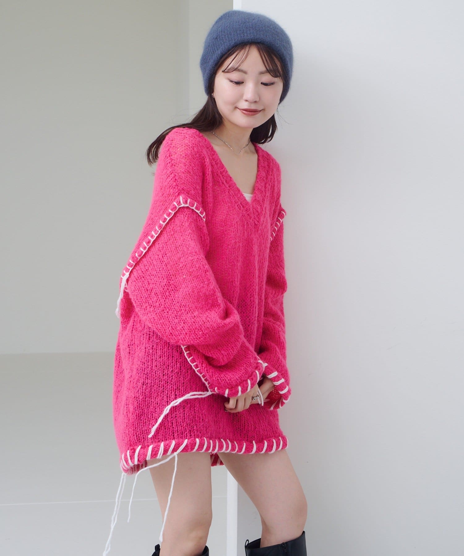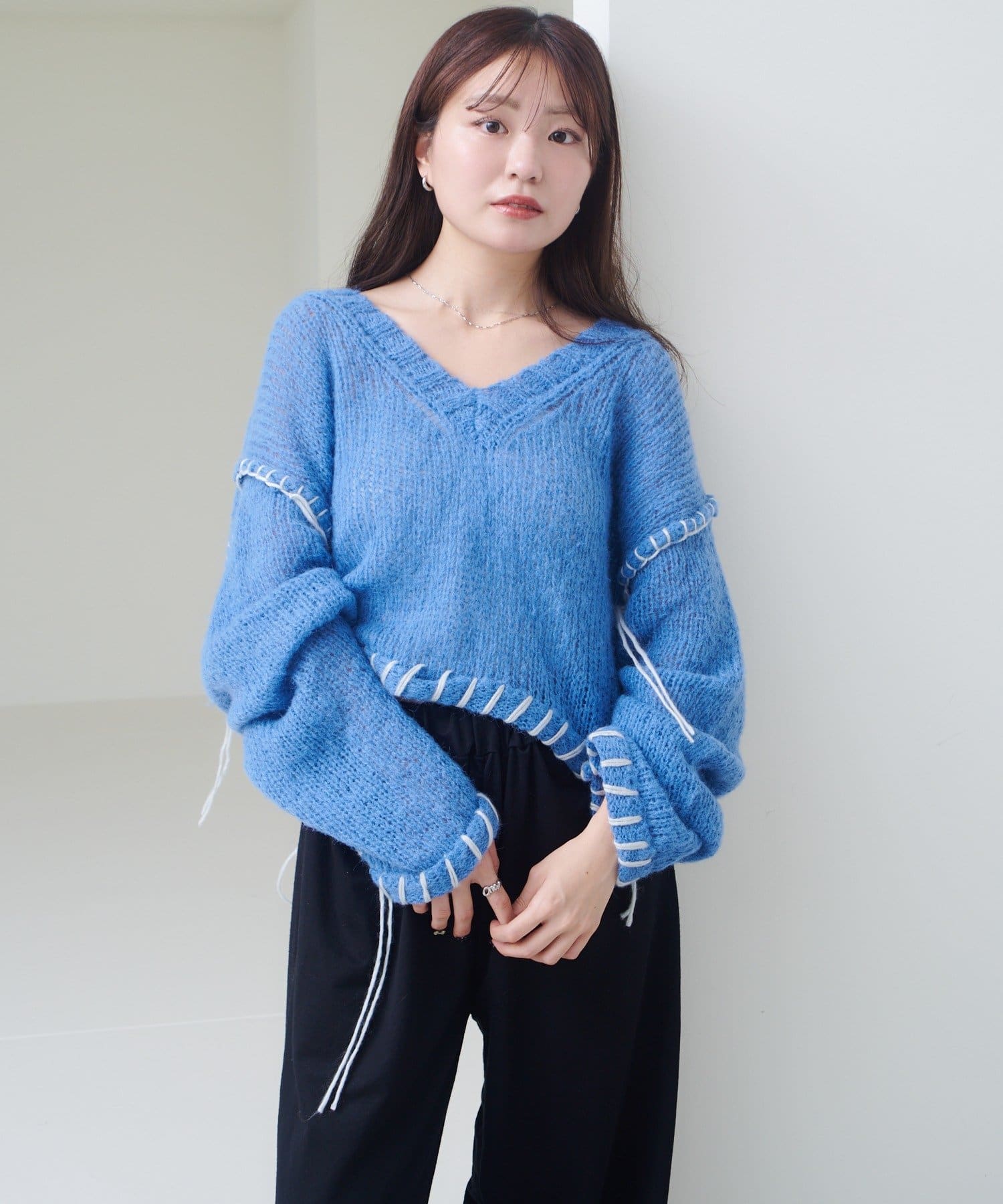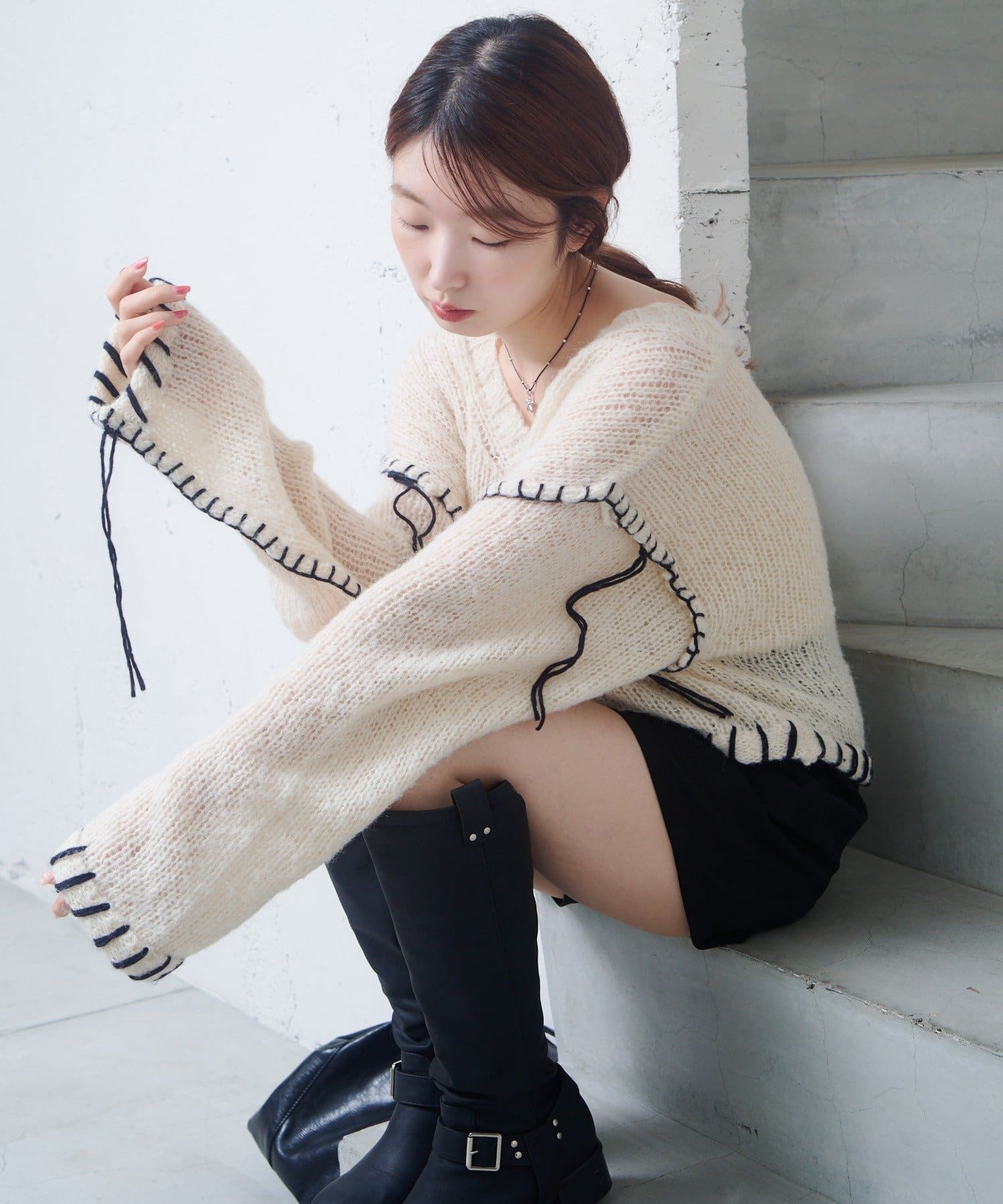【10.25(土)12:00発売/S.Mサイズ展開/WEB先行】ブラインドステッチニット