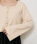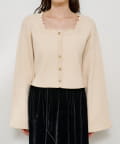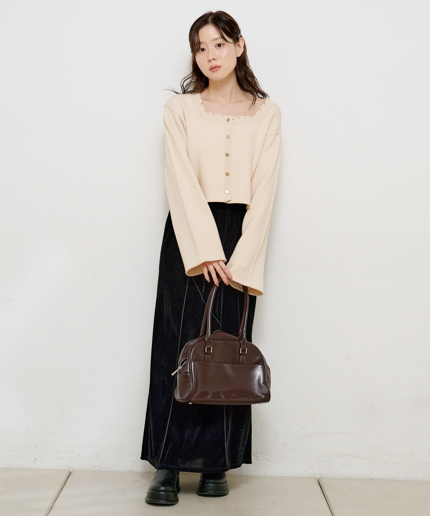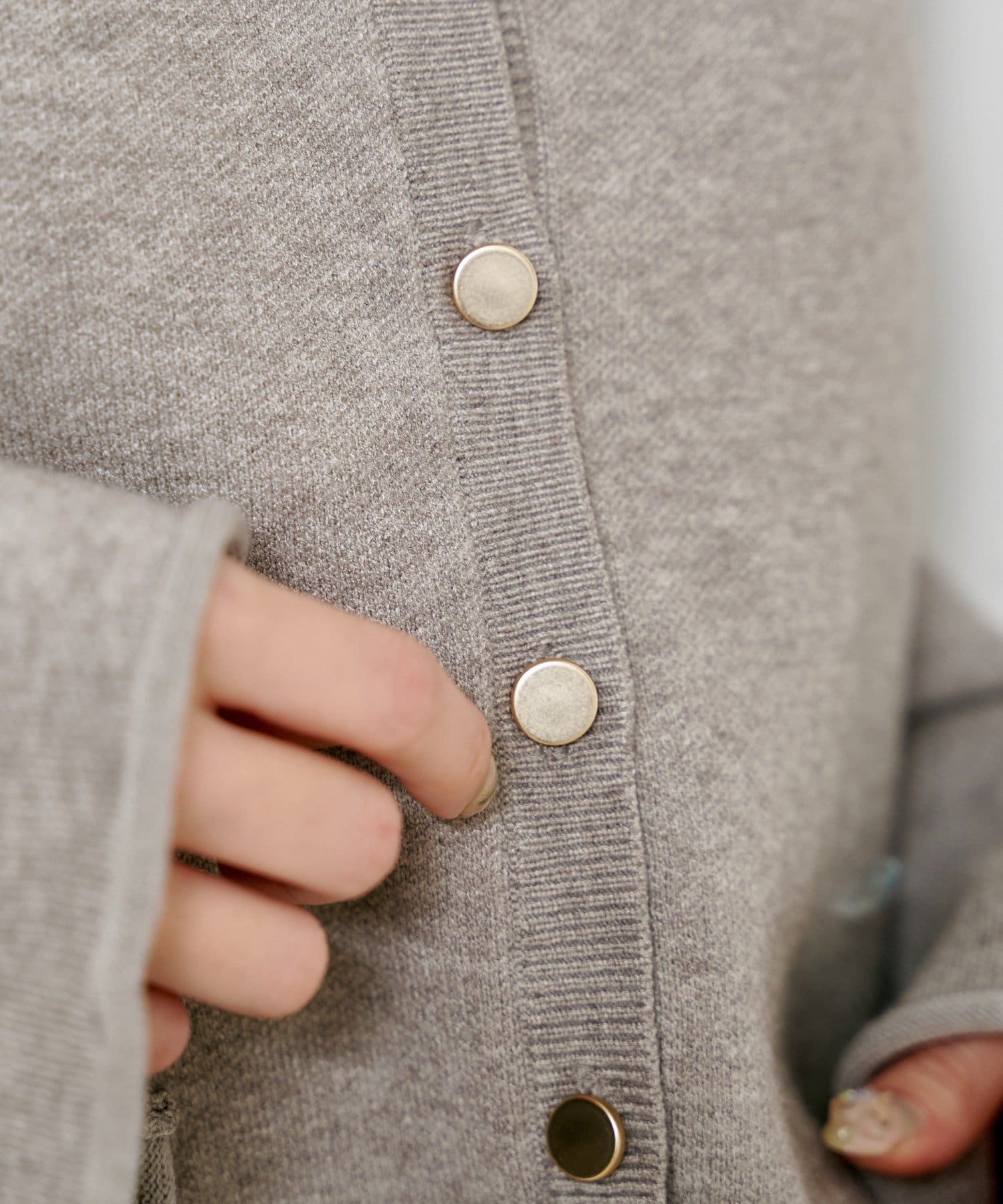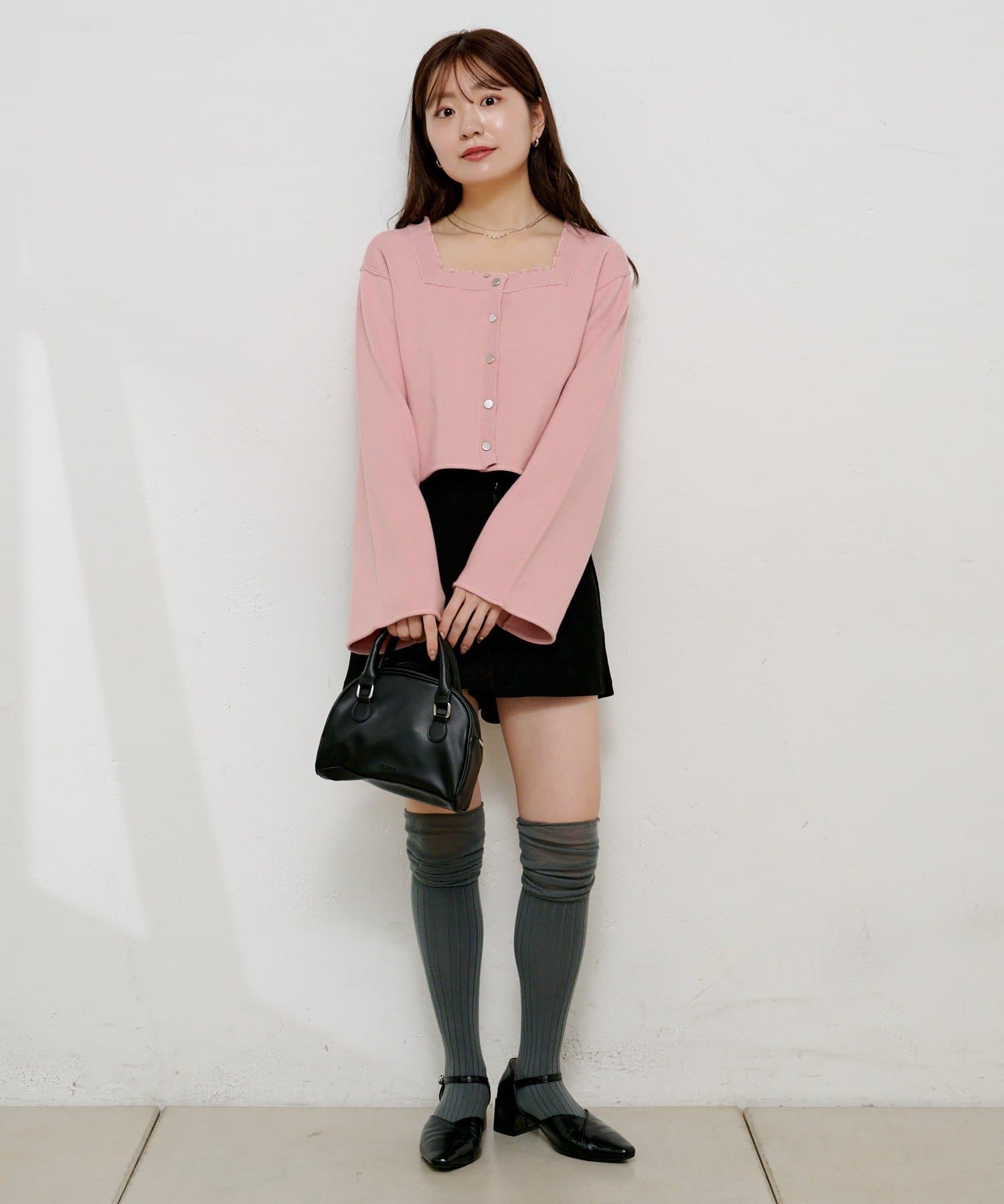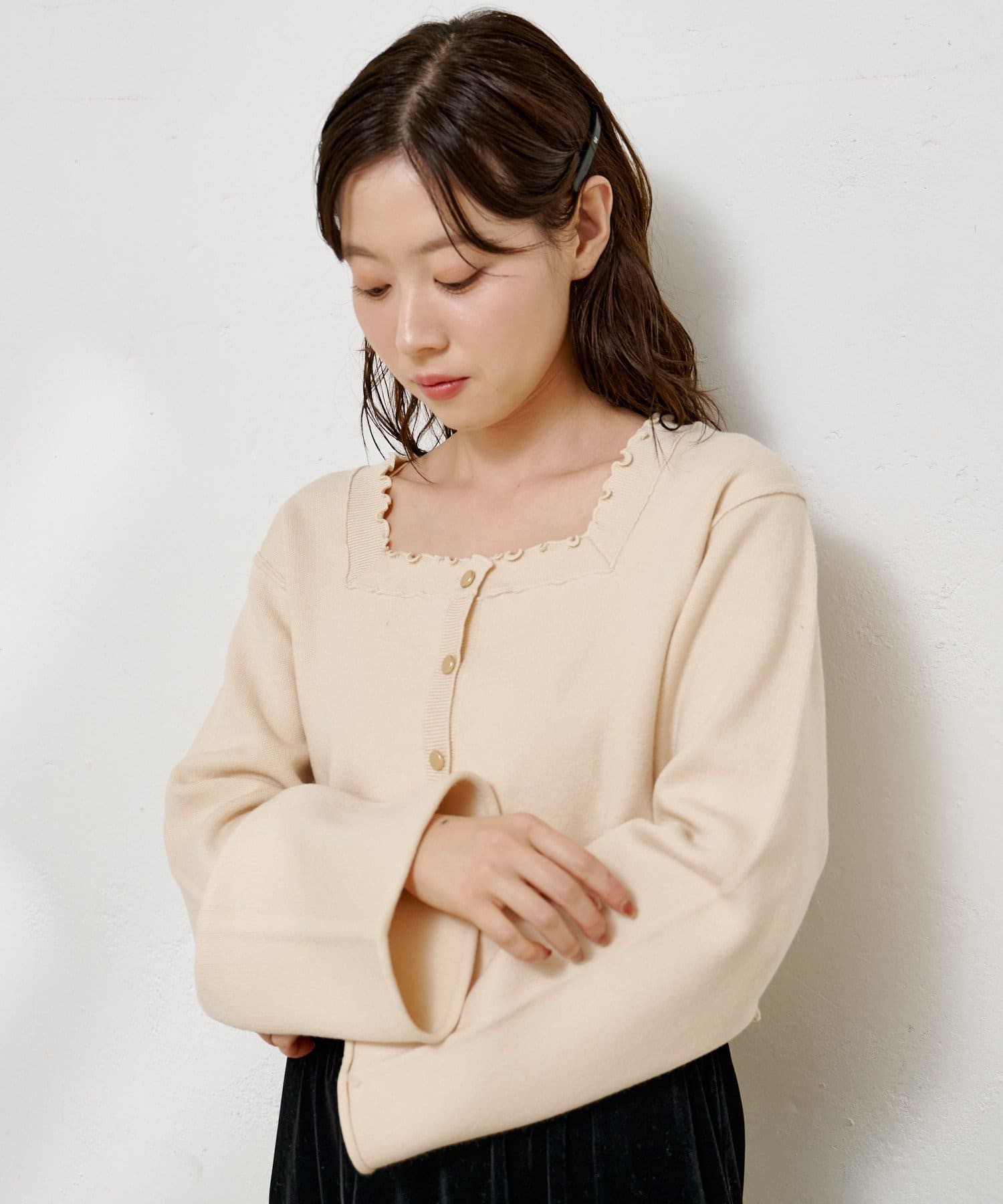 首元をすっきりと見せるスクエアネックが特徴のニットカーディガン