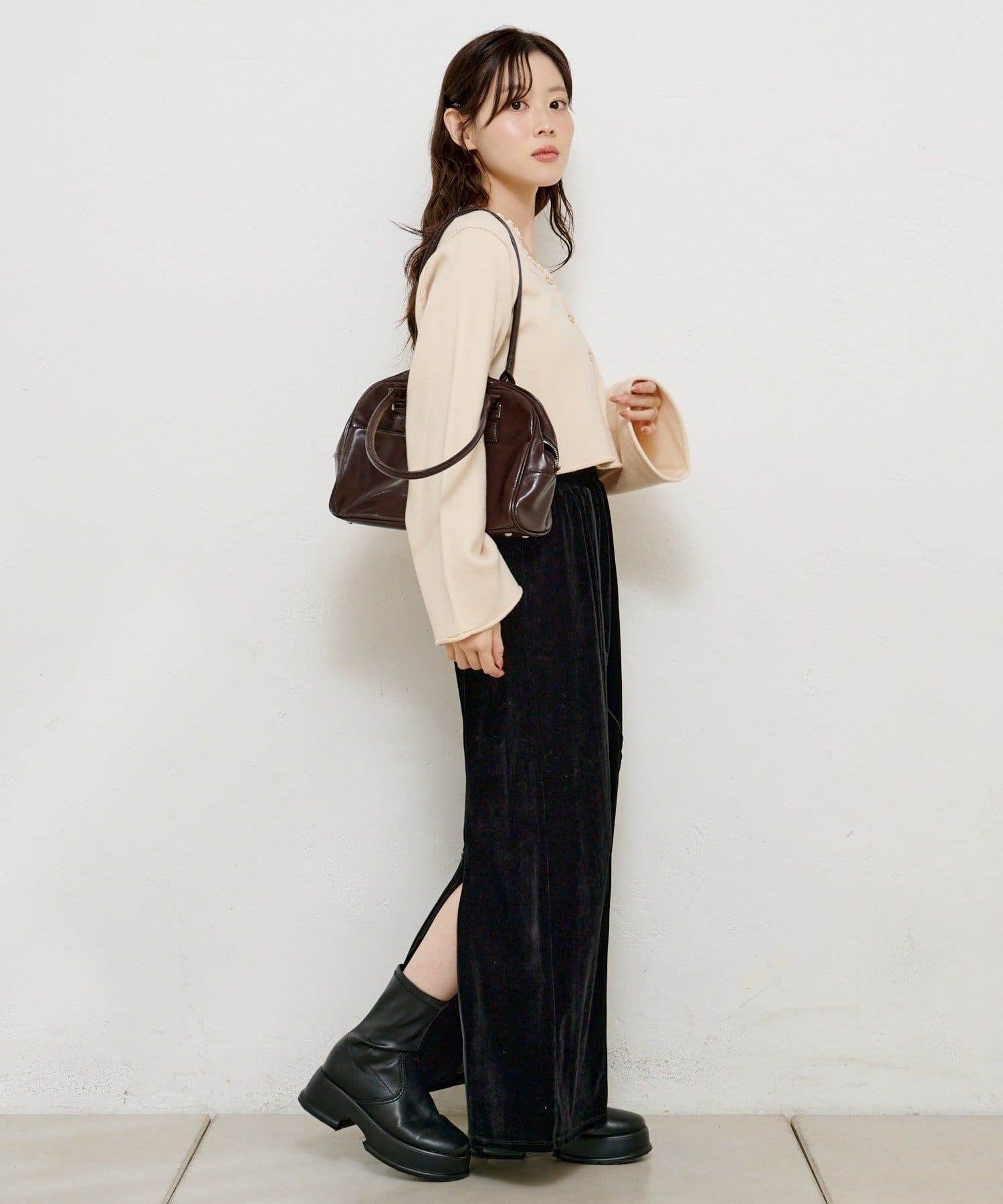 ハイウエストボトムと合わせてバランス良く、スタイルアップ効果も抜群。