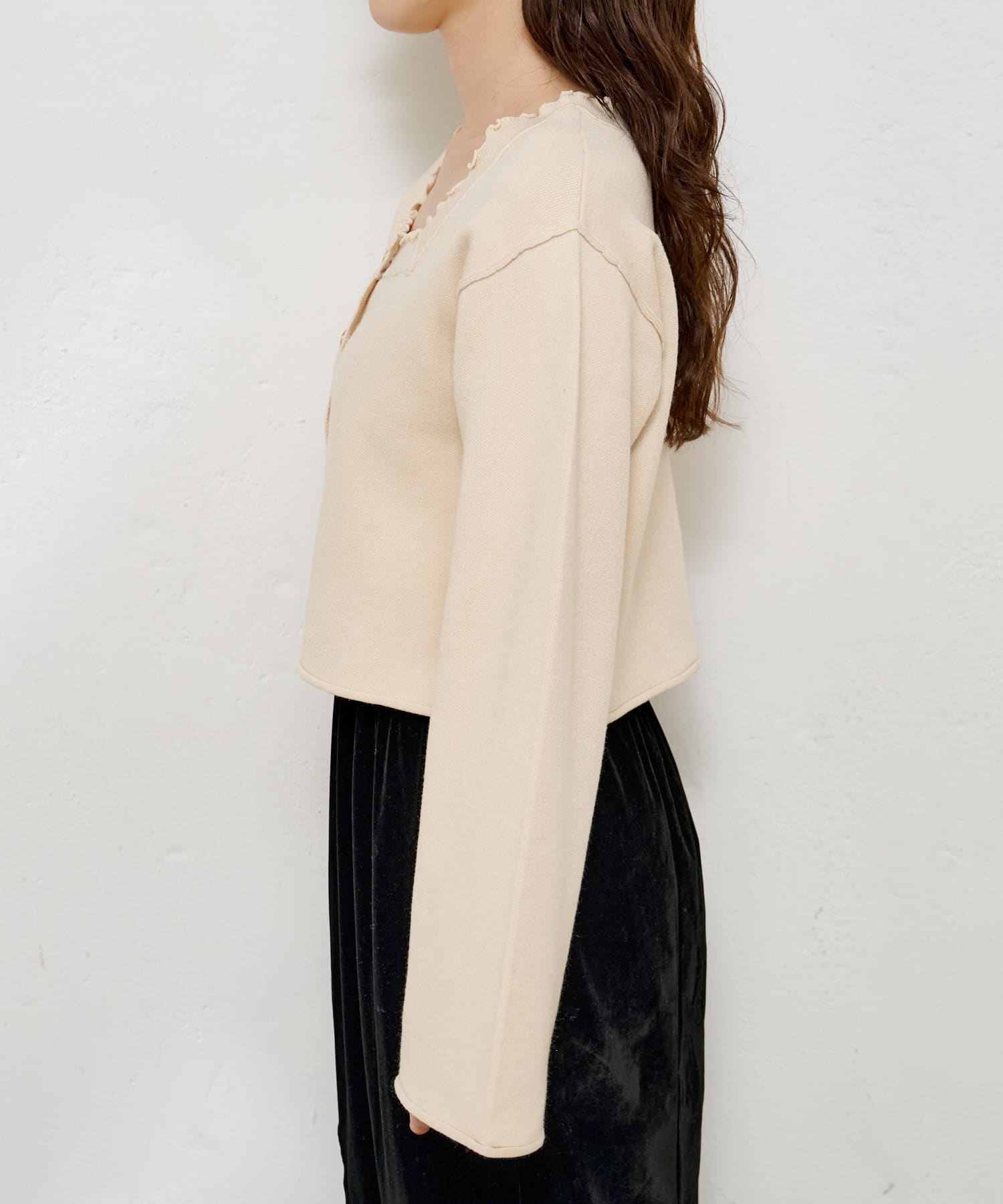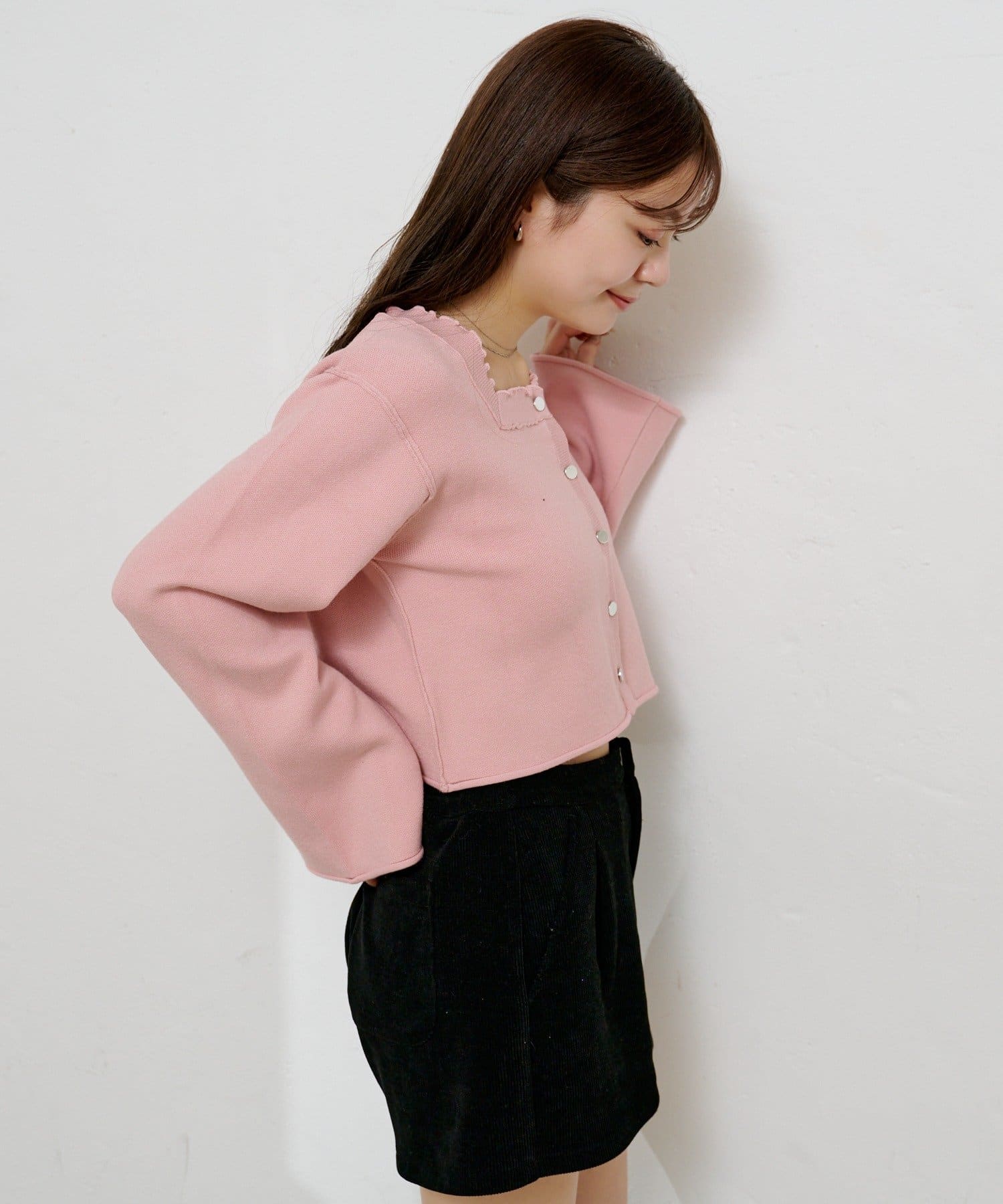 さりげないメロウデザインが可愛らしさを引き立て、コンパクトな丈感がトレンドライクな印象に。