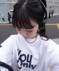 大小のロゴデザインや、ロゴ自体の配置など、1枚で主役になる存在感がありますが、重ね着や、レーヤードも楽しめる分厚過ぎない素材です。