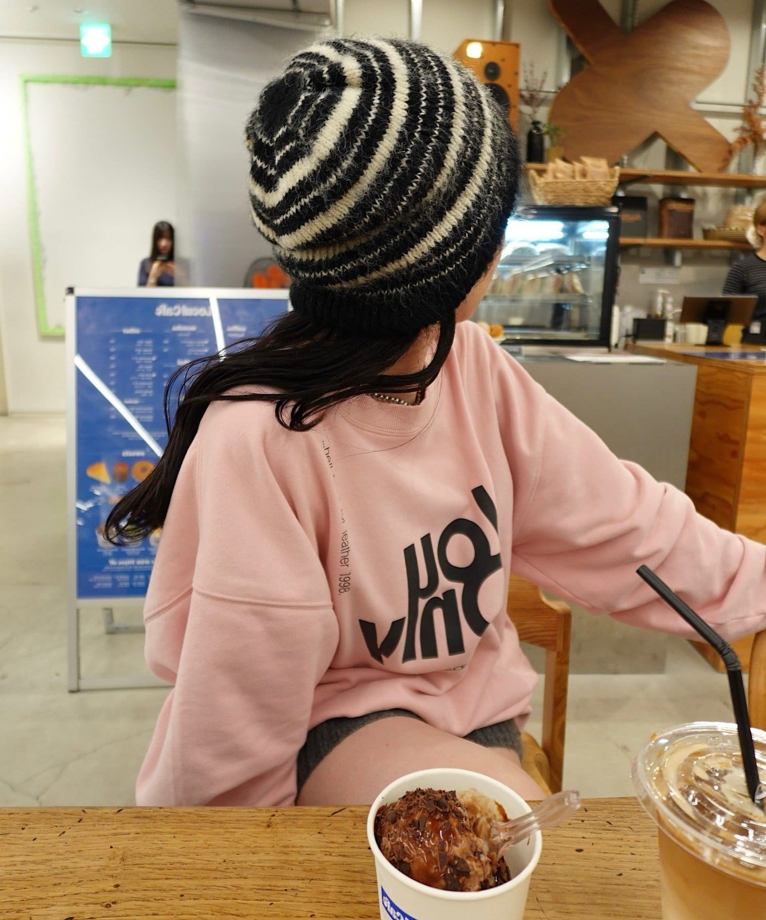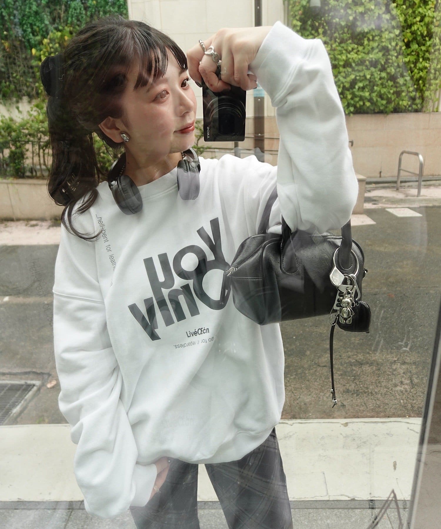 デザイン性と着回しを兼ね備えたオーバーサイズロゴスェット