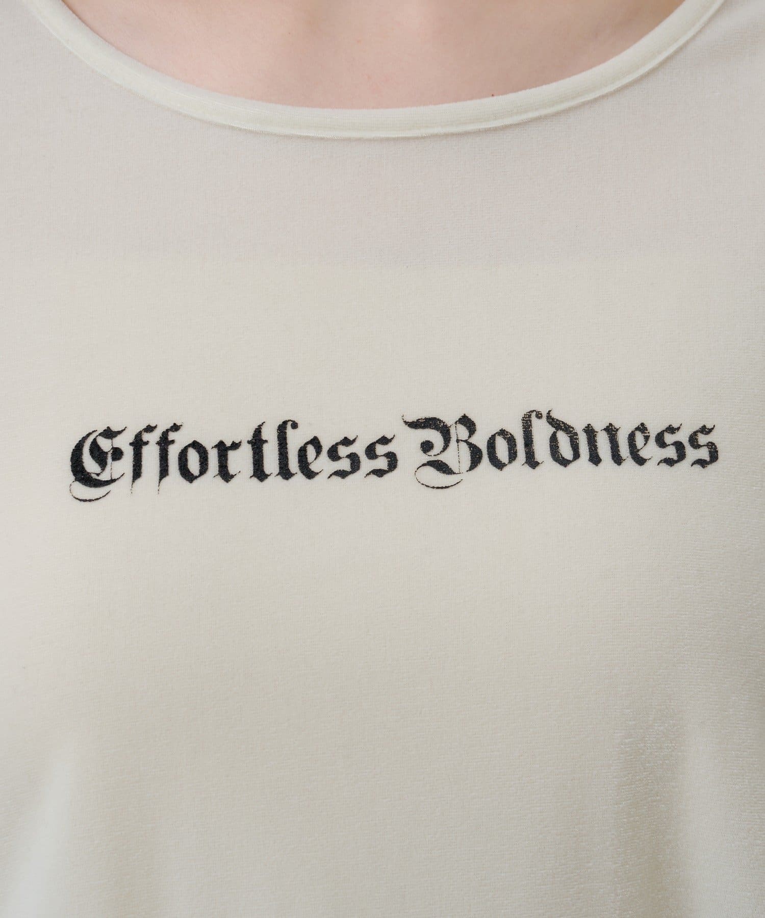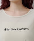 胸元のロゴがコーデのアクセントとなり、シンプルながら存在感のある仕上がりに。