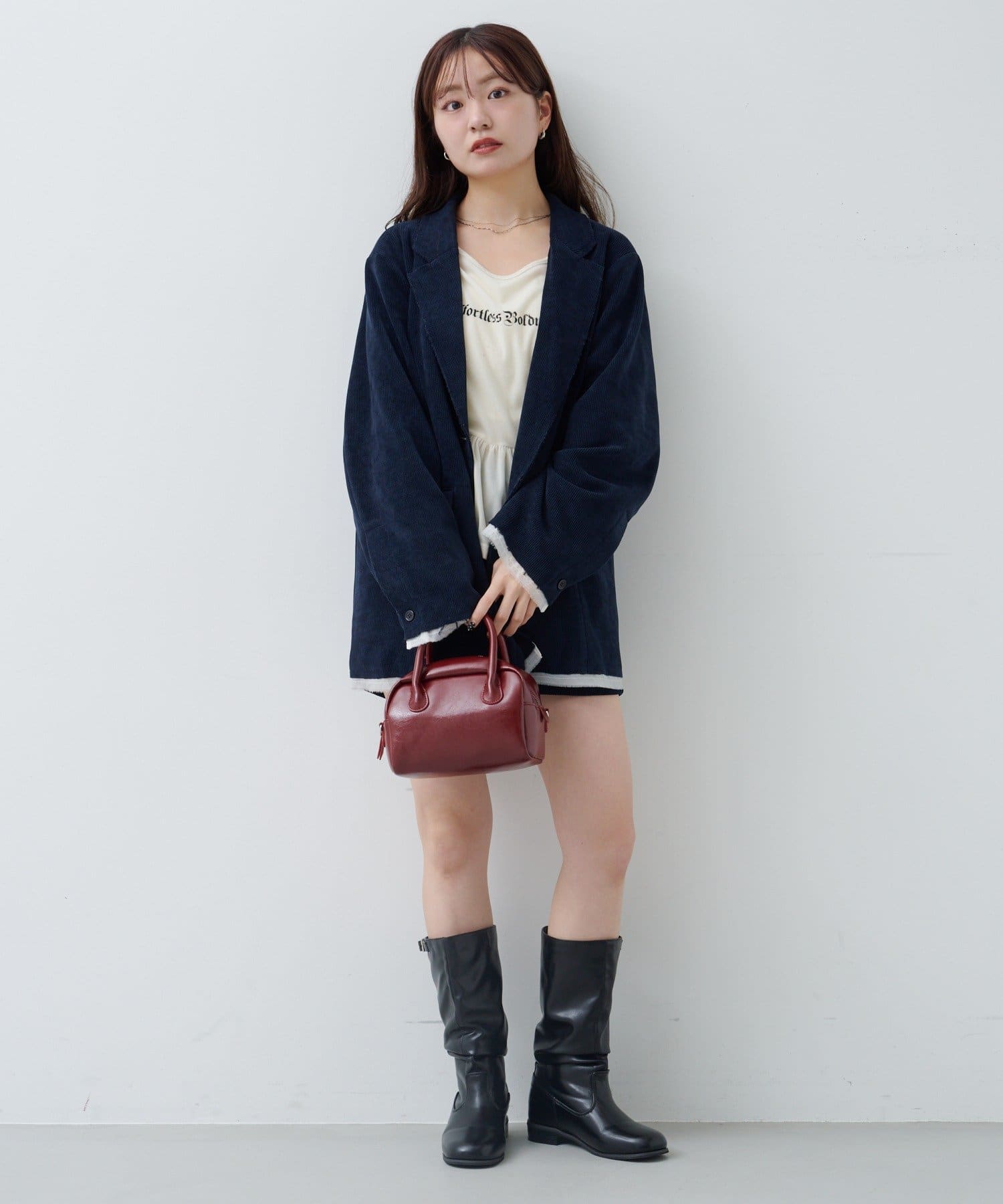 ジャケットやコートのインナーとしても映えるので秋冬のアクセントに最適。