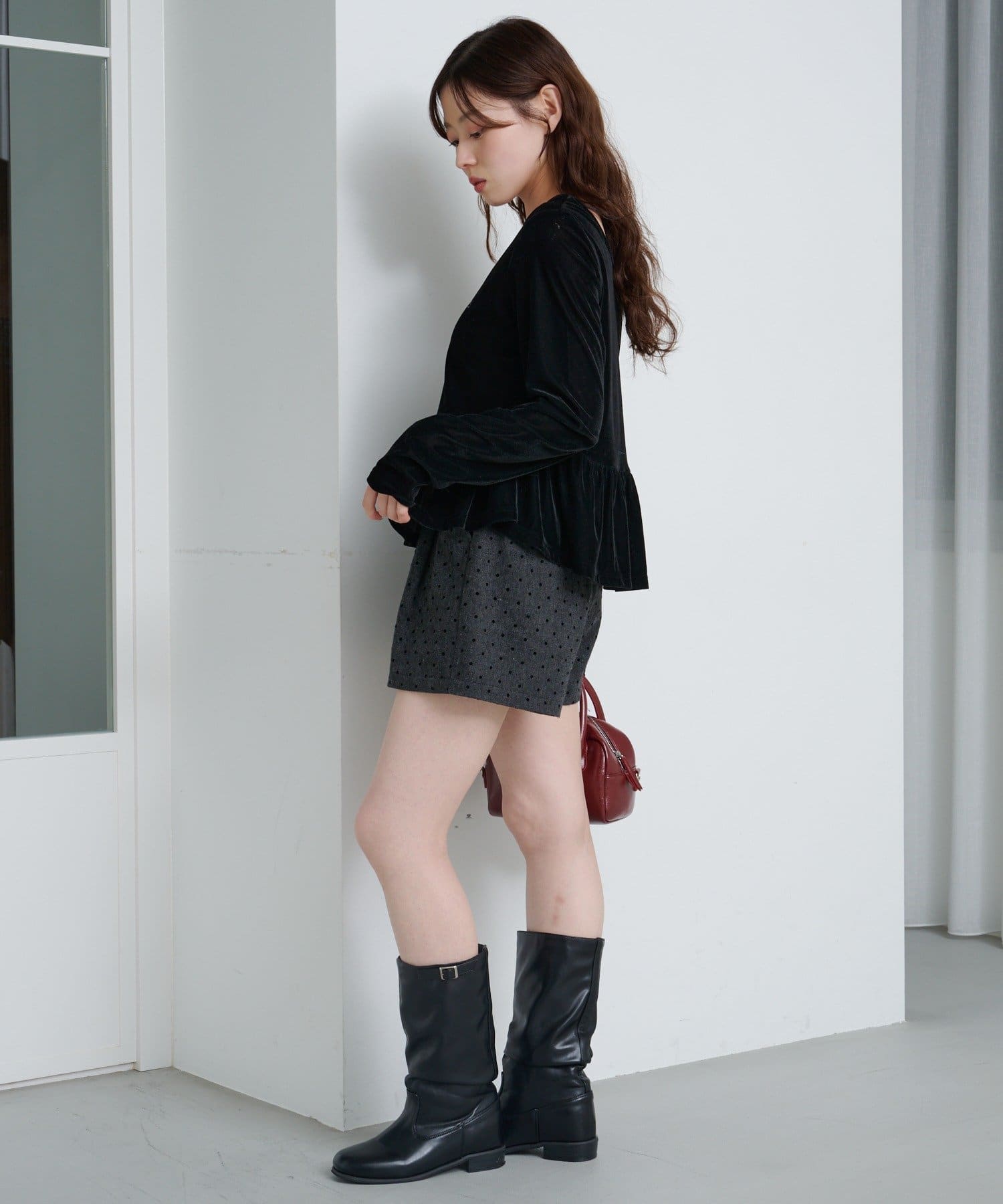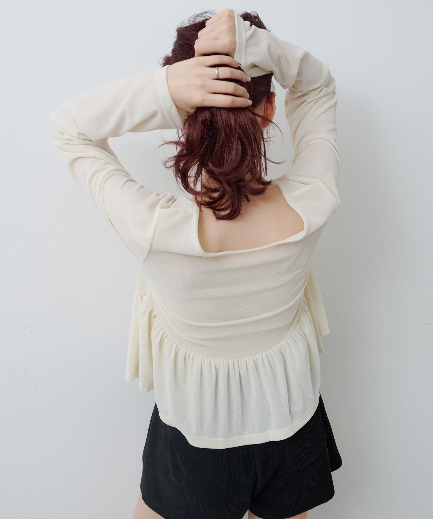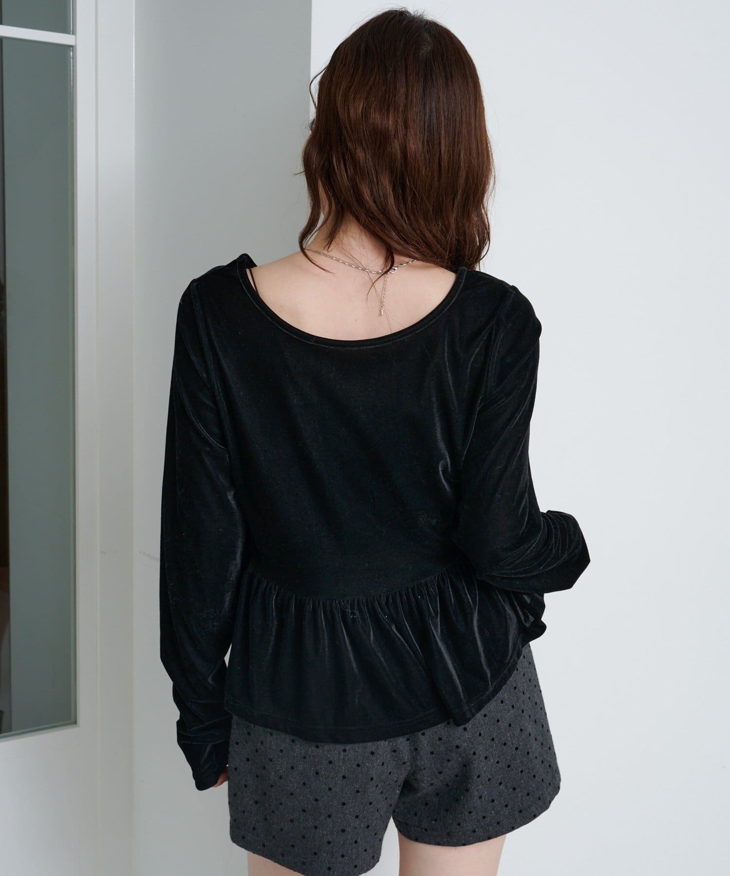 華やかシルエットで魅せる、ベロアの大人ペプラムトップス