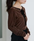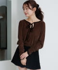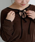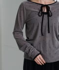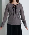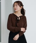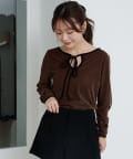 インナーとしてジャケットやカーディガンの中に仕込んでも、首元のリボンがさりげなくポイントになります。