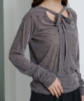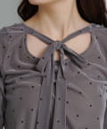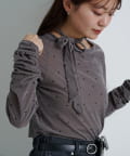 光沢ベロア×ドットで品よく映える、ボウタイプルオーバー