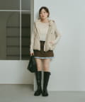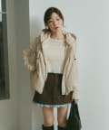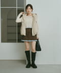 ゆったりとしたシルエットで重ね着しやすく、フェイクスウェードの素材が今年らしい一着です。