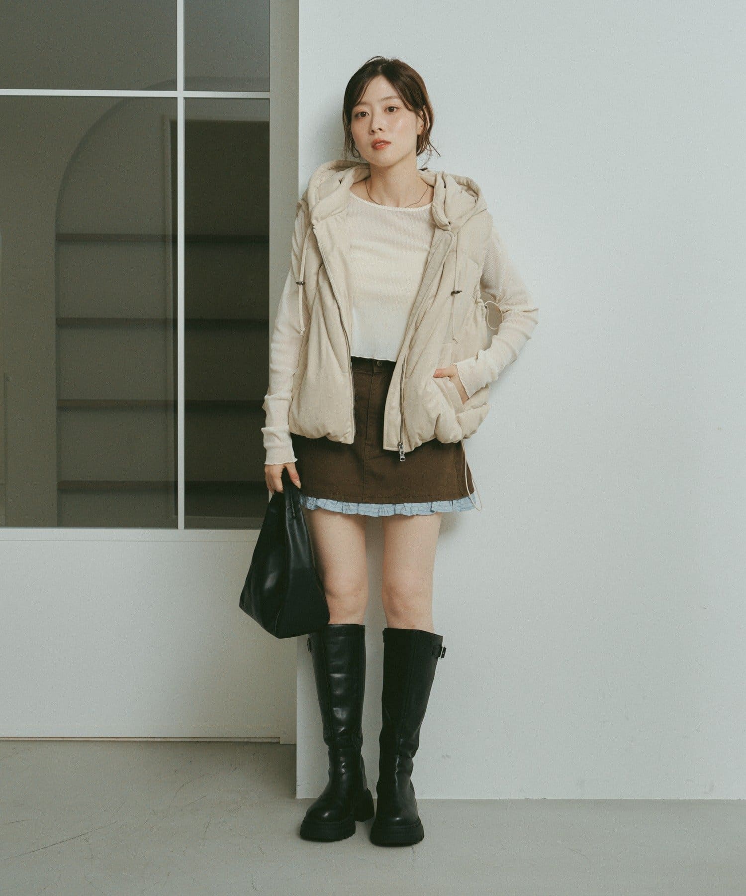 インナーに合わせるアイテムでジャンルを変えられるベストは幅広いスタイリングで活躍。