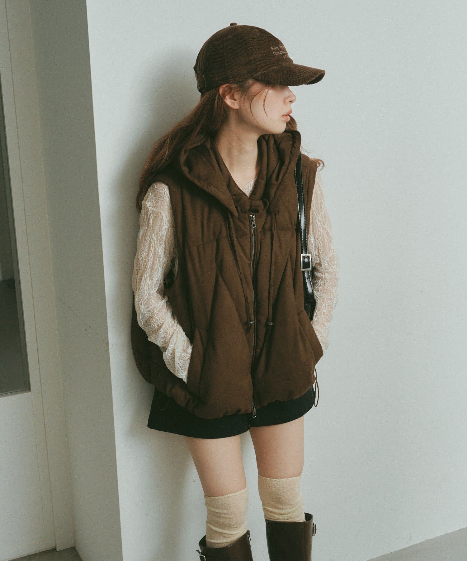TOP > OUTLET > レディース > ジャケット/アウター > ベスト/ジレ > 【Kastane】フェイクスウェード中綿ベスト