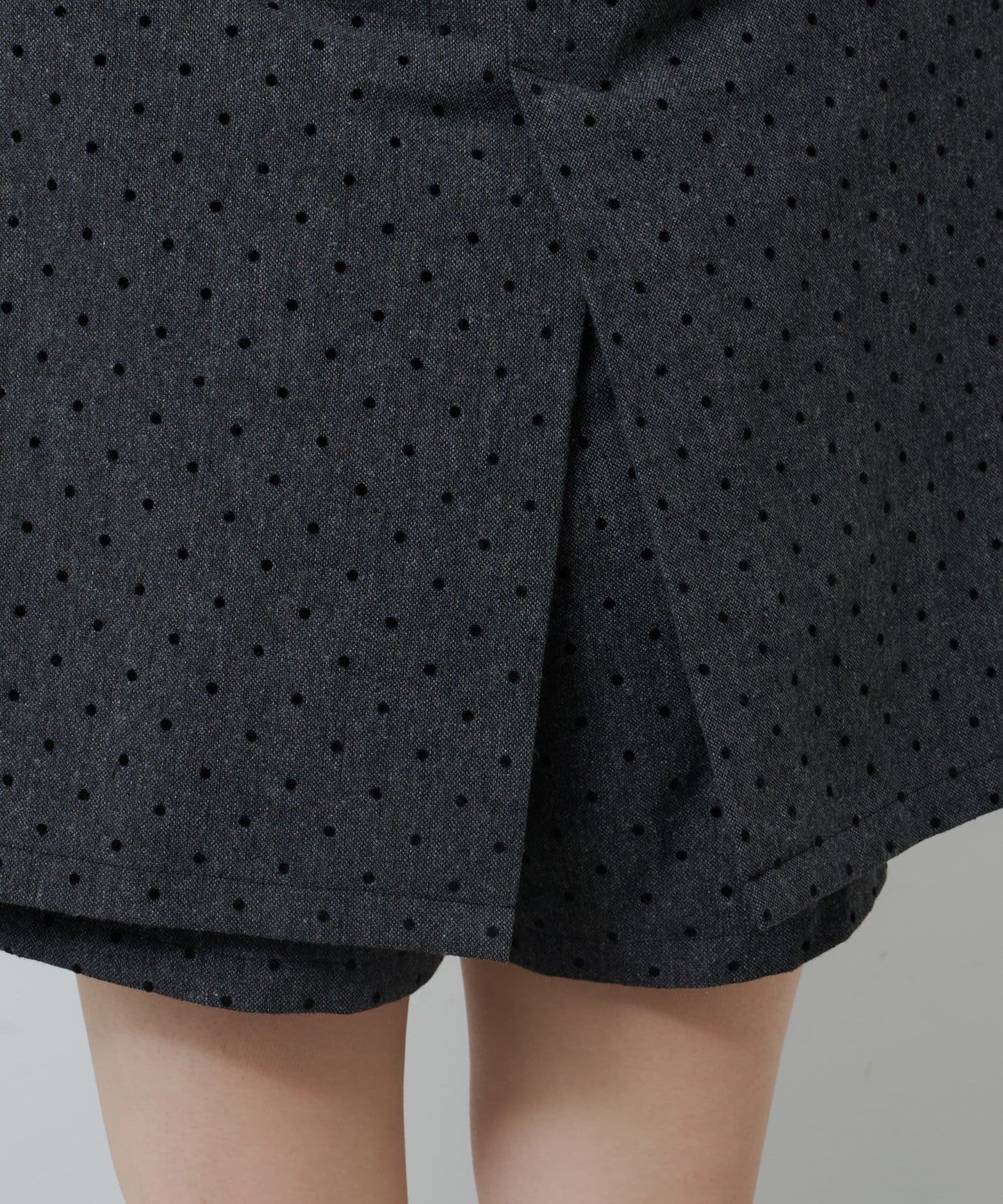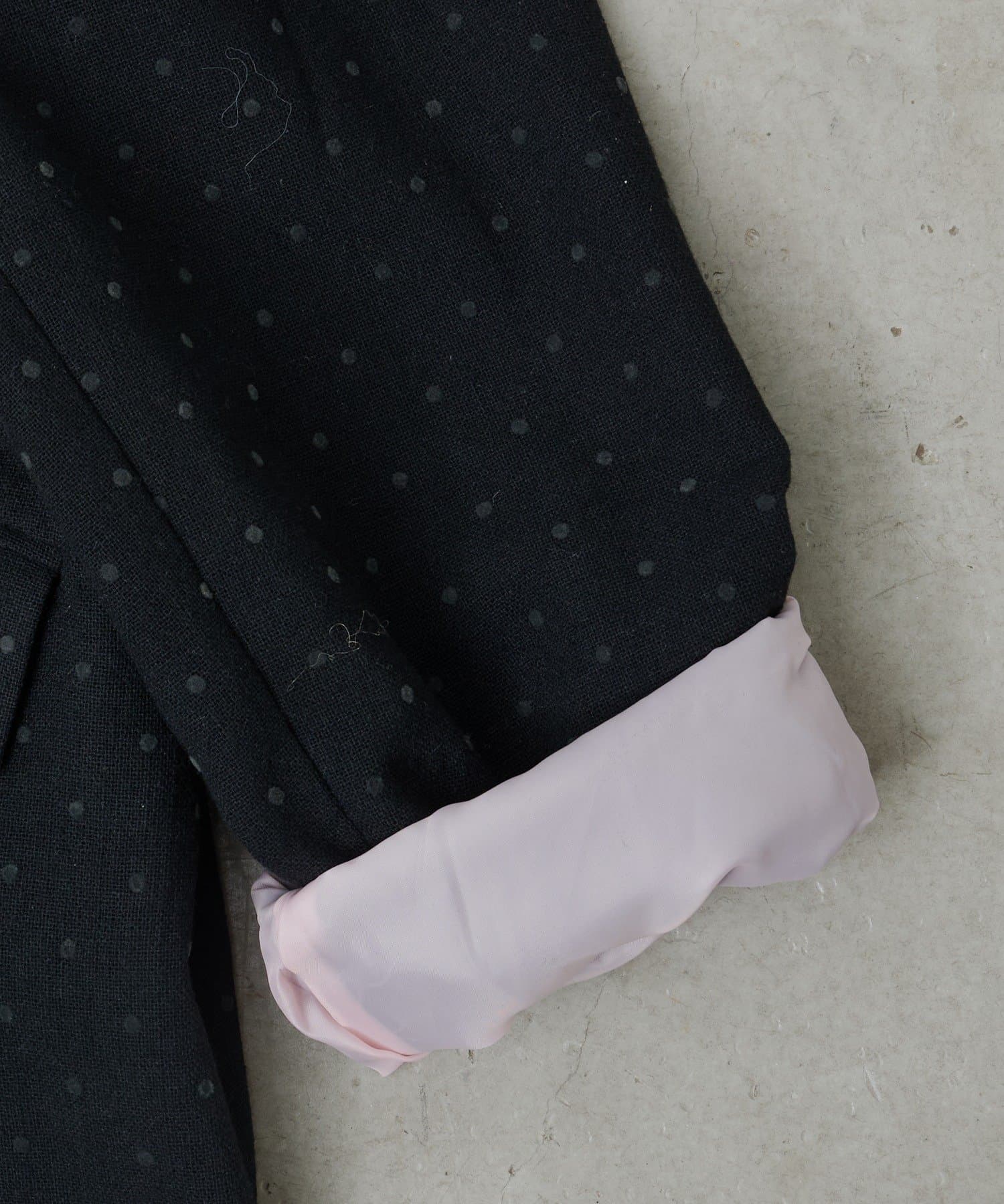 マニッシュなテーラードデザインながらも、ドット柄が女性らしい柔らかさをプラス。