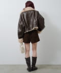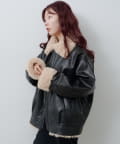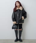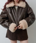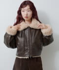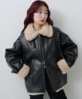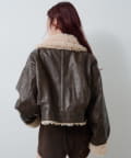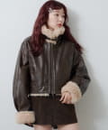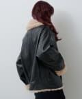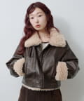 ボリュームのあるボア衿とレザー調素材の組み合わせが印象的なボアフライトジャケット。