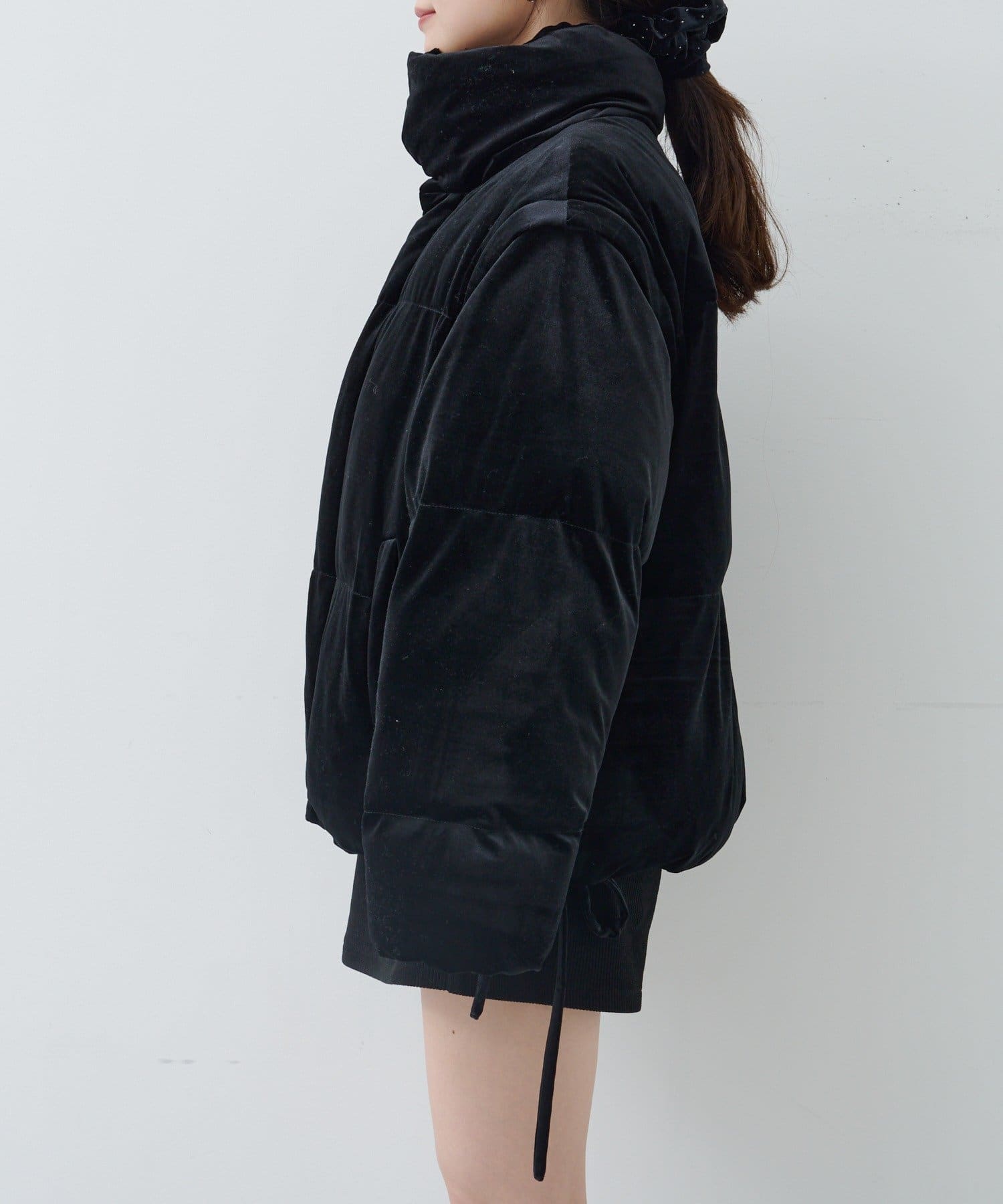 なめらかな光沢が魅力のベロア素材を使用した、上品かつトレンド感のあるパディングブルゾン。