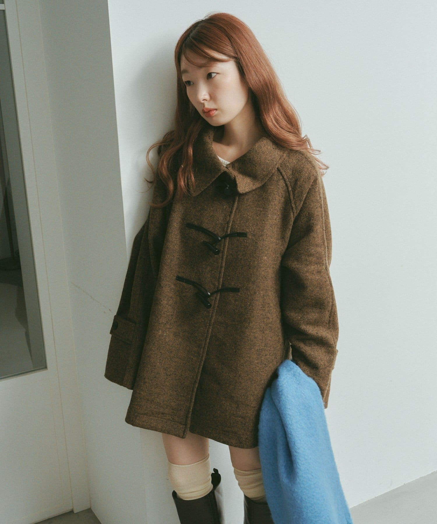 やわらかなAラインシルエットに落とし込んだダッフルフレアコート。