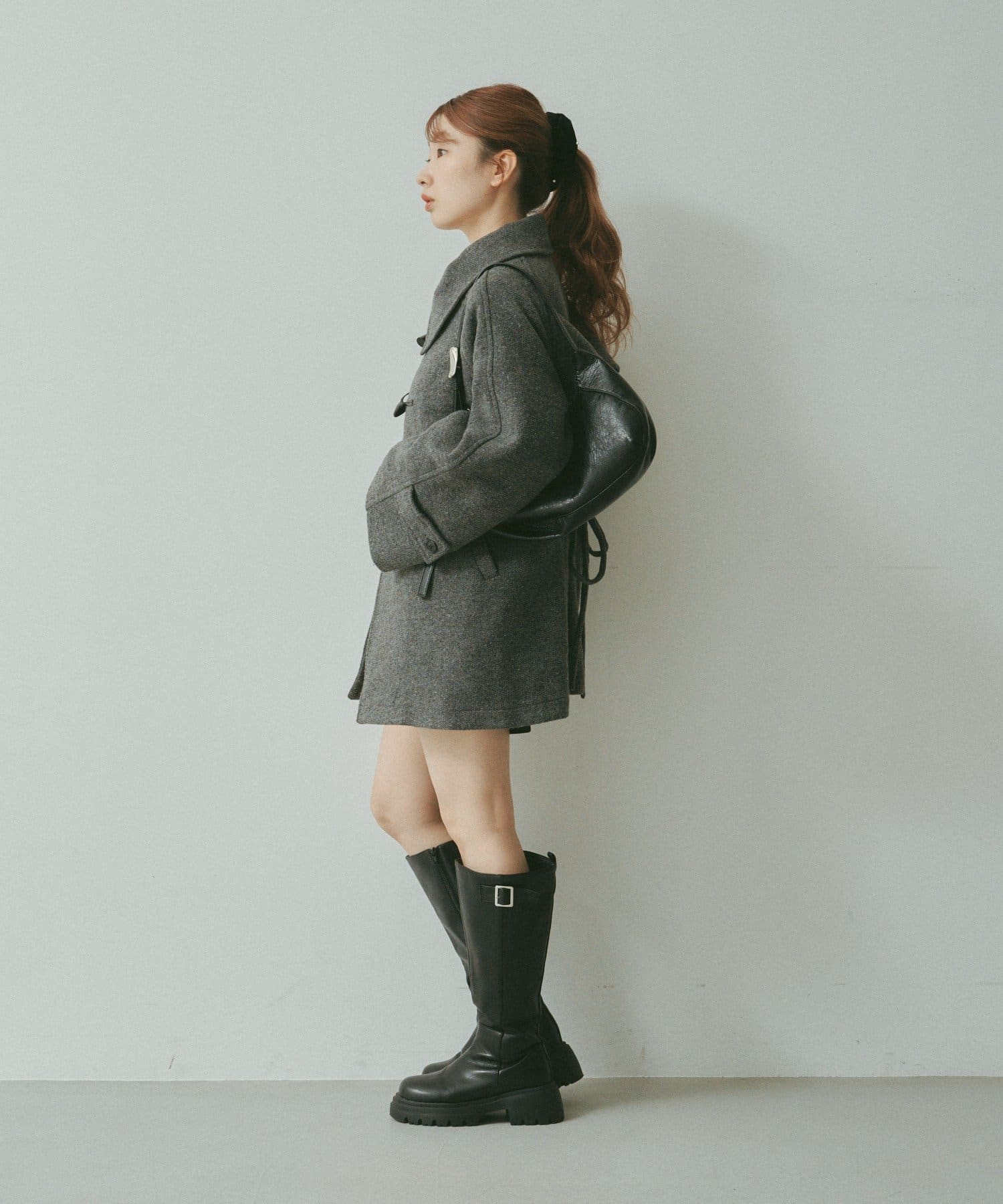 フロントのトグルボタンが、トラッドな表情を演出しつつ、ウール混のしっかりとした生地感であたたかさも抜群。