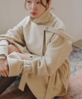 ふんわり広がるフレアシルエットが上品な印象を与えるハイネックコート。