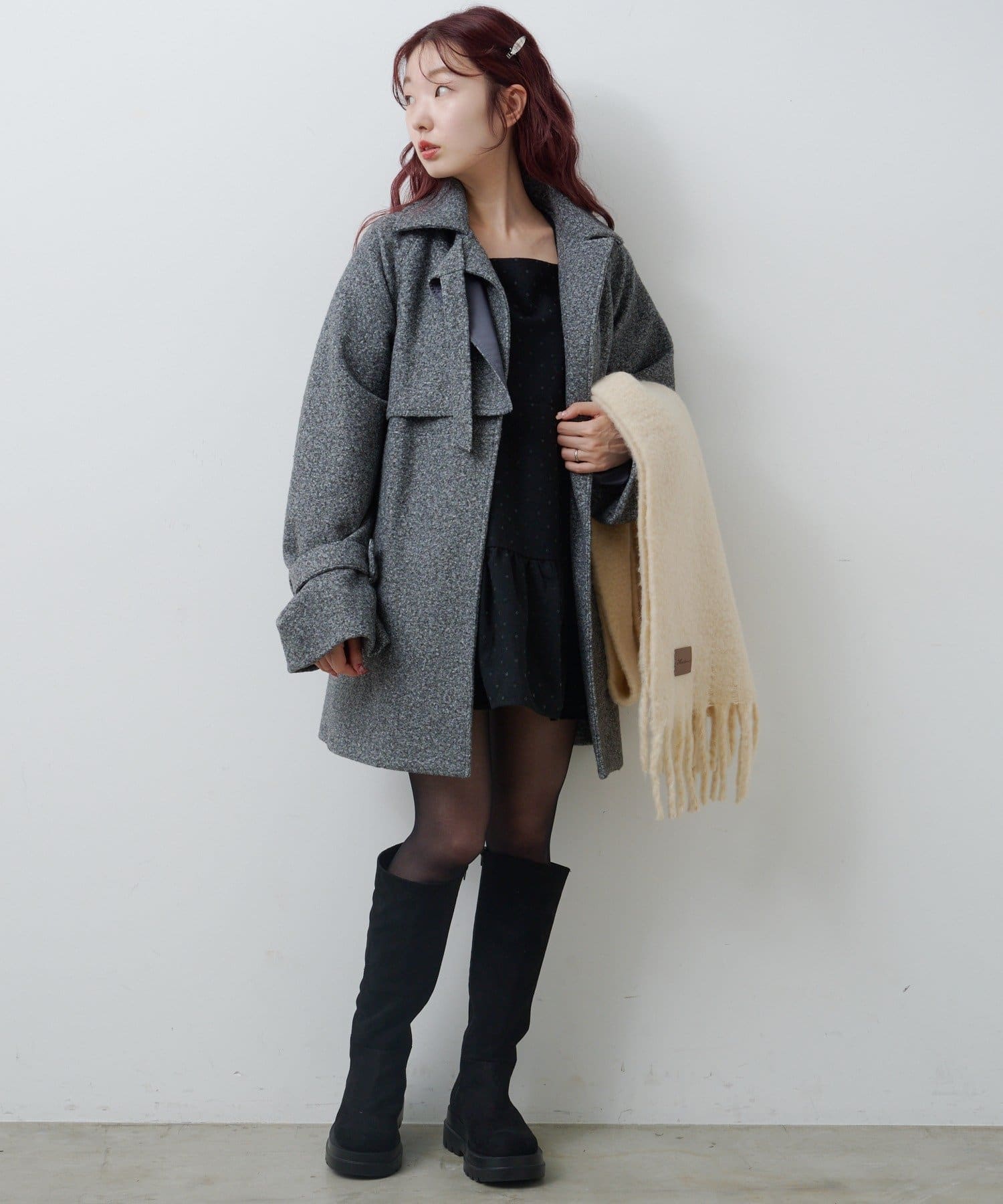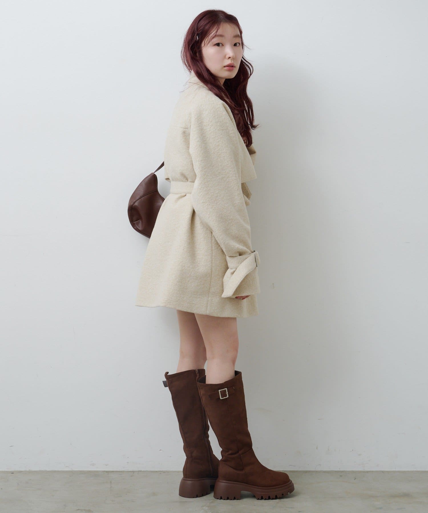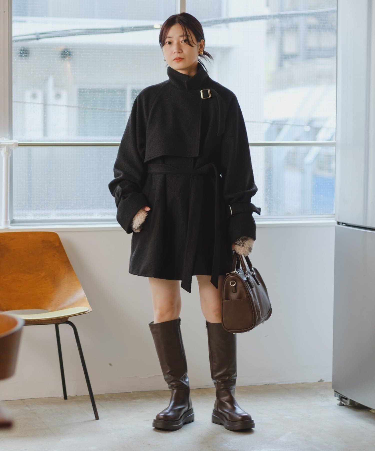 ミニボトム×ロングブーツでトレンド感あるスタイルに。