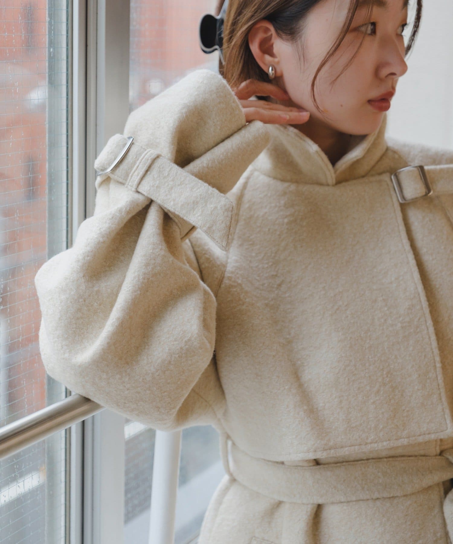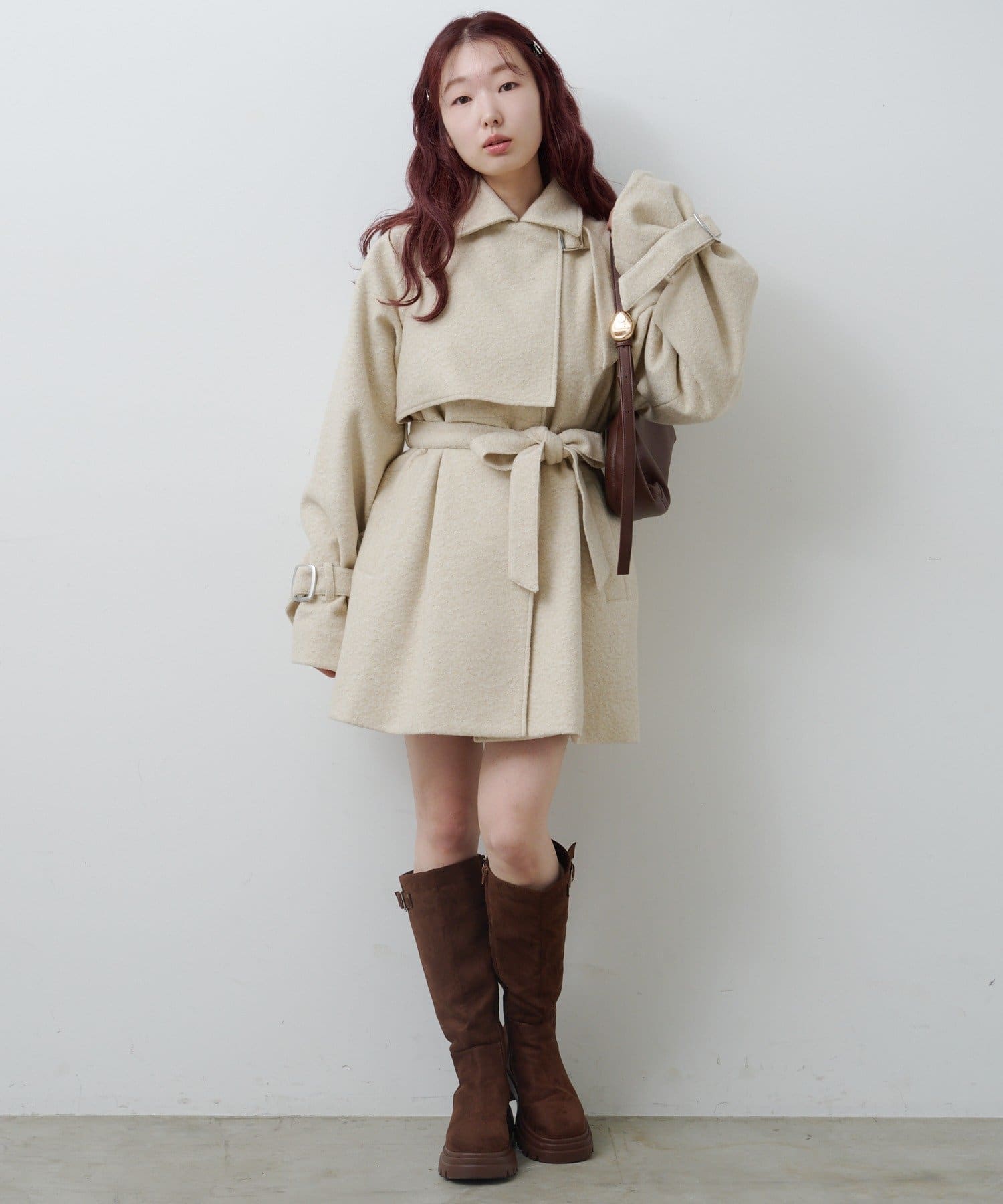 ウエストベルトでシルエットにメリハリをつけ、スタイルアップ効果も抜群。