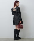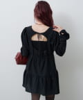 ふんわり袖と切り替えフレアシルエットで女性らしさを引き立てます。