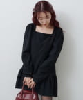 すっきりとしたスクエアネックがデコルテを美しく見せ、