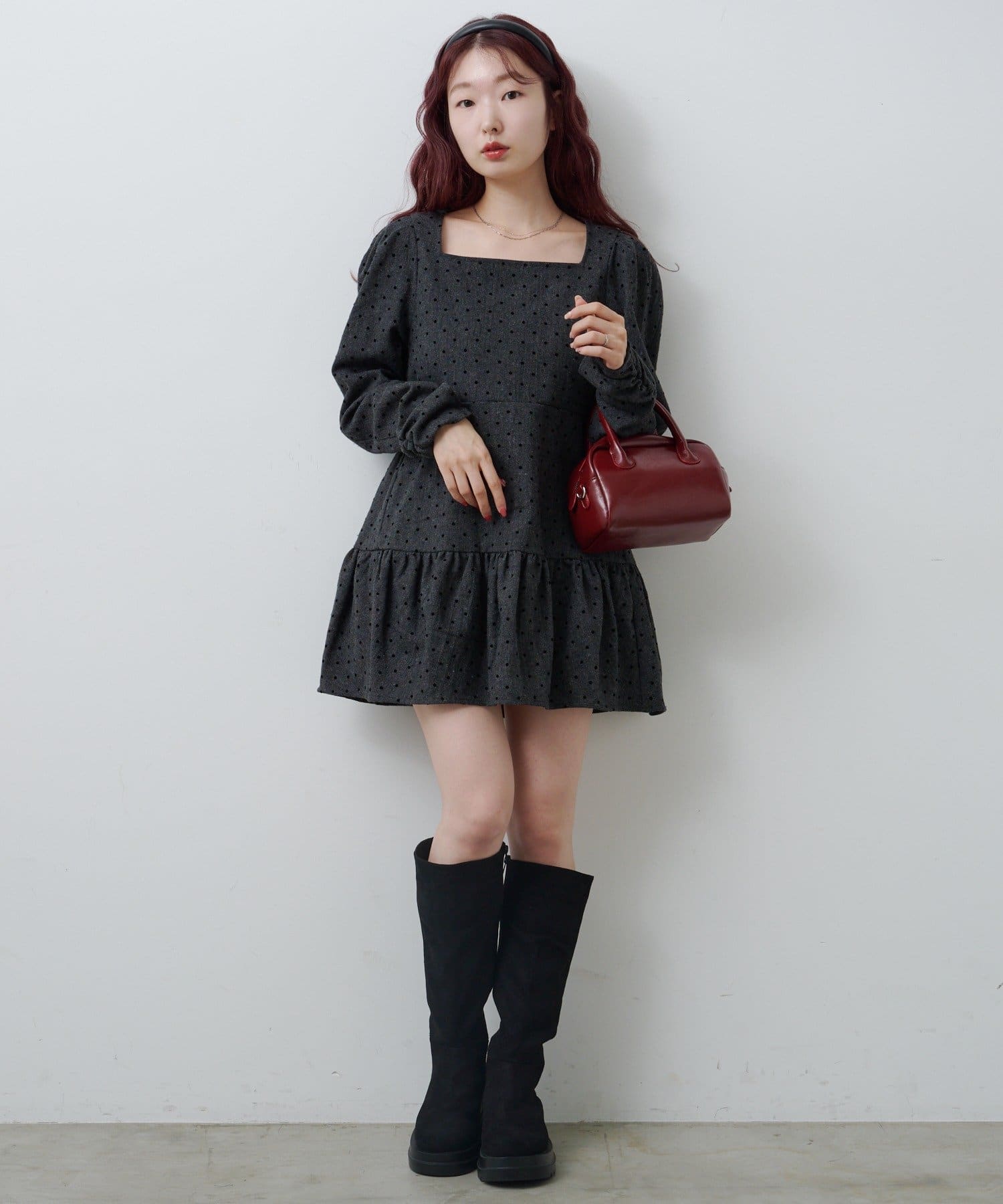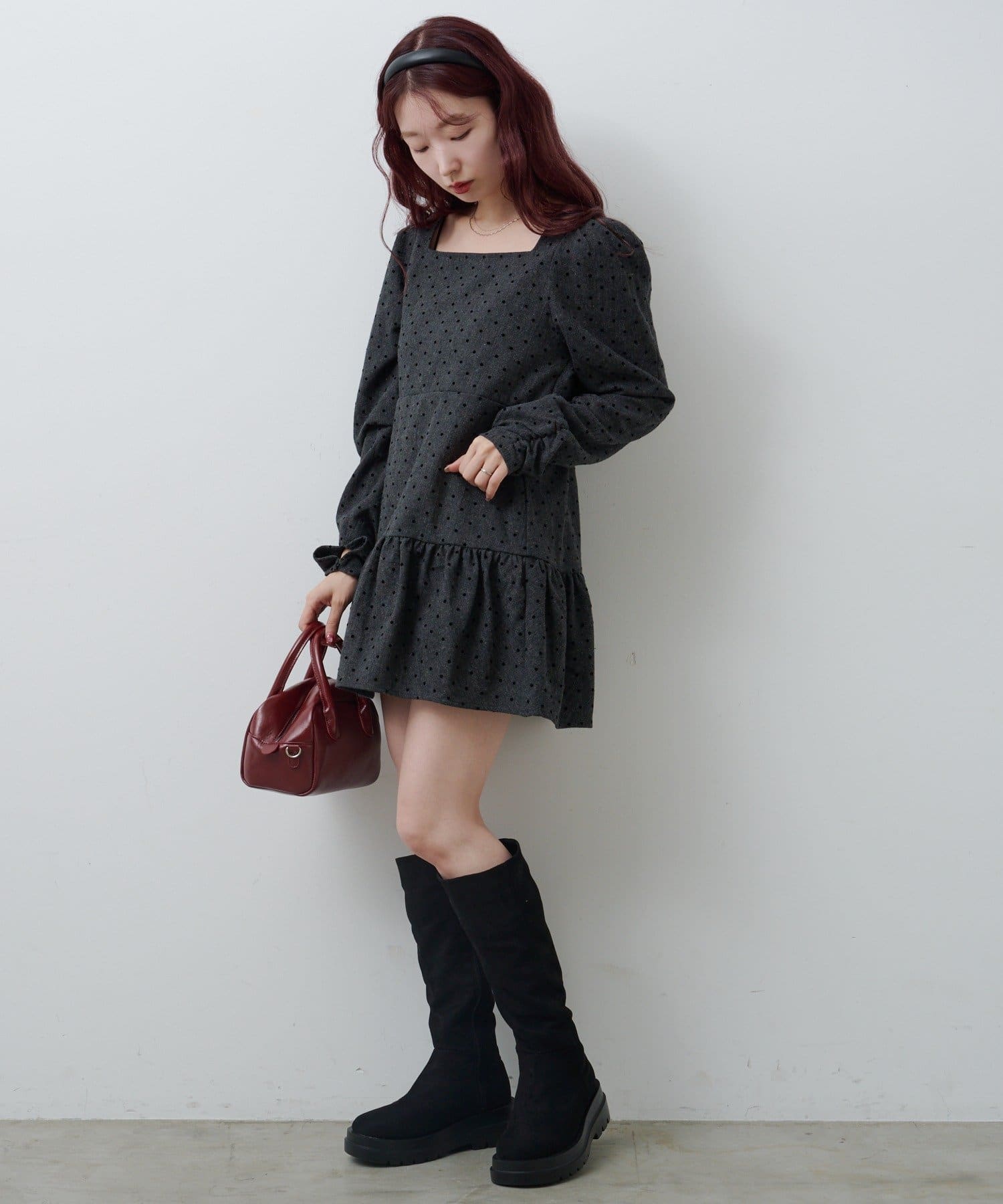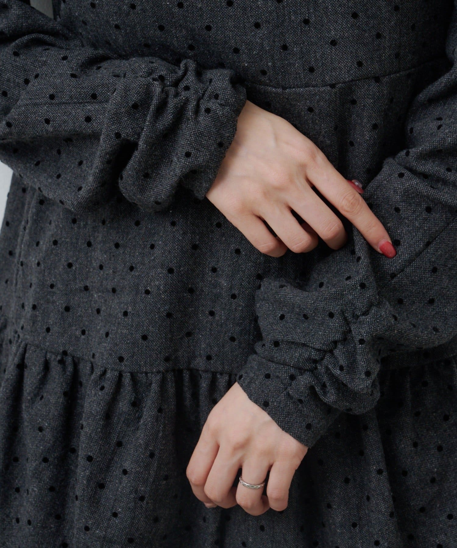 クラシカルムード高まる大人かわいいドットツイードワンピース