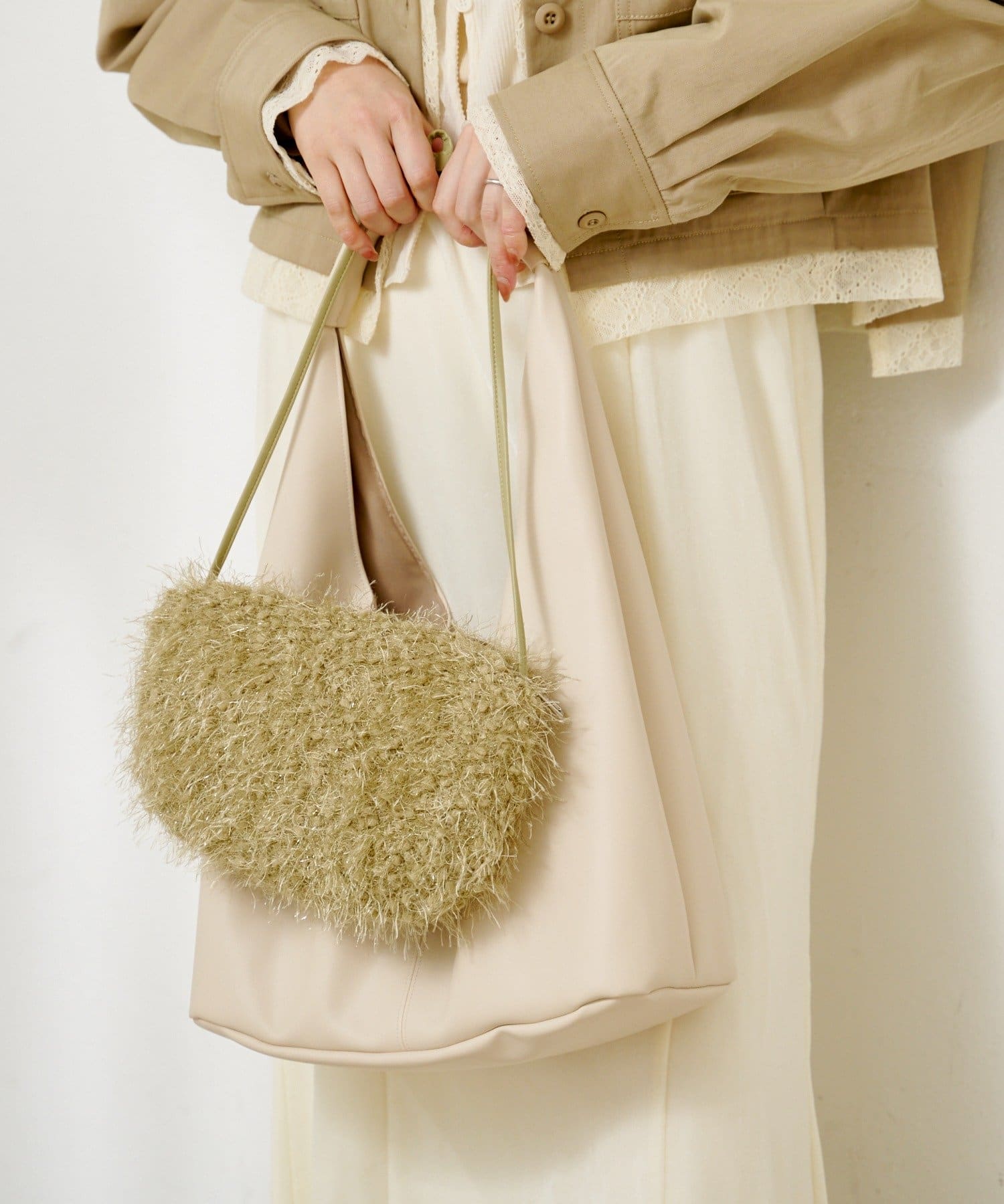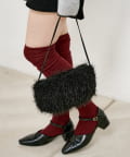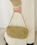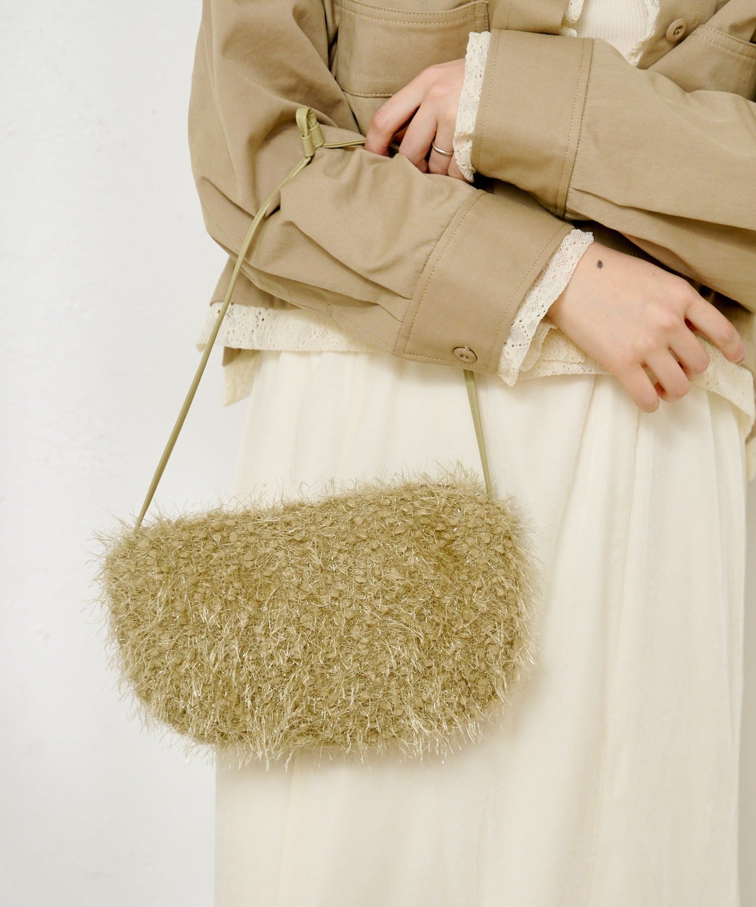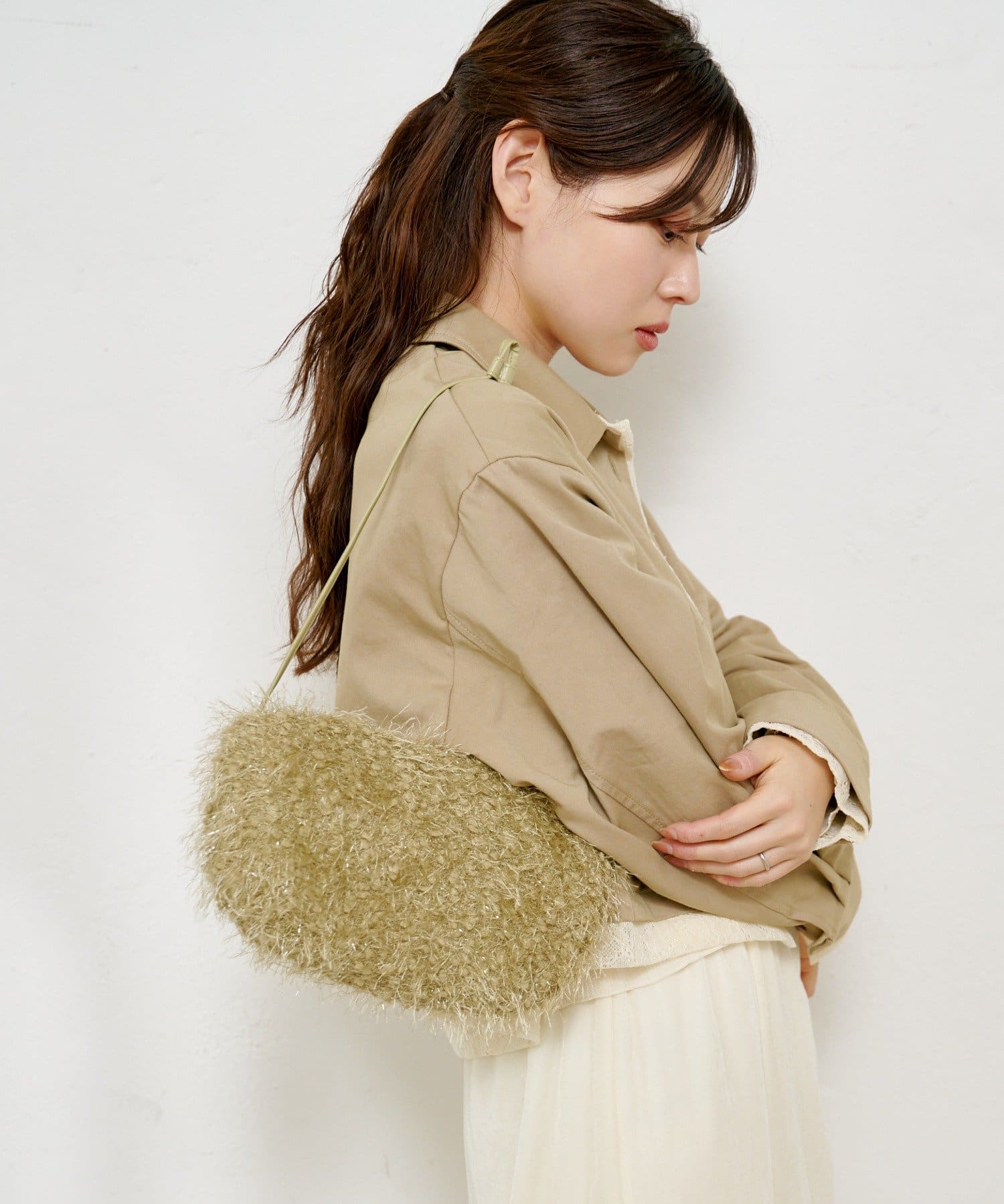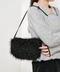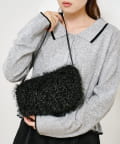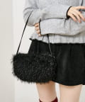 ふわっとしたシャギー素材のミニバッグは、コーデに抜け感をプラス。