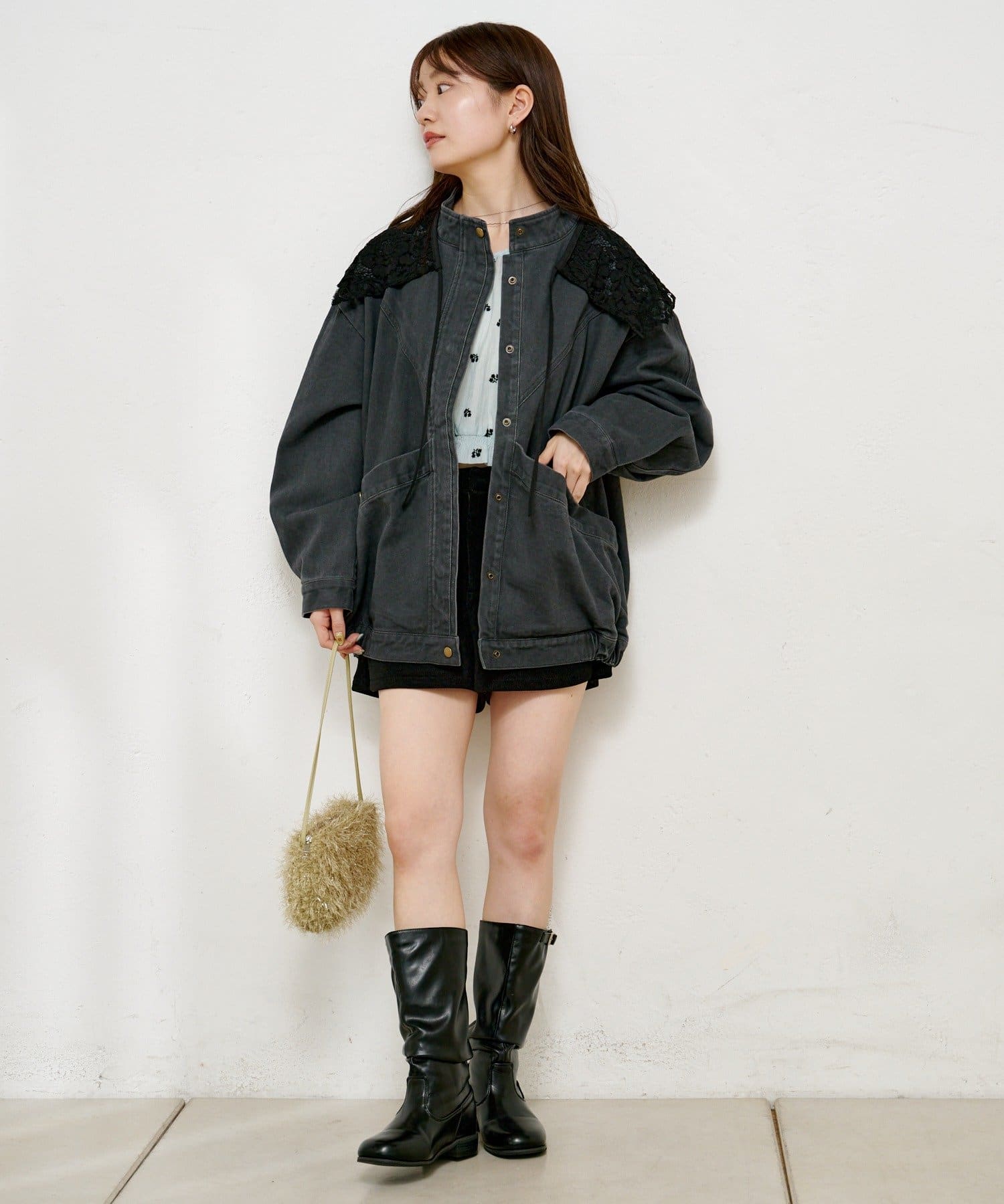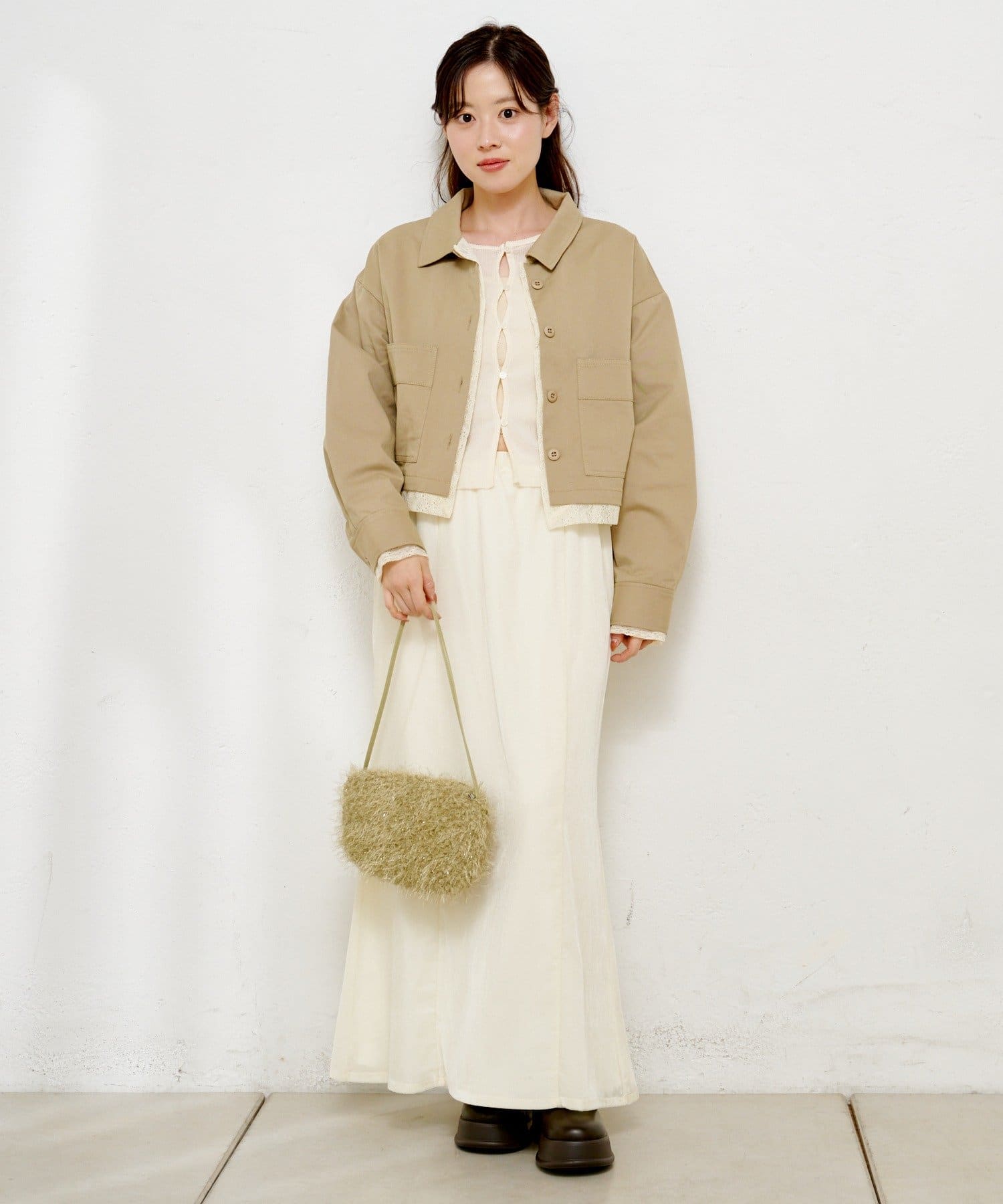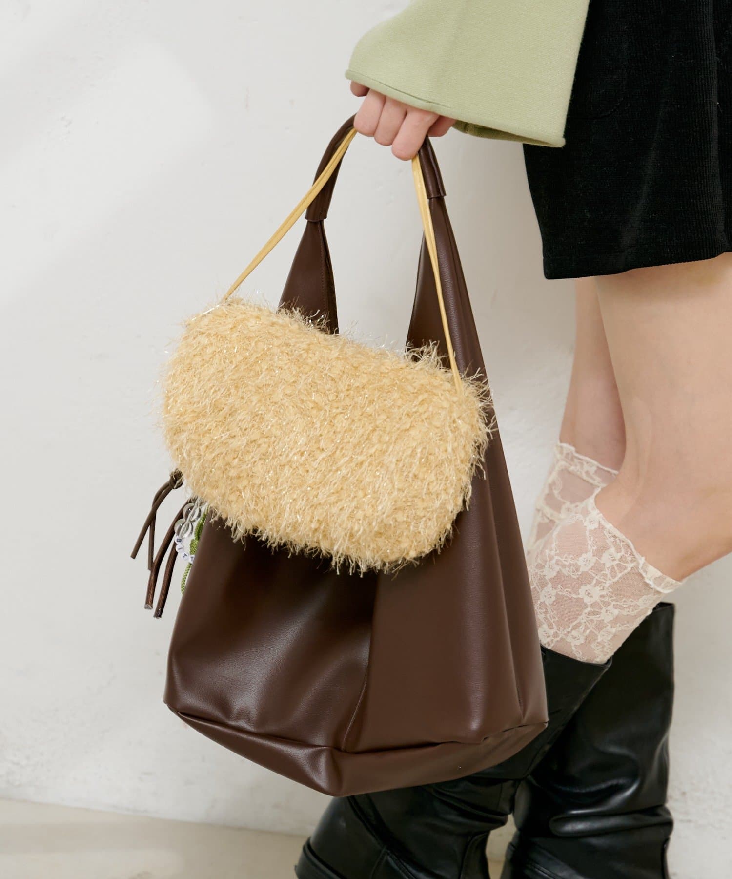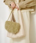 ふわっとしたシャギー素材のミニバッグは、コーデに抜け感をプラス。