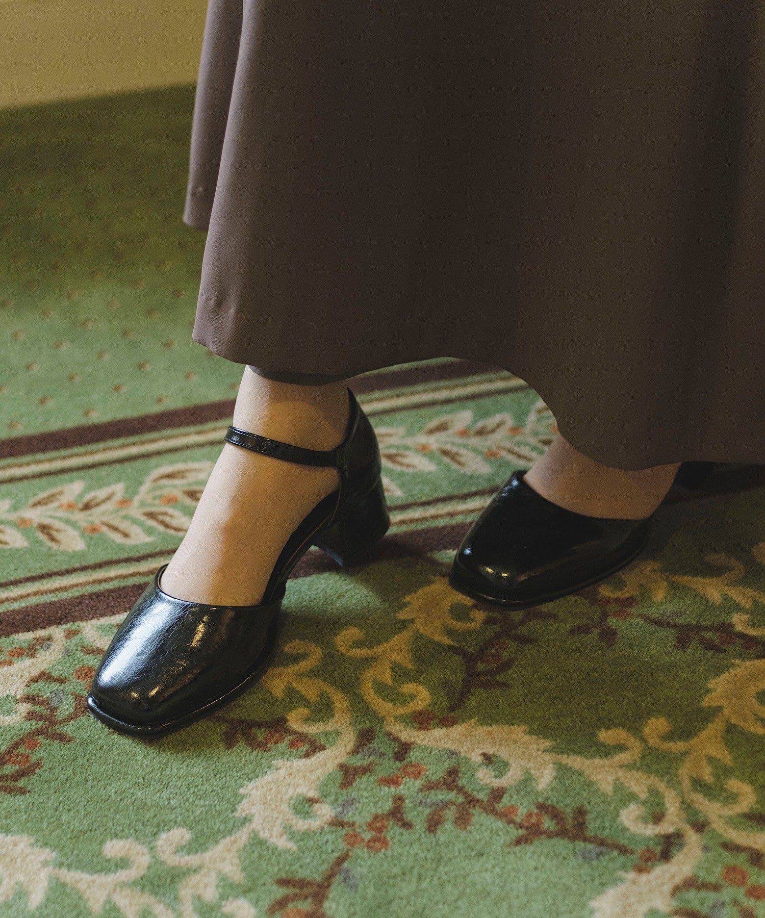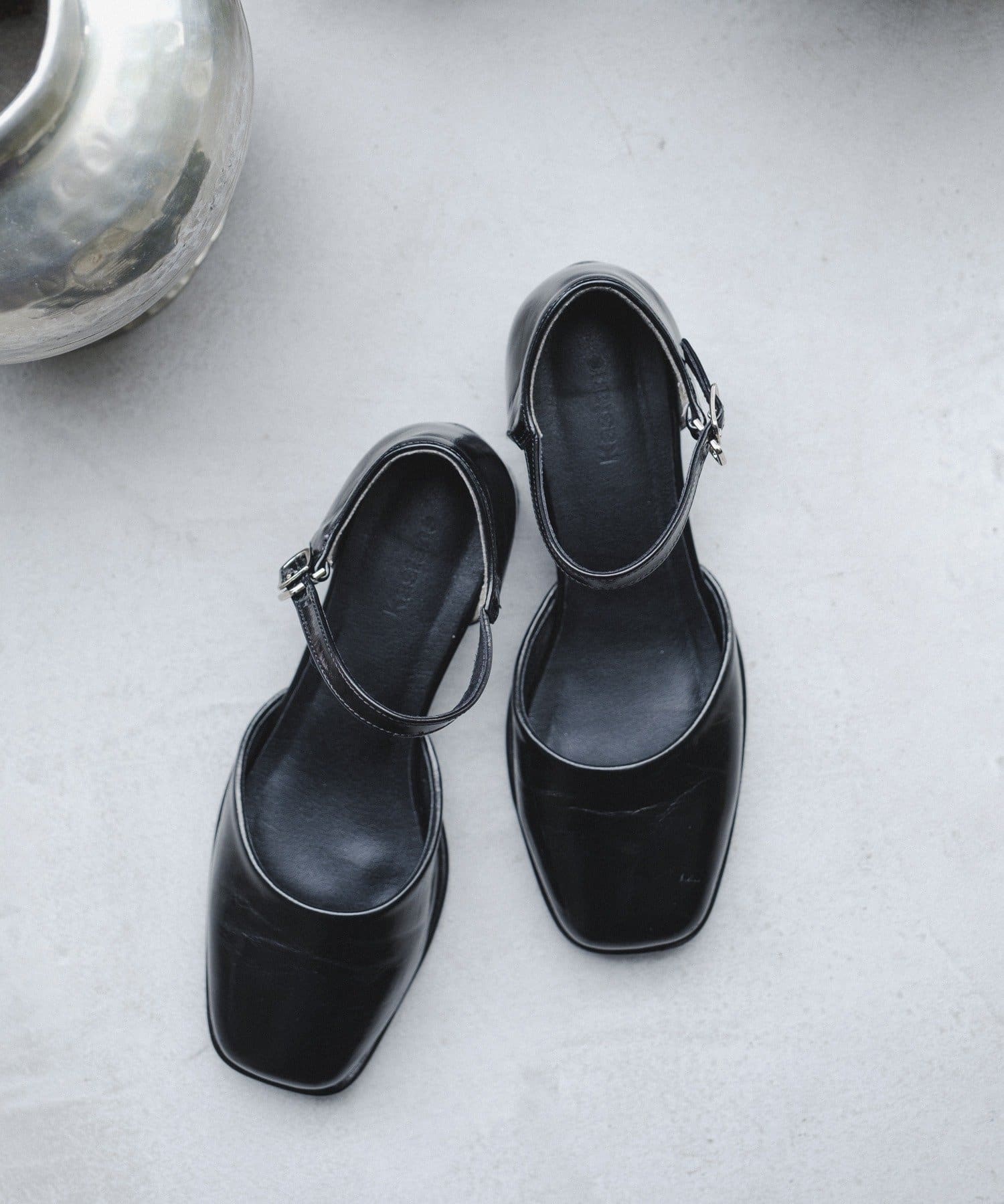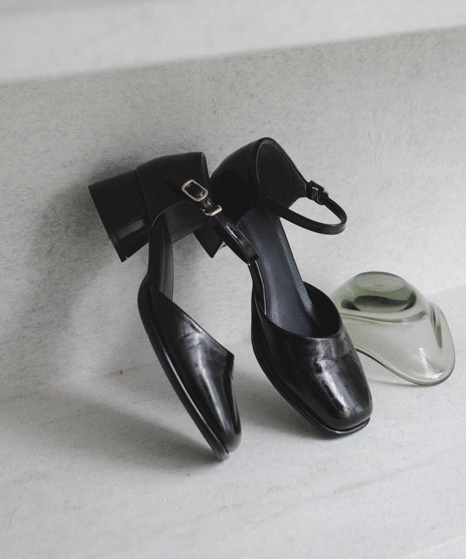 エナメルのツヤっとした感じがカジュアルに上品さをプラスしてくれます。黒は万能で使いやすいし、女っぽさプラスしてくれます。