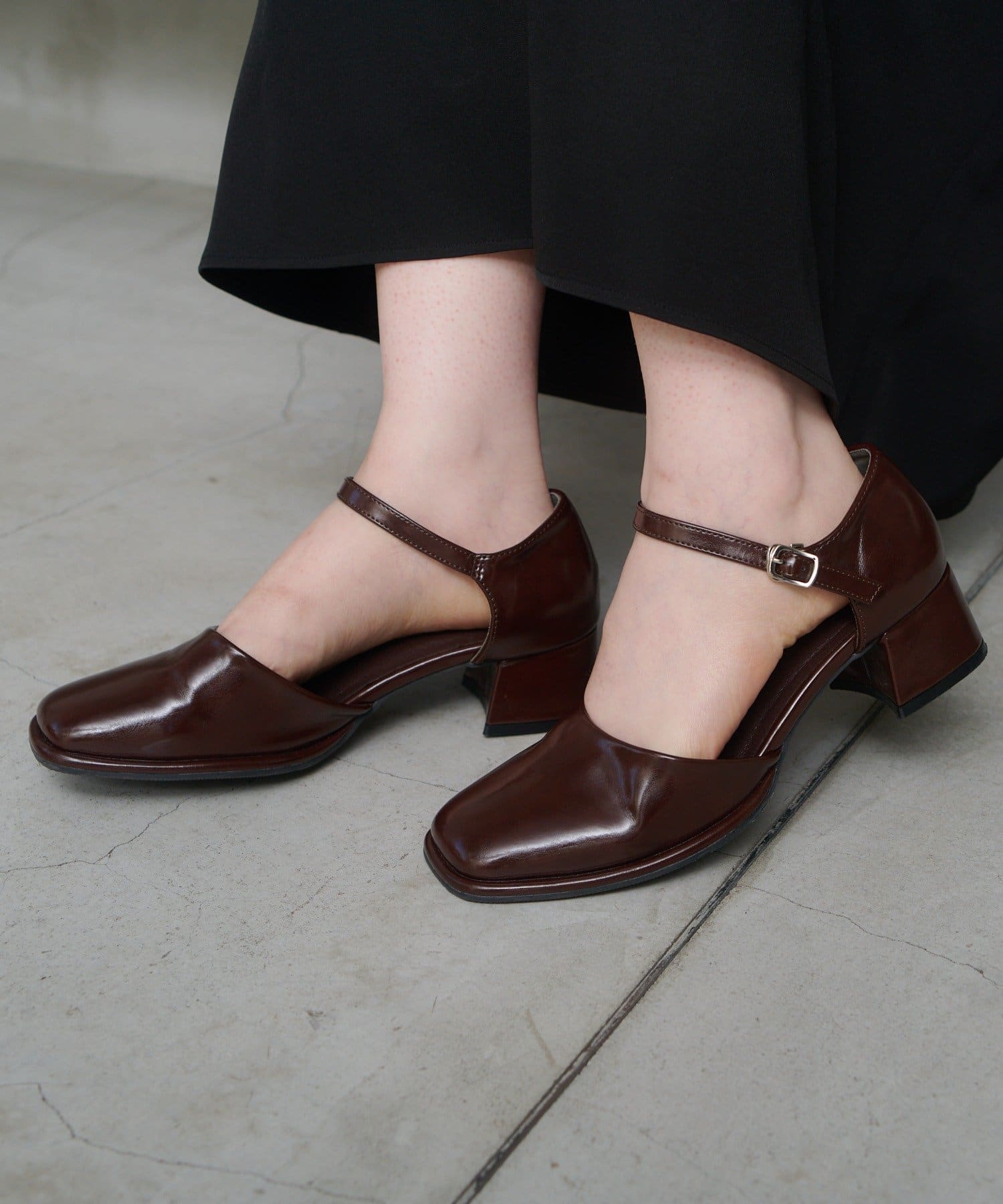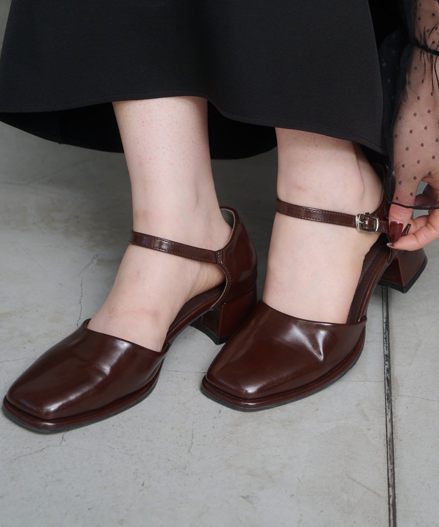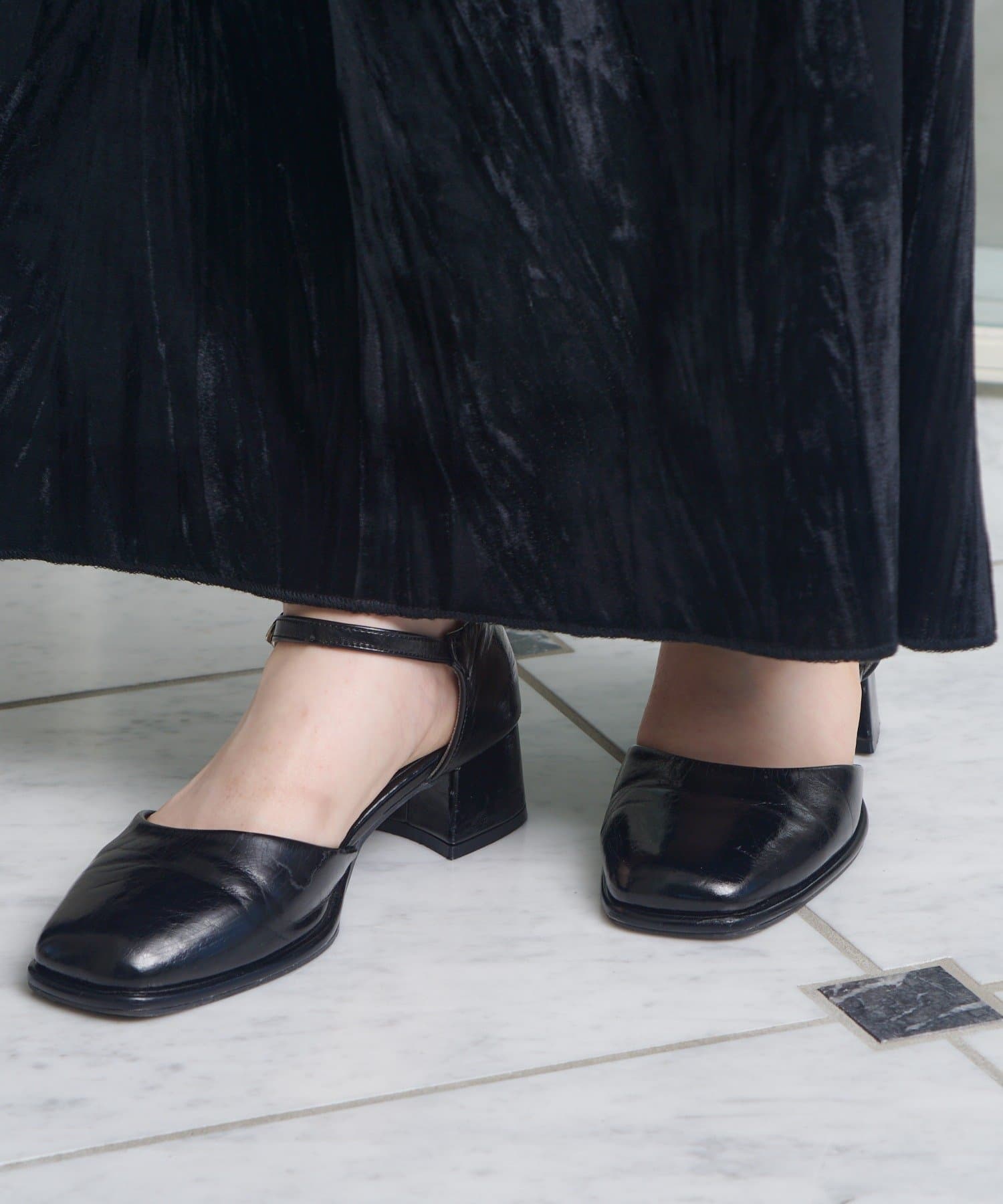 【10.25(土)12:00発売/オケージョン対応】スクエアストラップパンプス