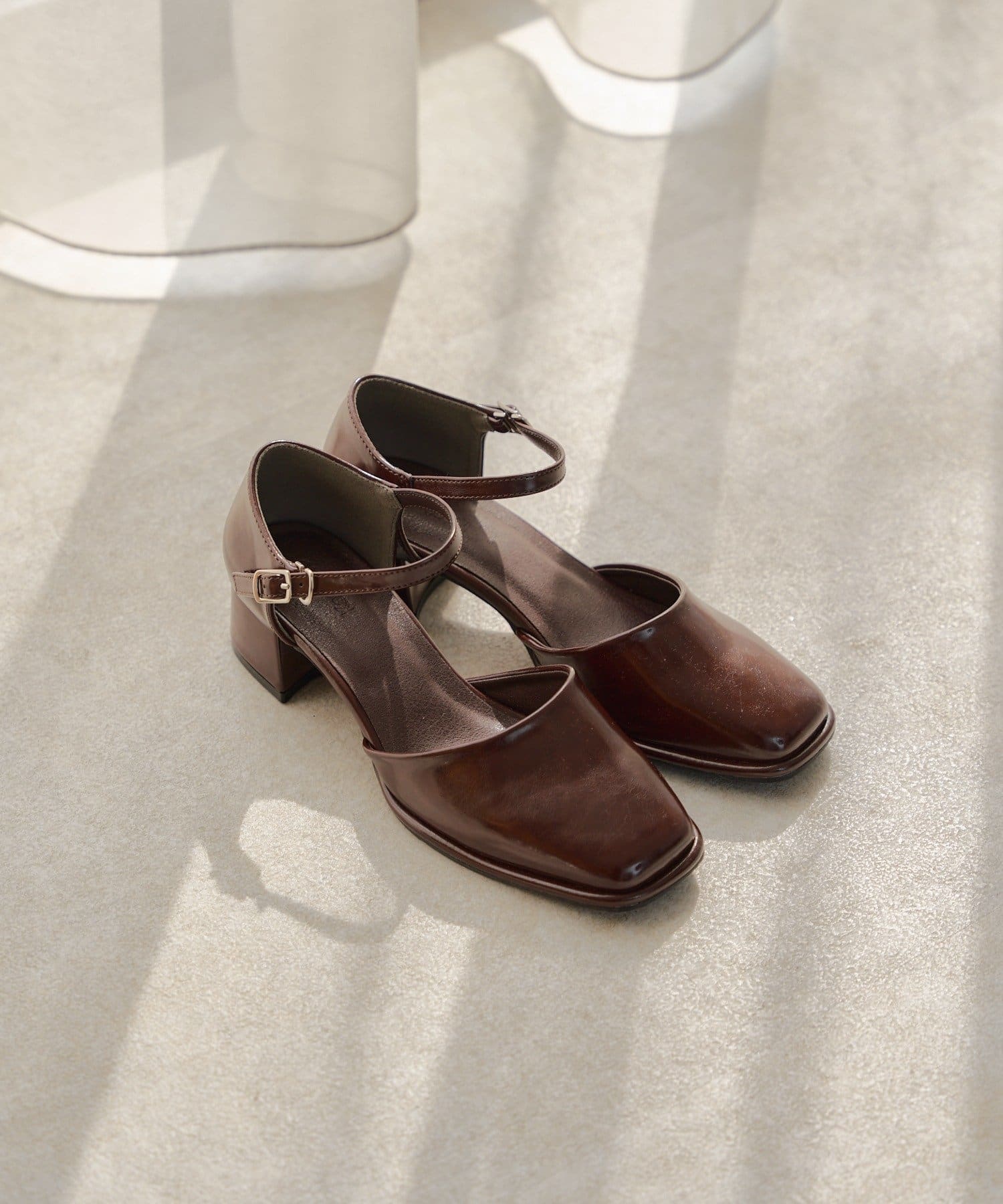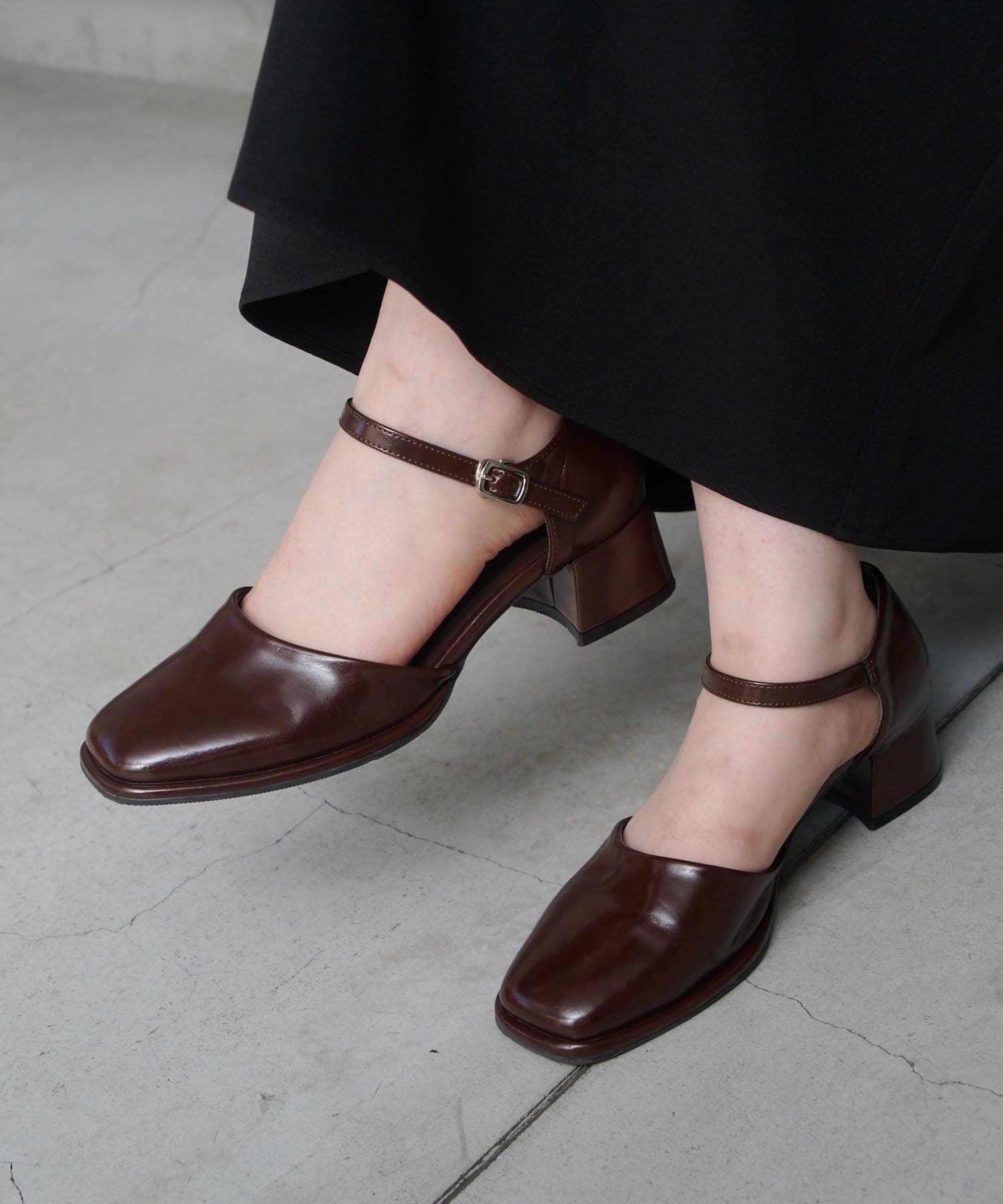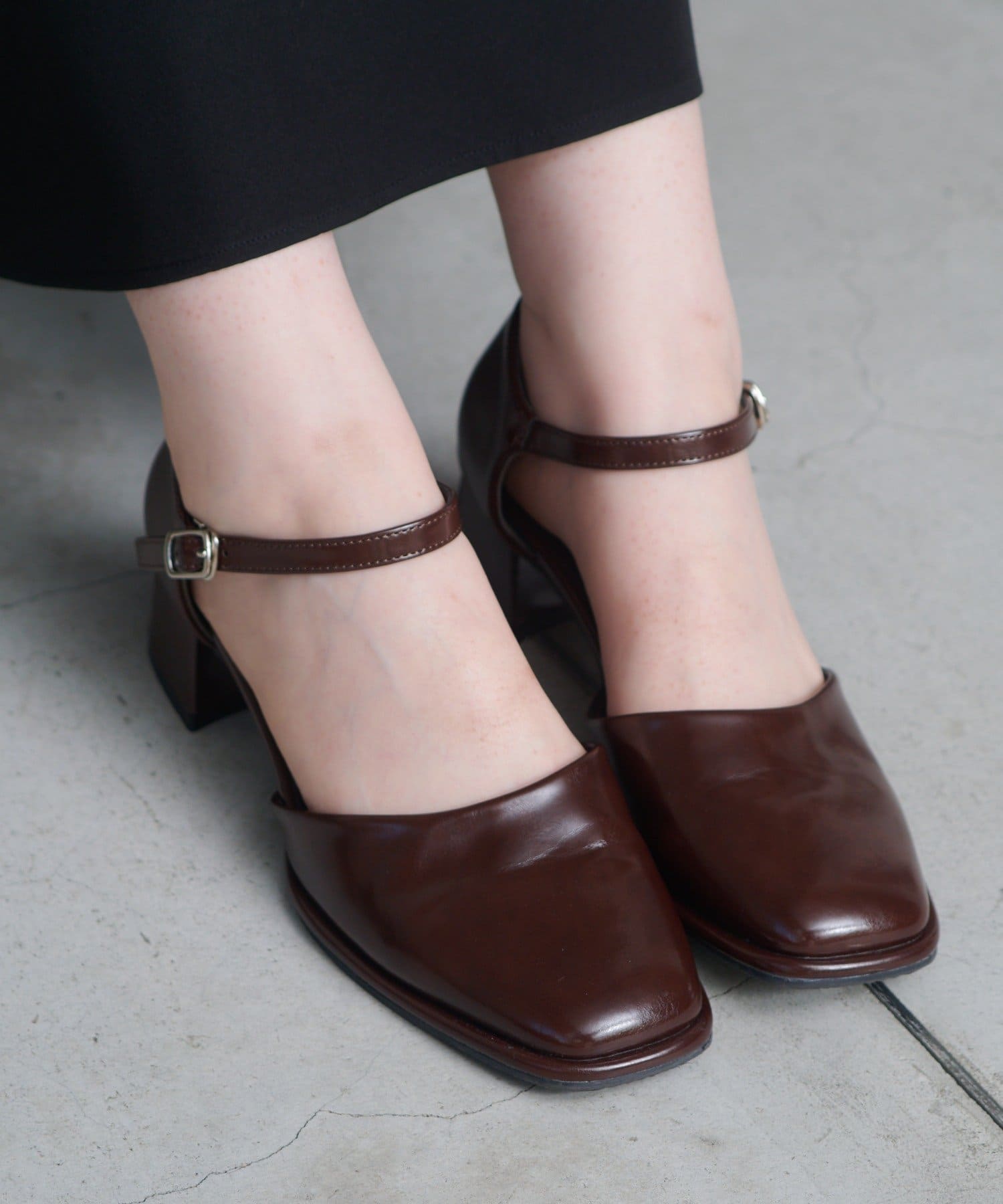 スクエアトゥと華奢なストラップが高見えするパンプスが登場。