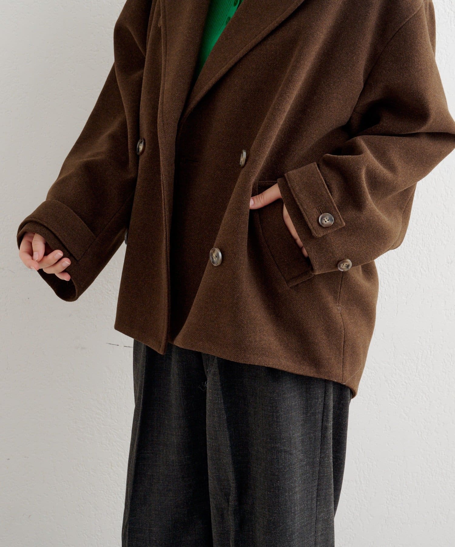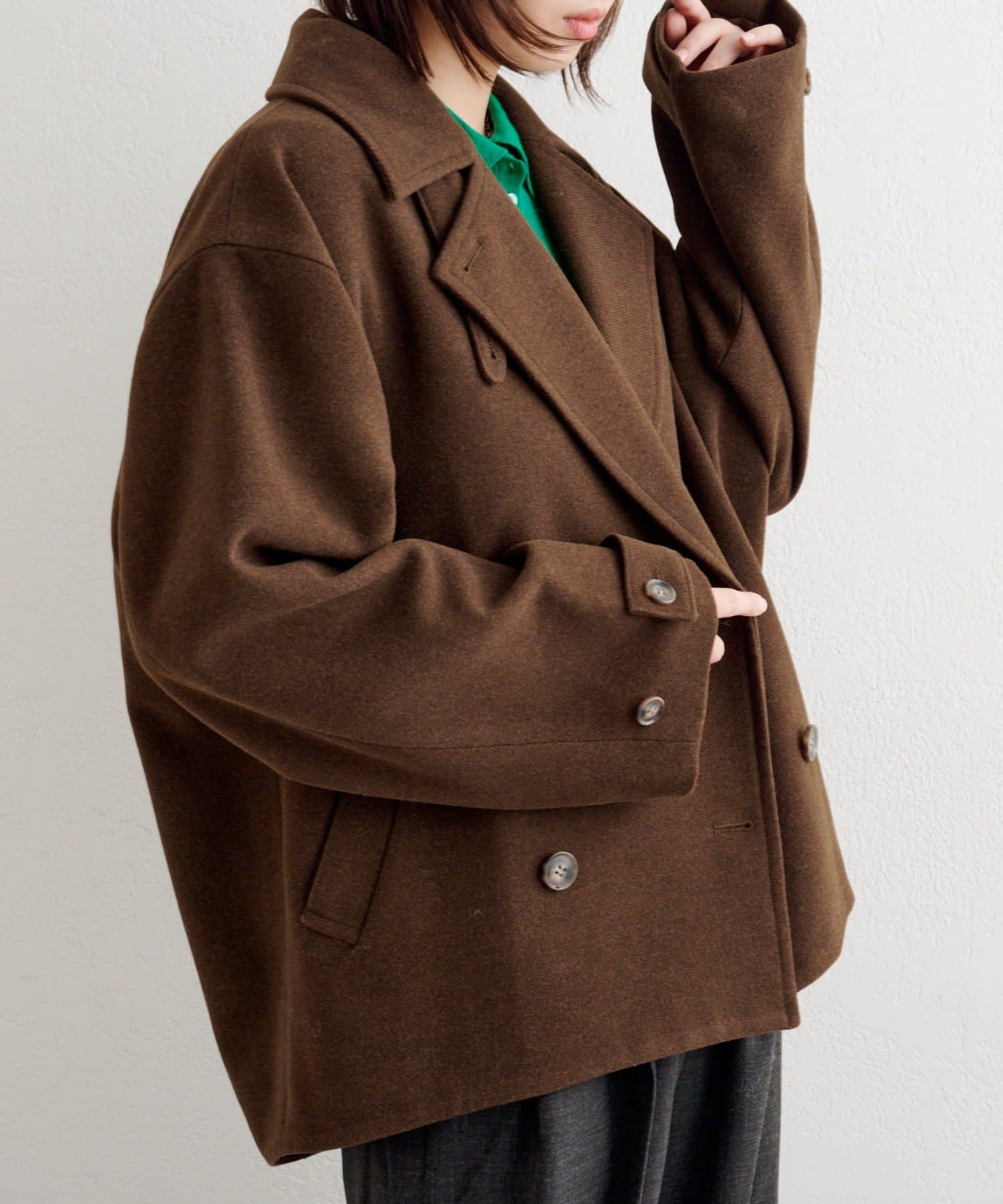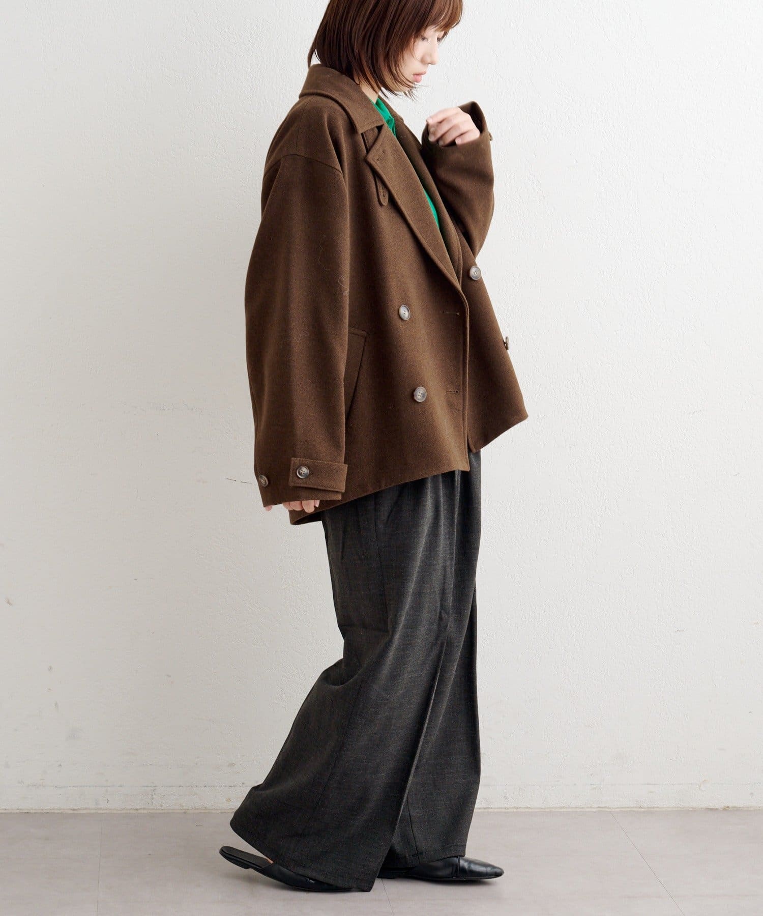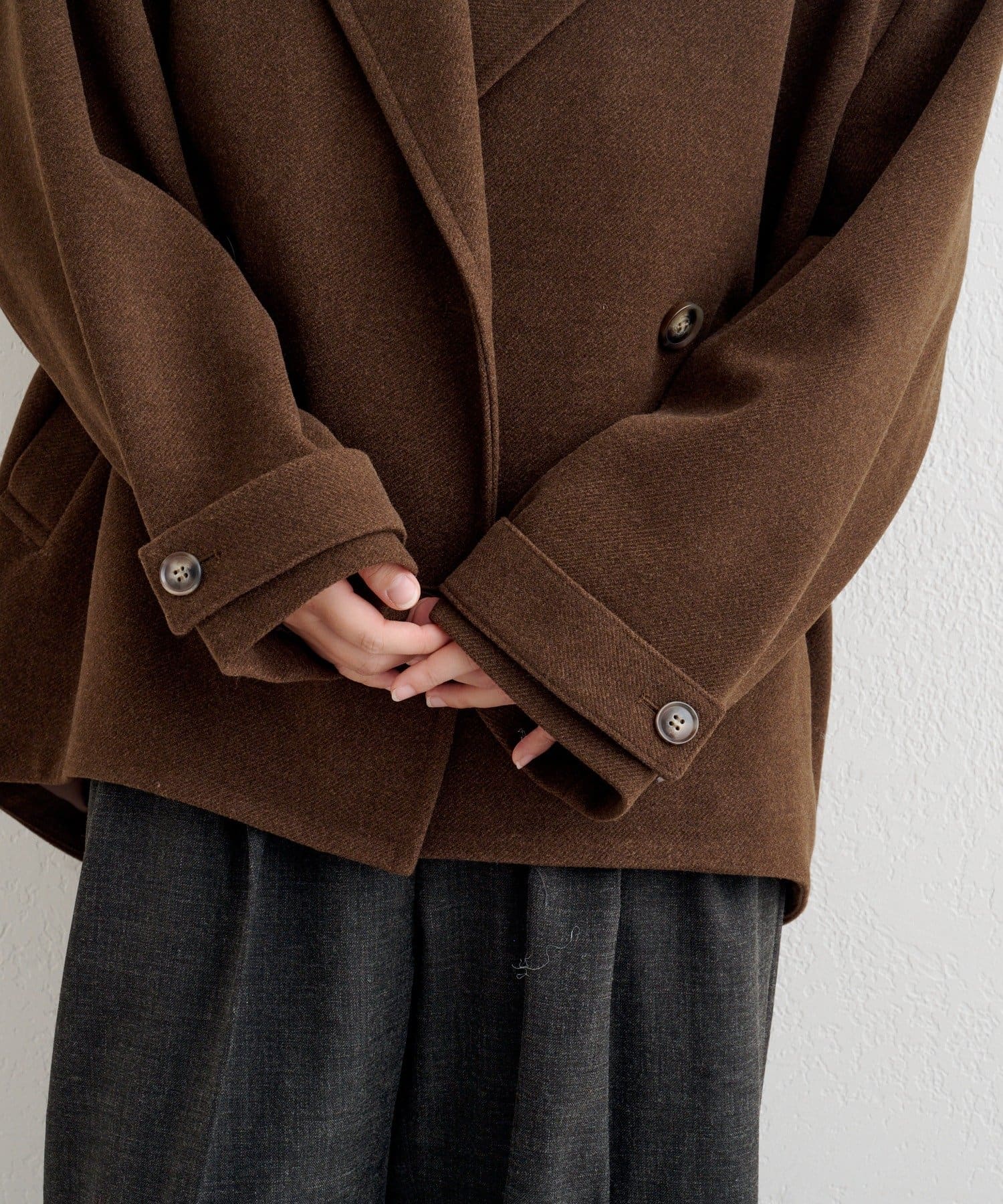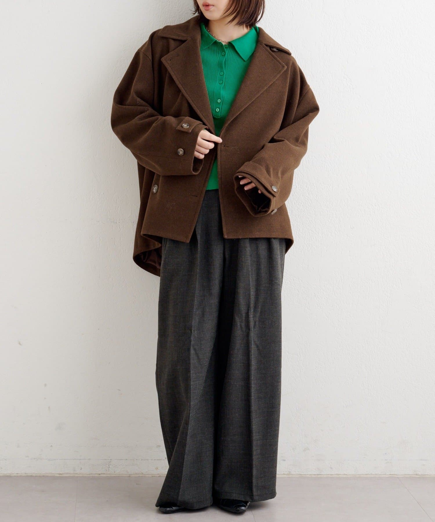 衿を立てても着映える、こなれコクーンジャケット