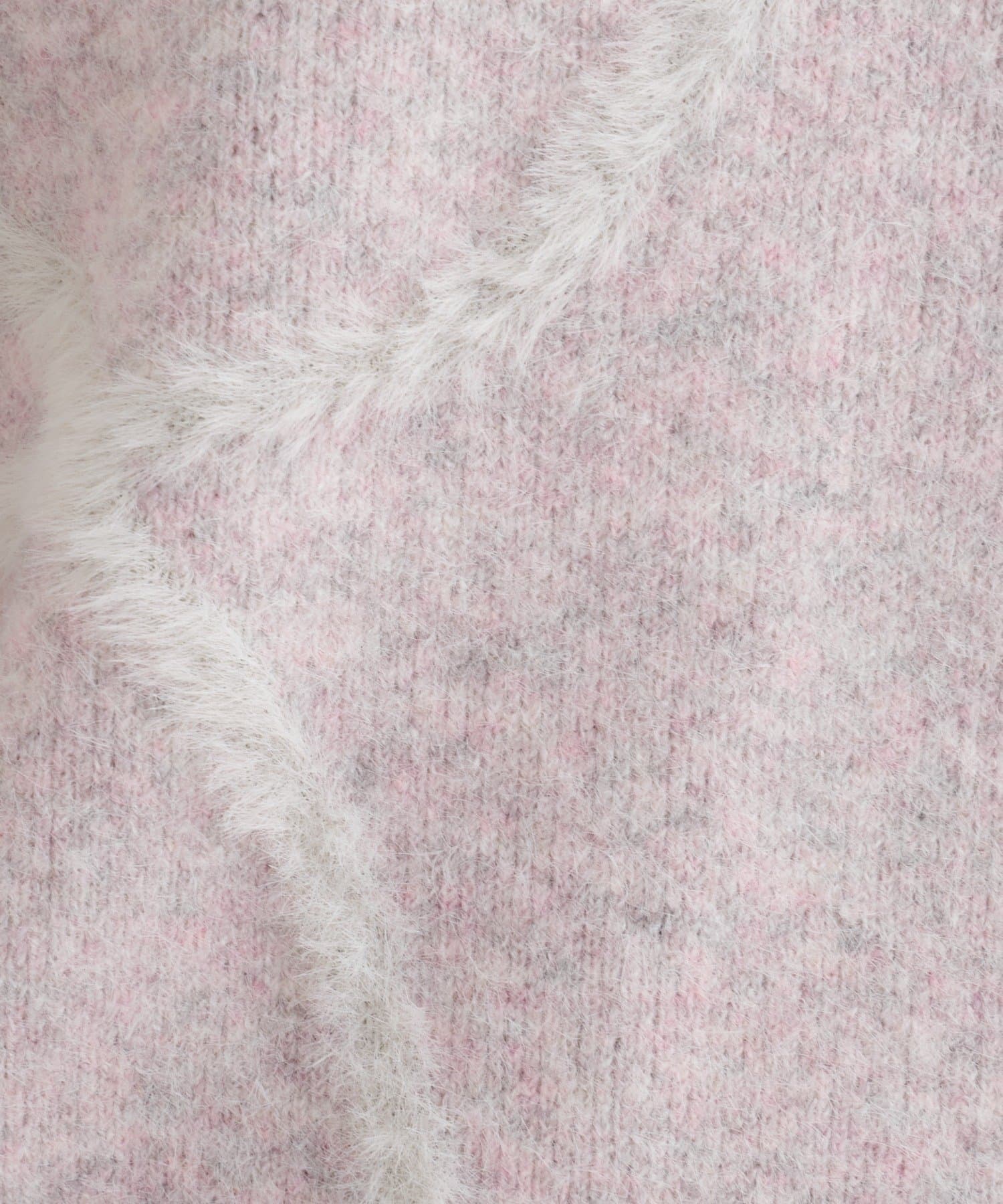 ざっくりとした編地に、異素材の毛足ラインを走らせることで、シンプルすぎない存在感のある一枚に仕上がっています。