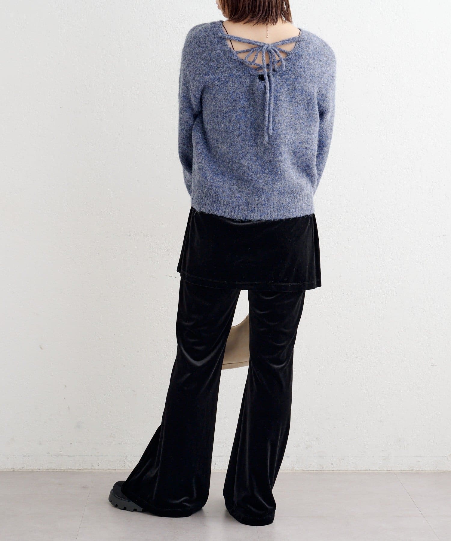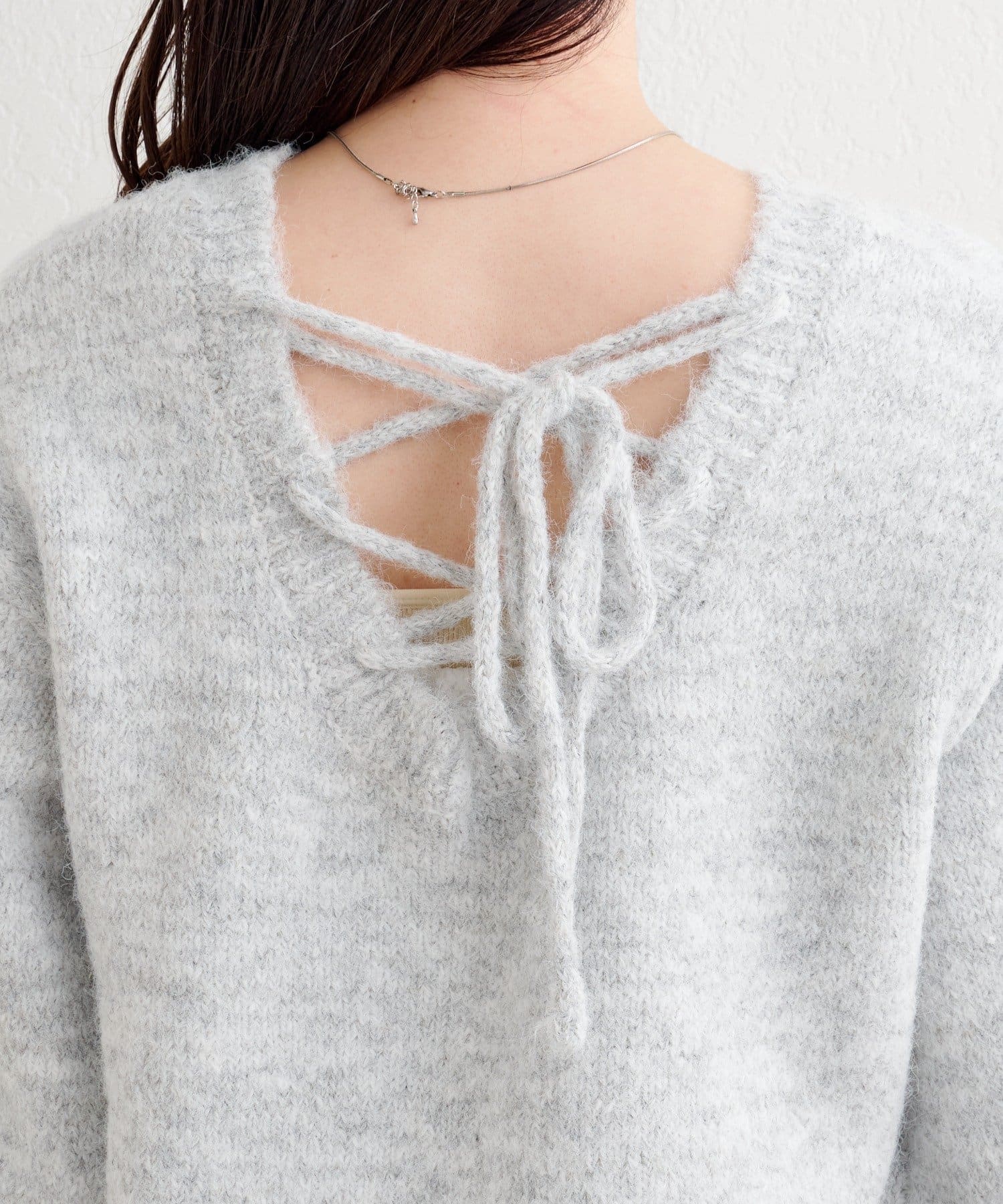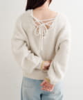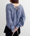 背中のレースアップデザインが印象的なニットプルオーバー。