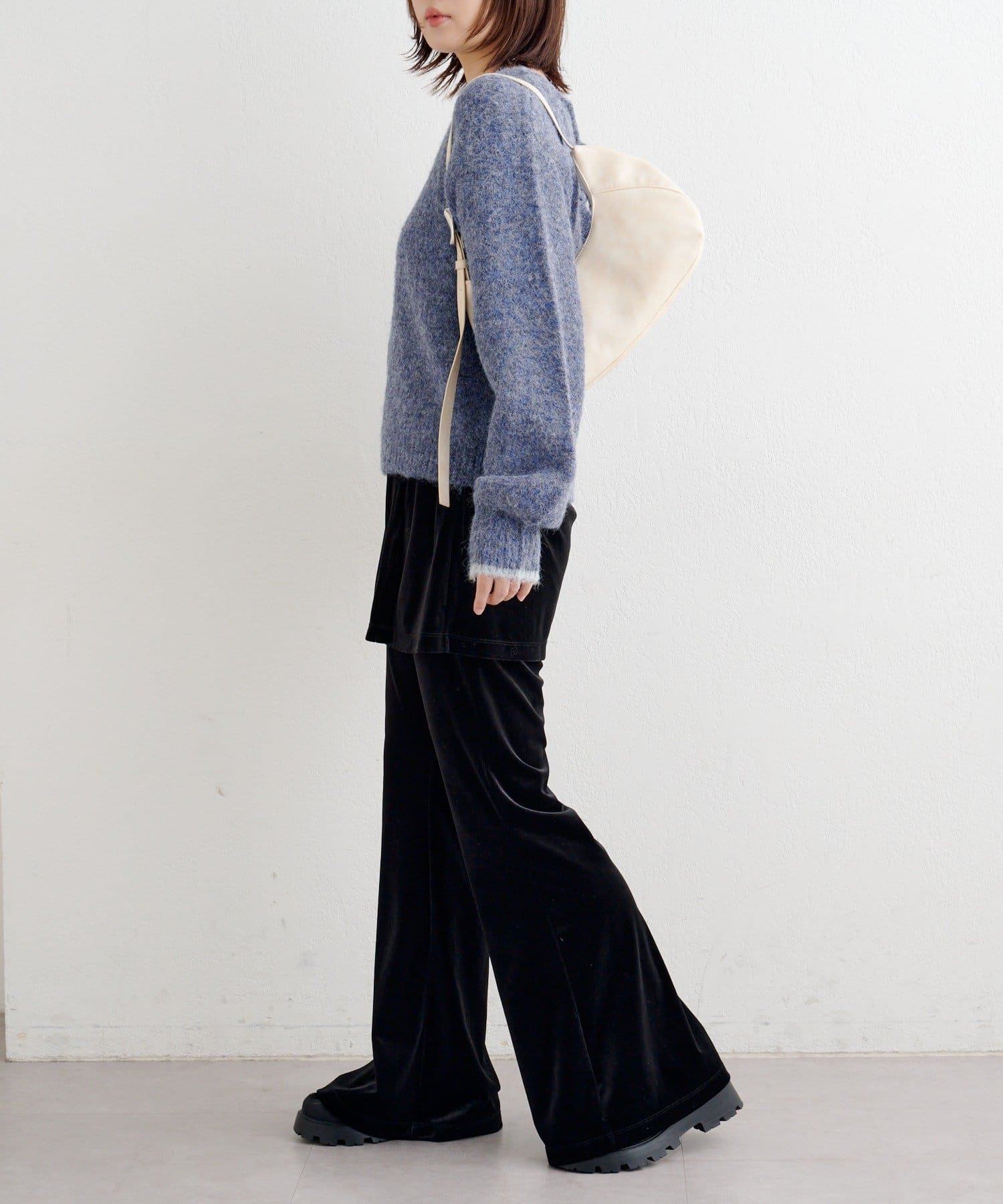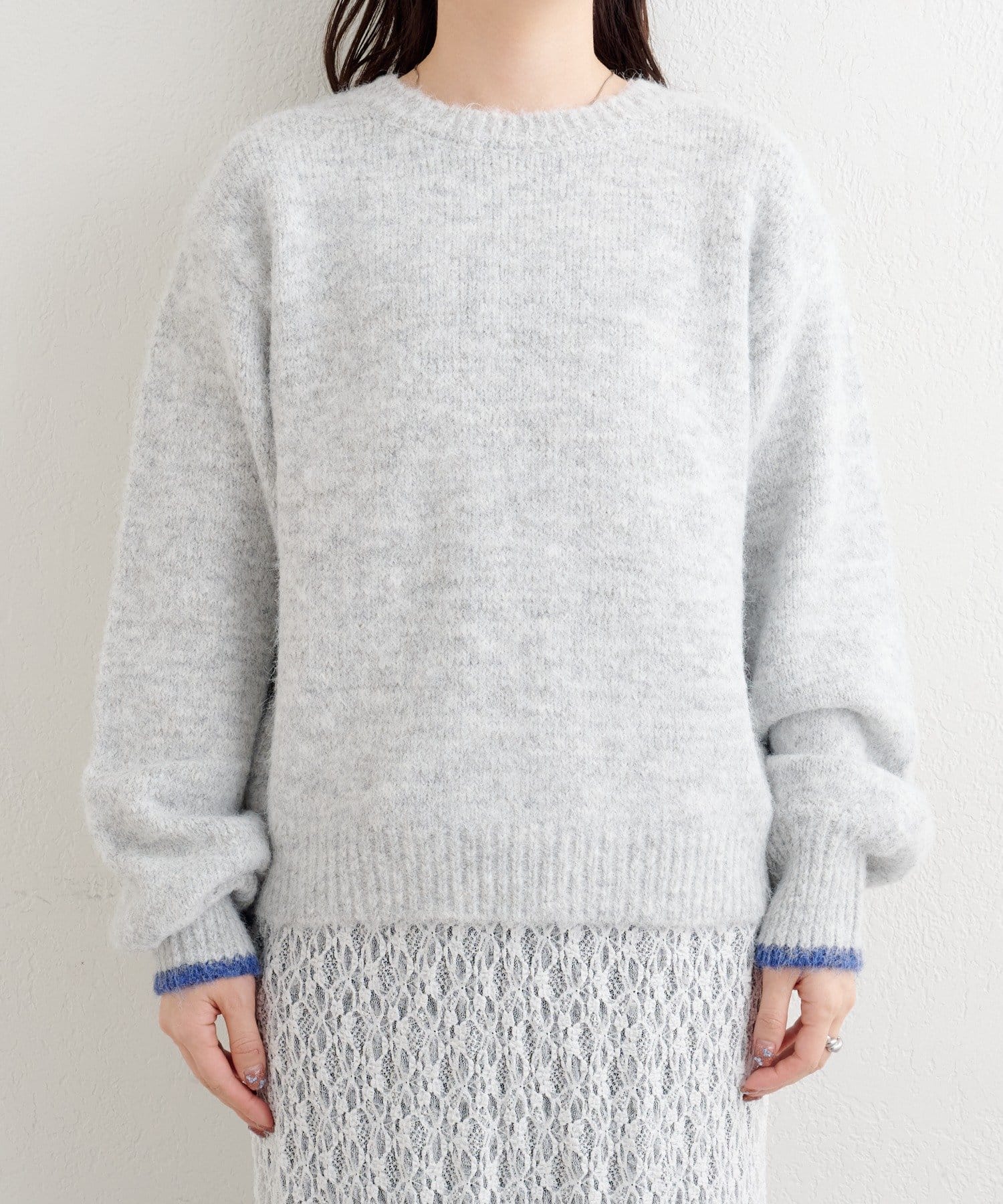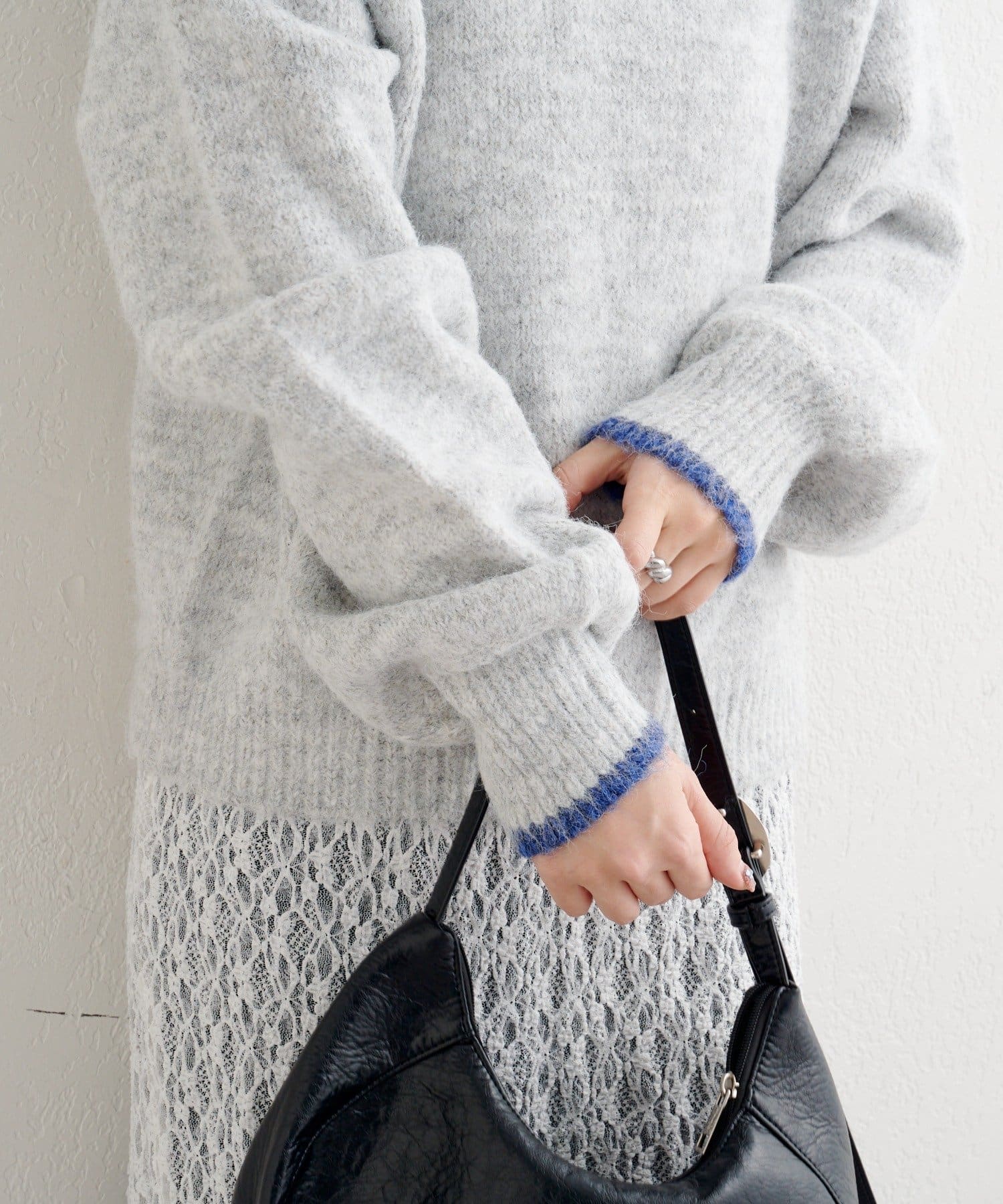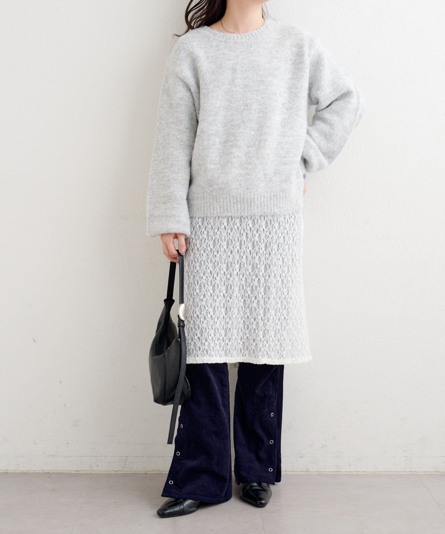 軽さのある編地なので厚着になりにくく、一枚での着映えはもちろん、インナー合わせで季節の変化にも対応しやすいアイテムです。