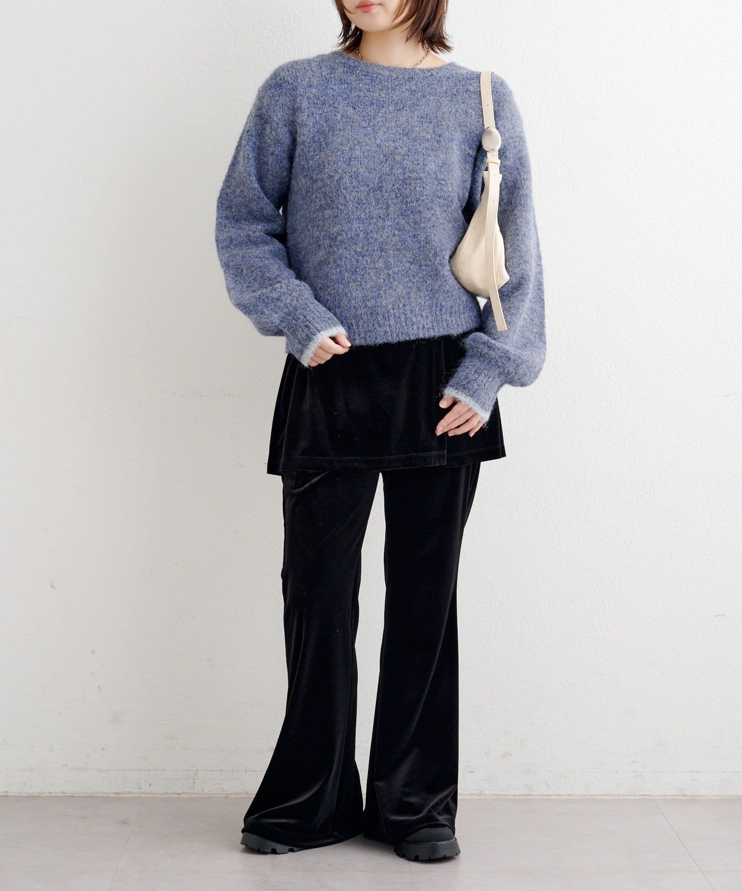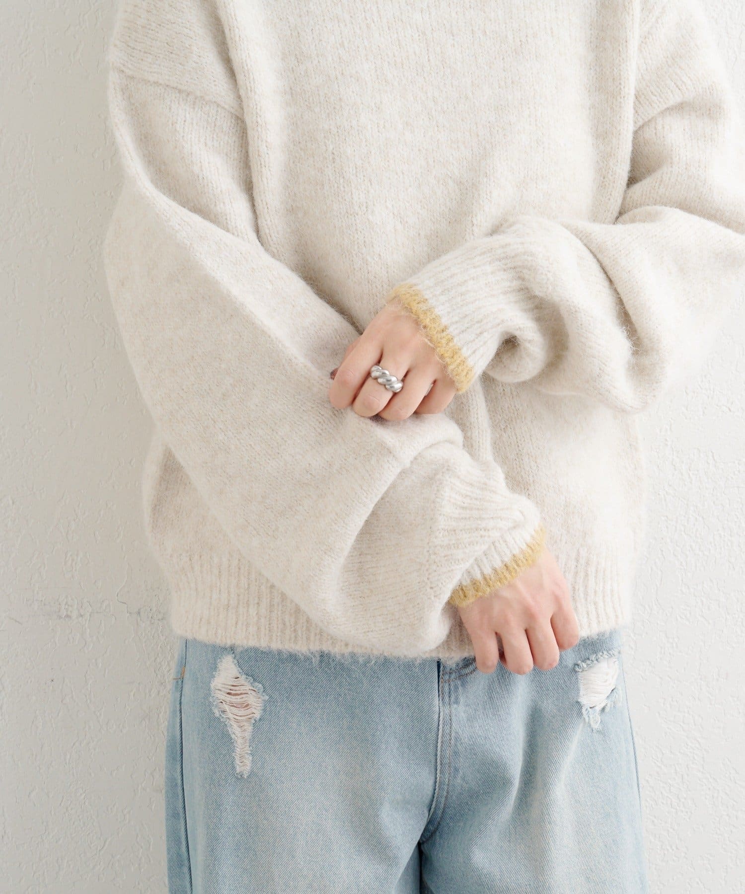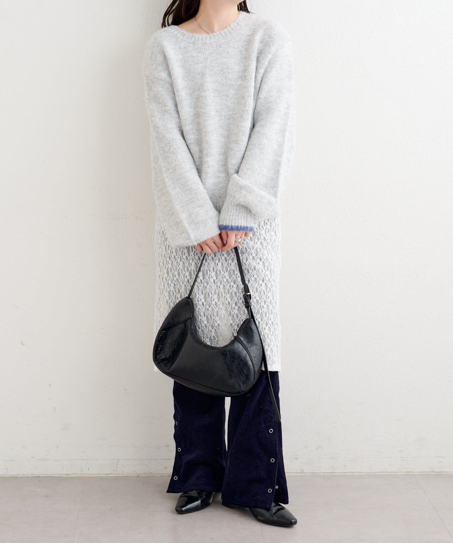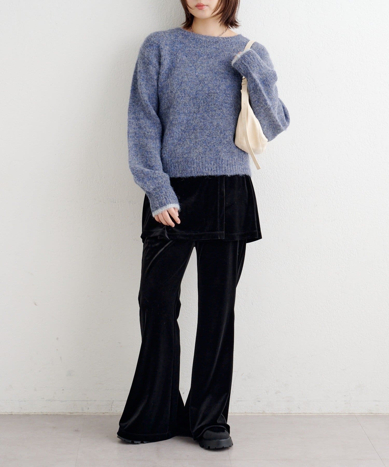 軽さのある編地なので厚着になりにくく、一枚での着映えはもちろん、インナー合わせで季節の変化にも対応しやすいアイテムです。
