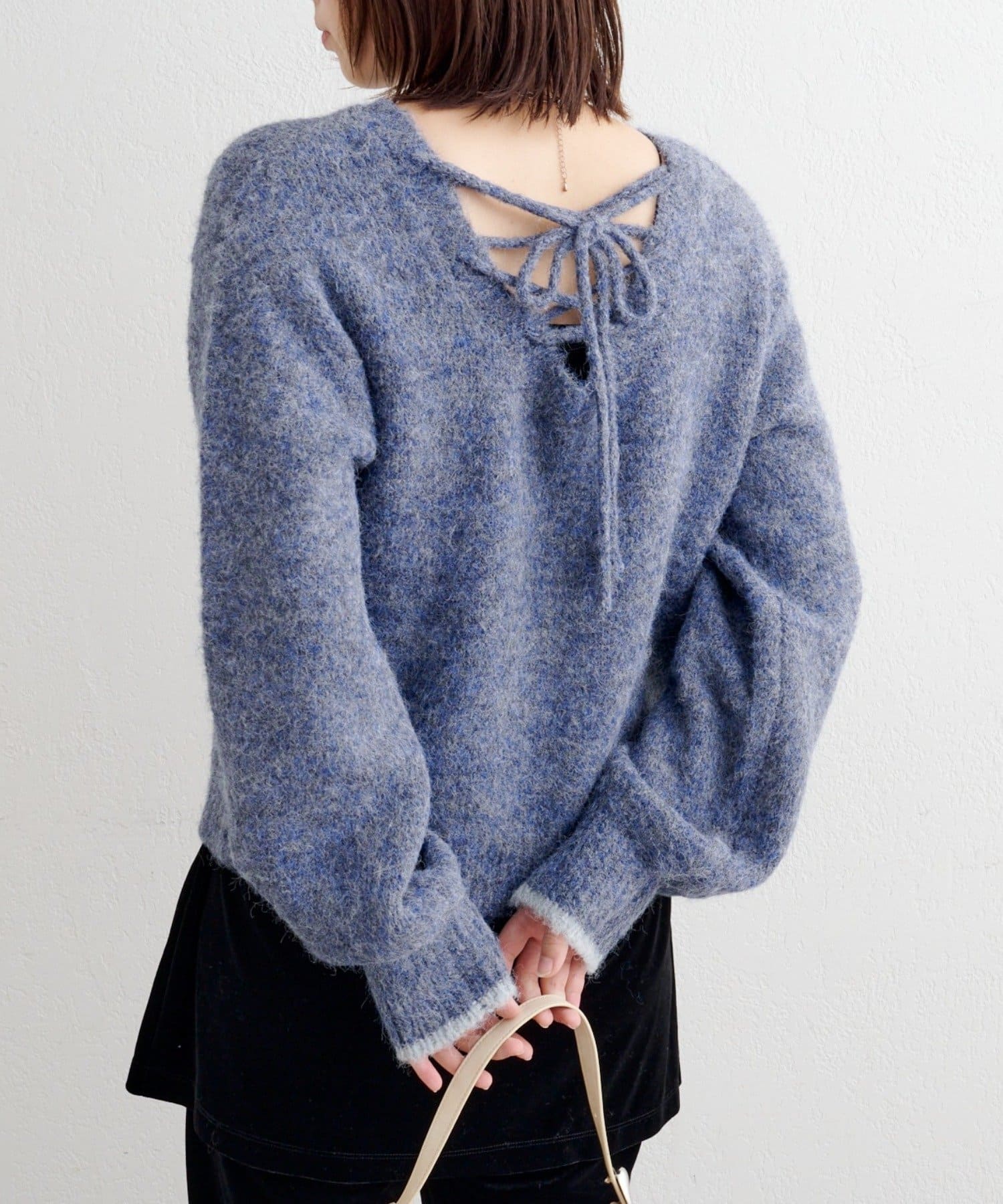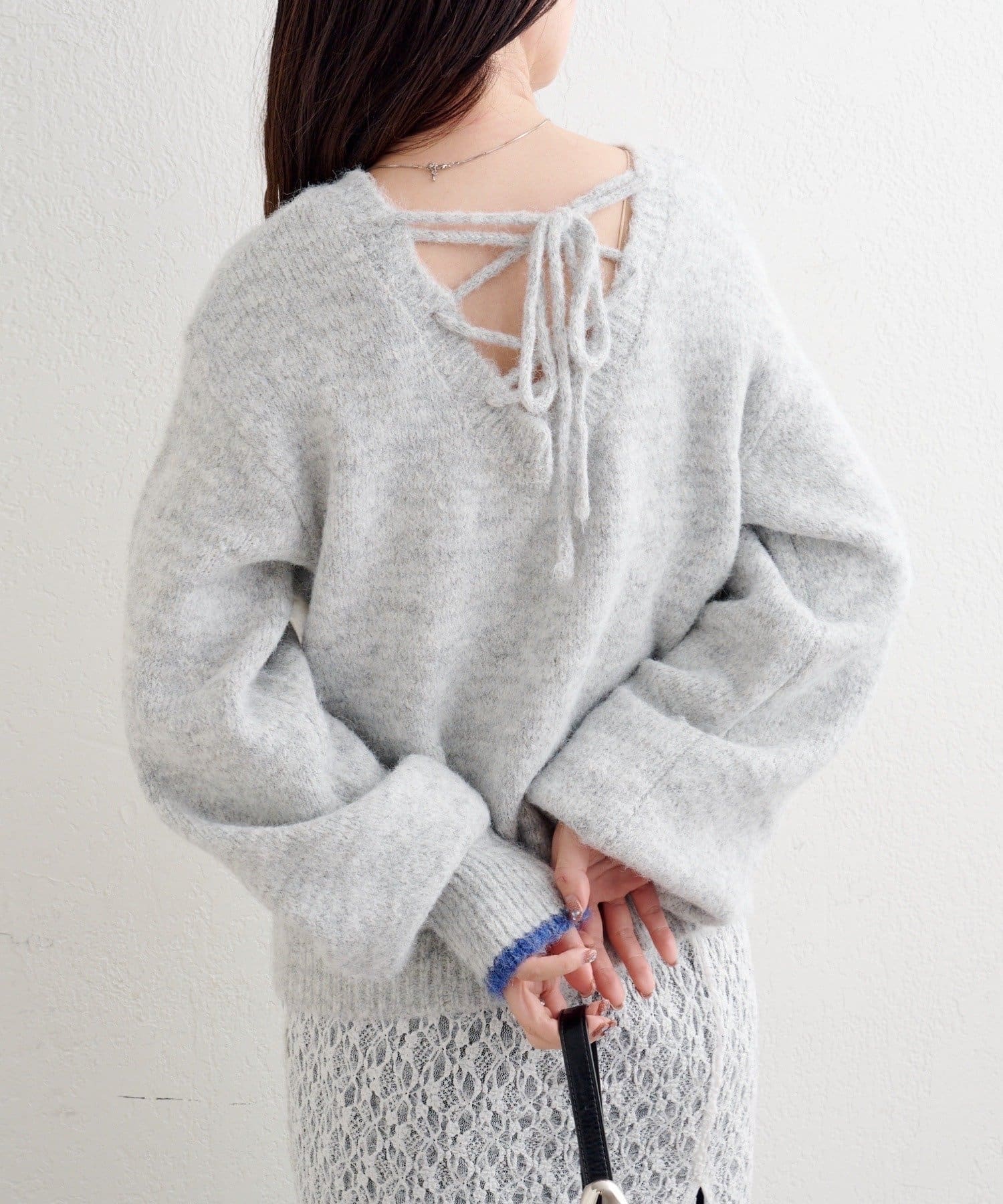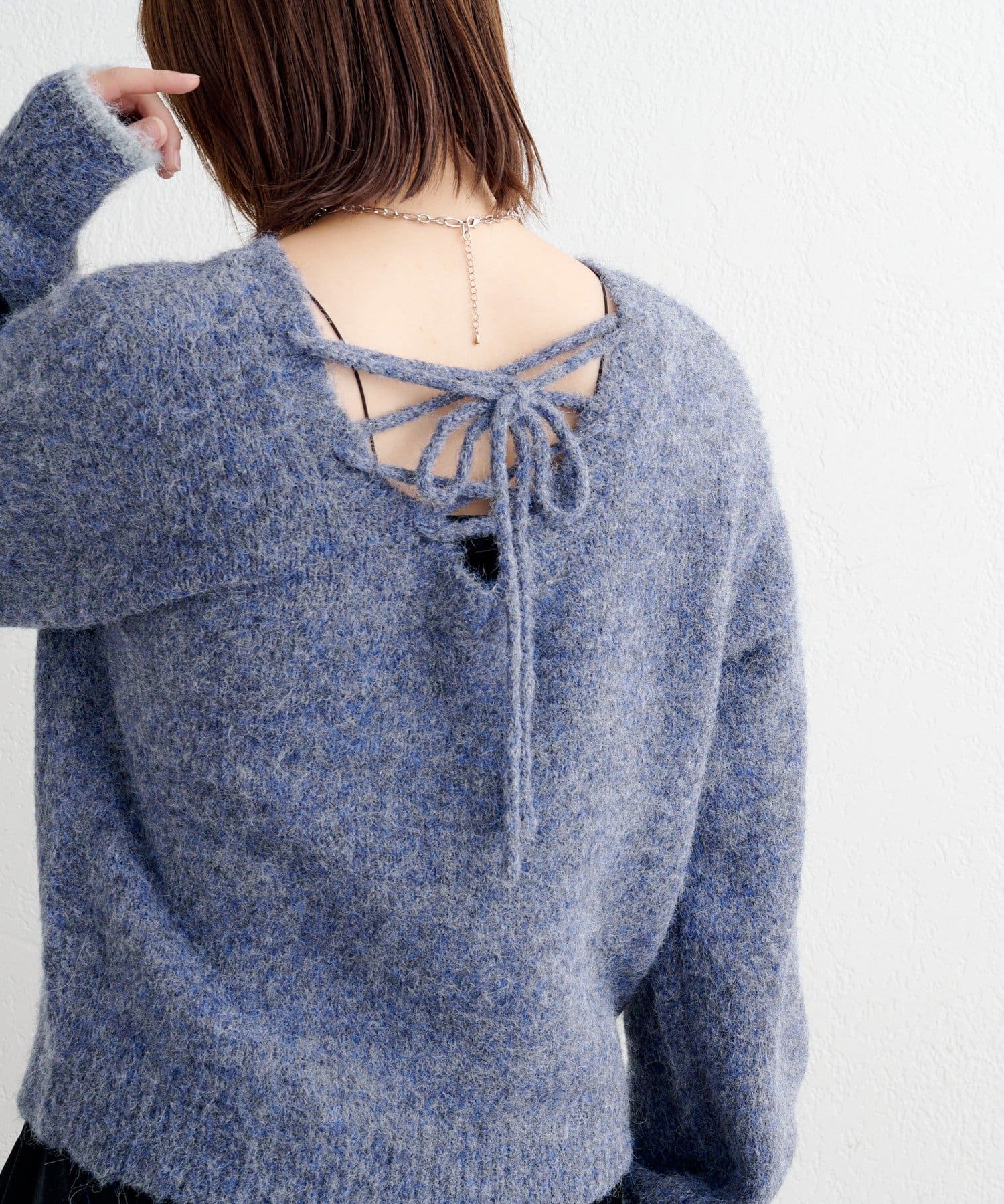 背中のレースアップで後ろ姿まで可愛いふんわりニット